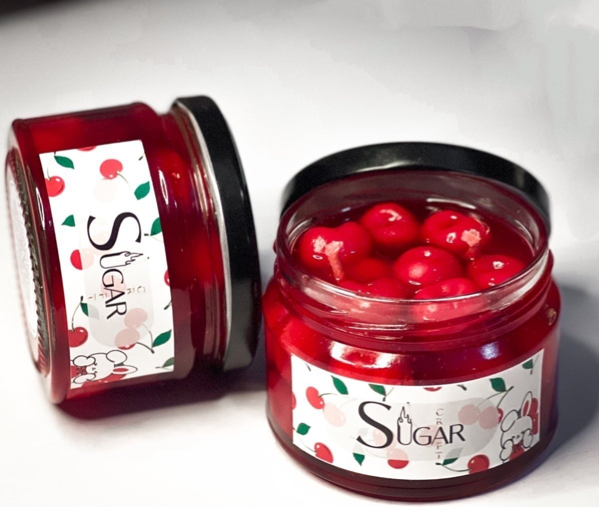 Red cherry jam candle with vanilla scent