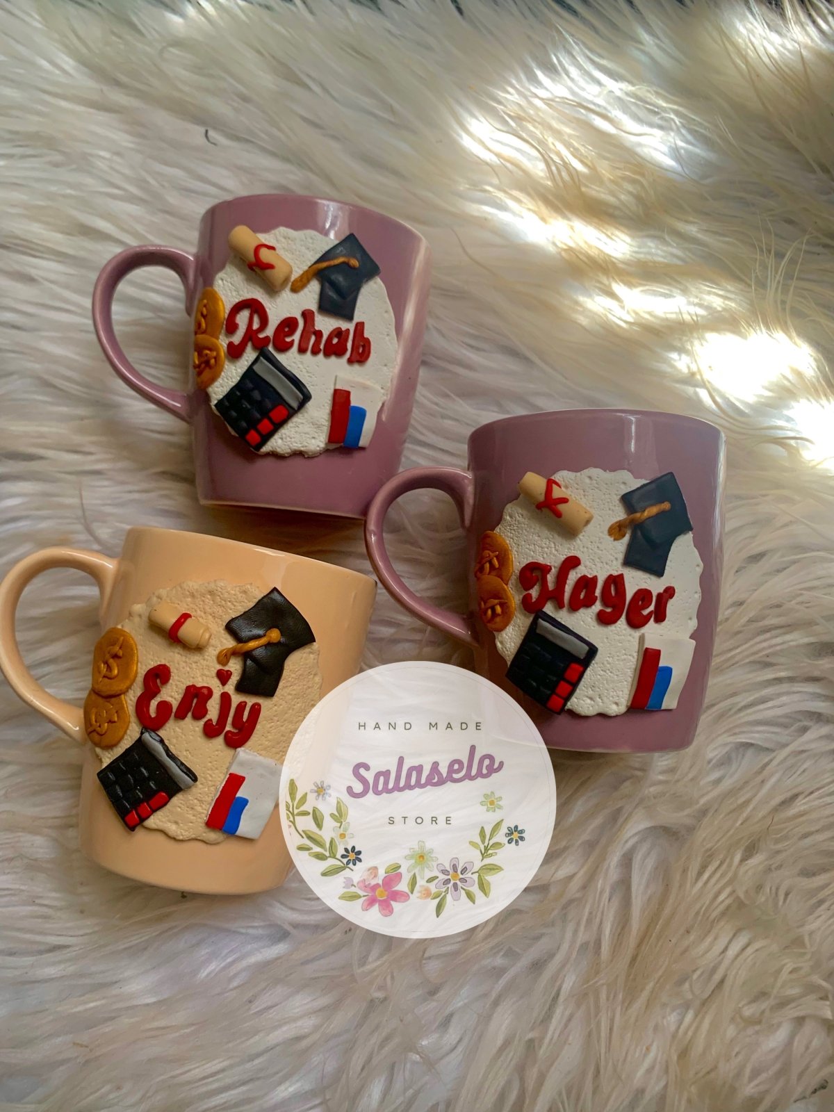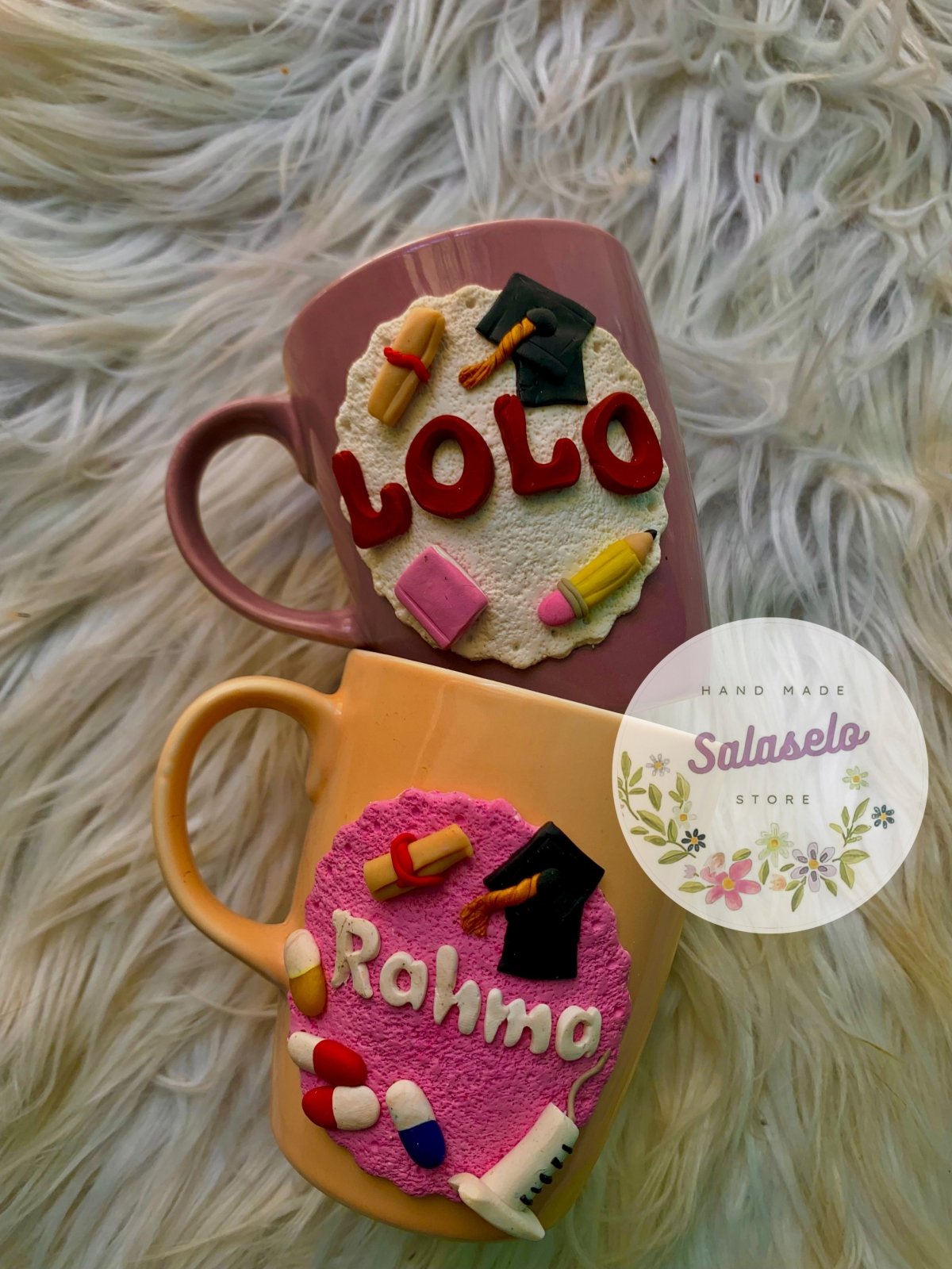 Graduation mug made of polymer clay, capacity approximately 300 ml, name change available