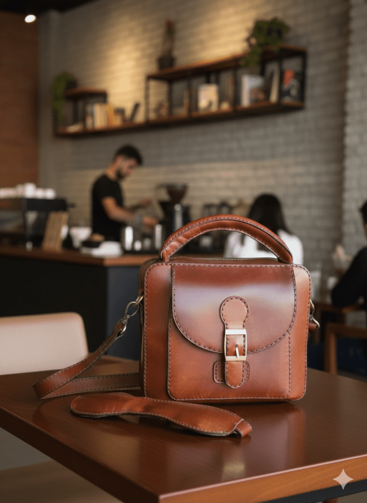 Handmade men's cross bag made of natural leather