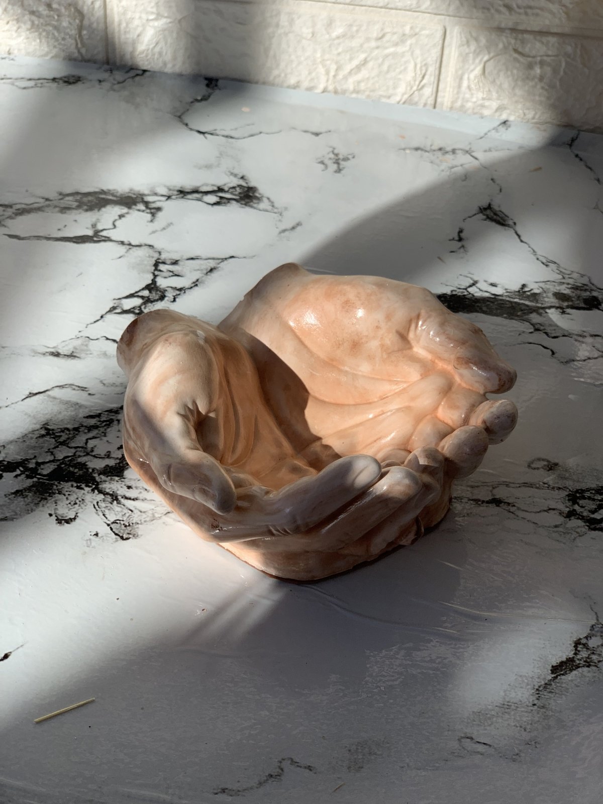 A decorative hand of a concrete you can use on the release of accessories or as a piece of special decoration available more than a color