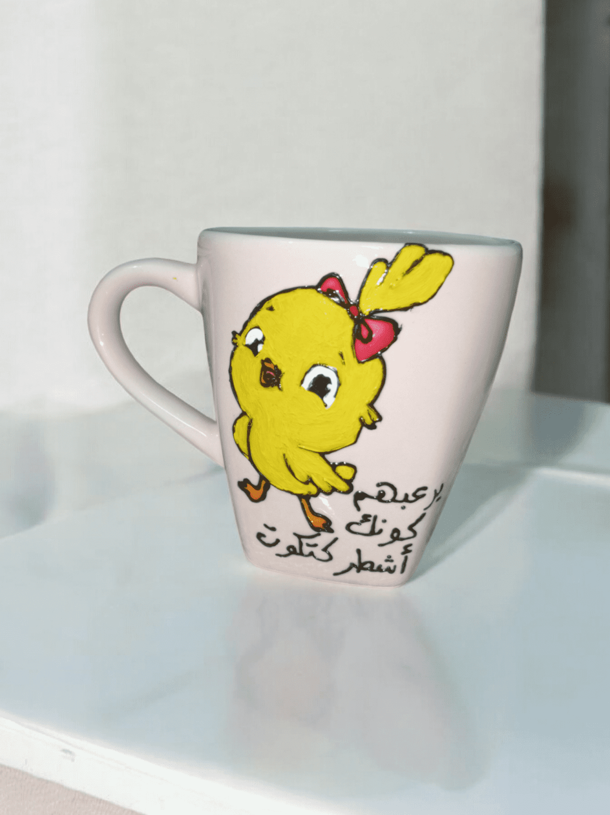 Handmade porcelain mug, capacity 220 ml The drawing is very stable Wash with a soft sponge