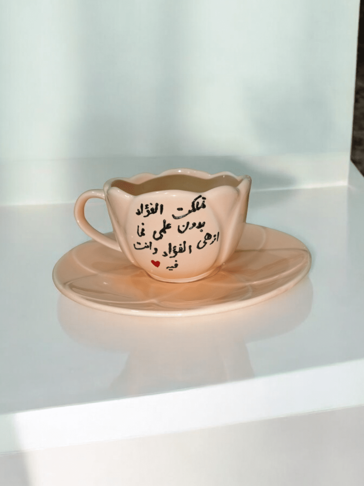 A rose-shaped coffee cup Any phrase is available to be drawn on it The drawing is very stable Wash with a soft sponge