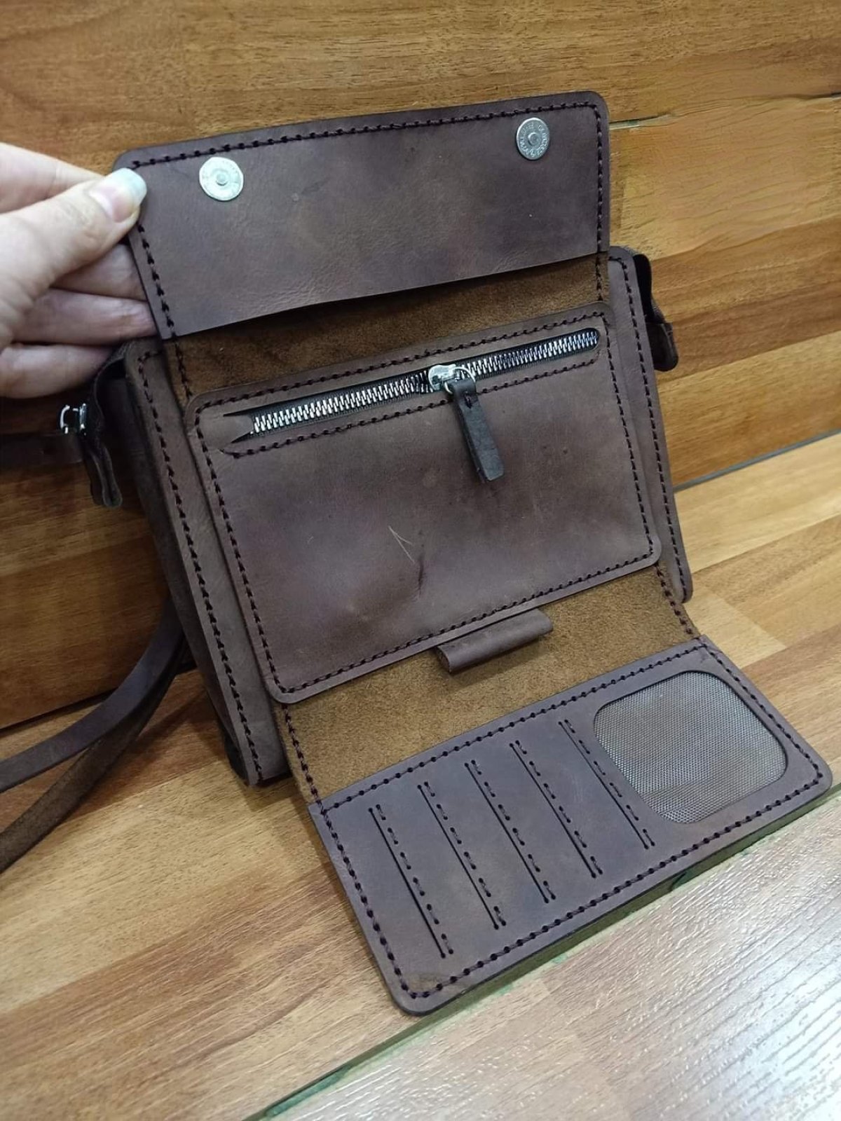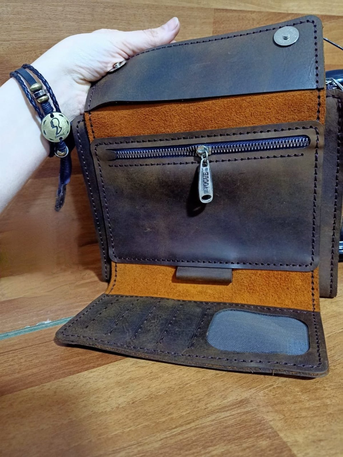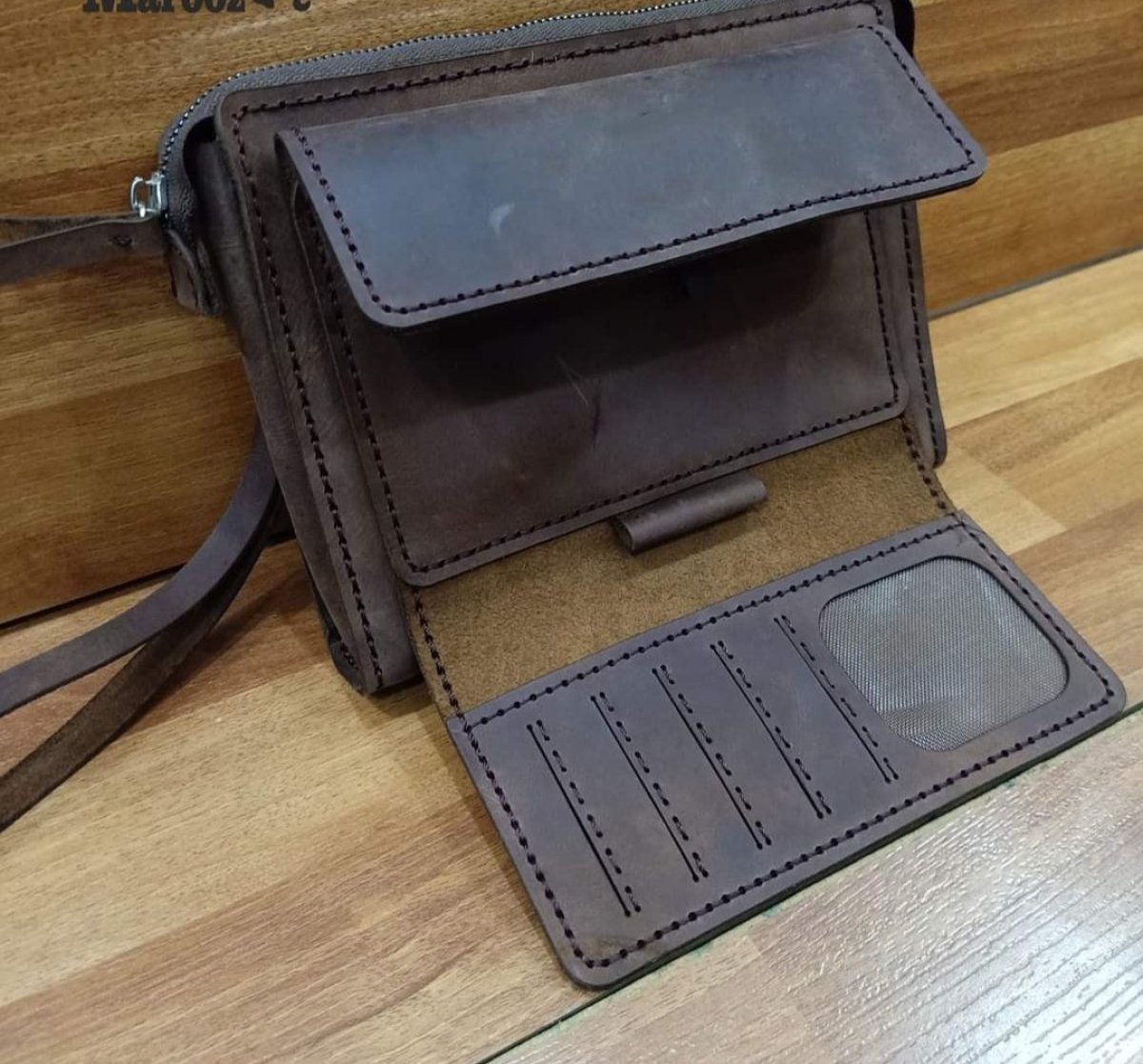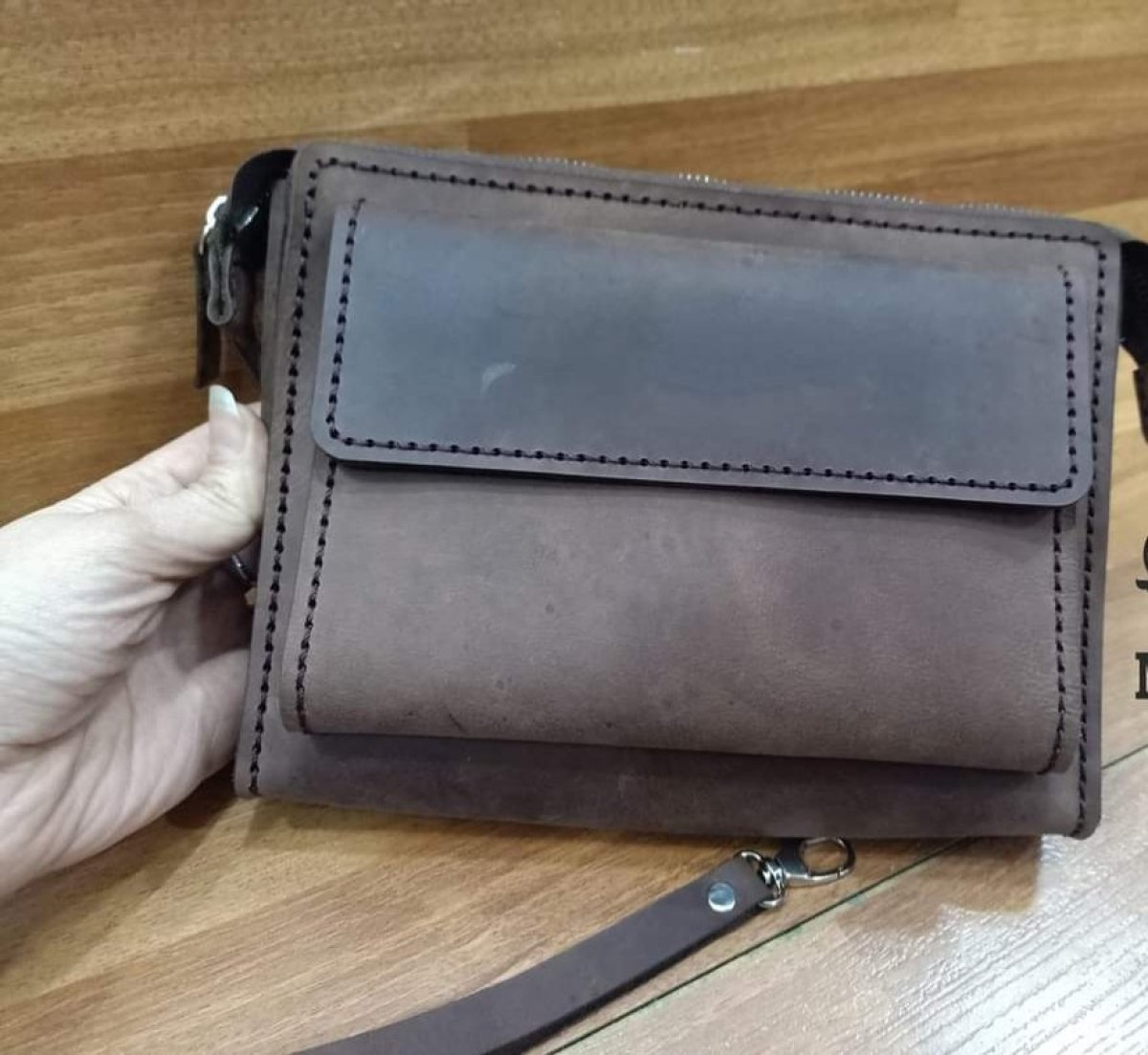 The bag is completely cowhide, lined with leather, width 22 cm and height