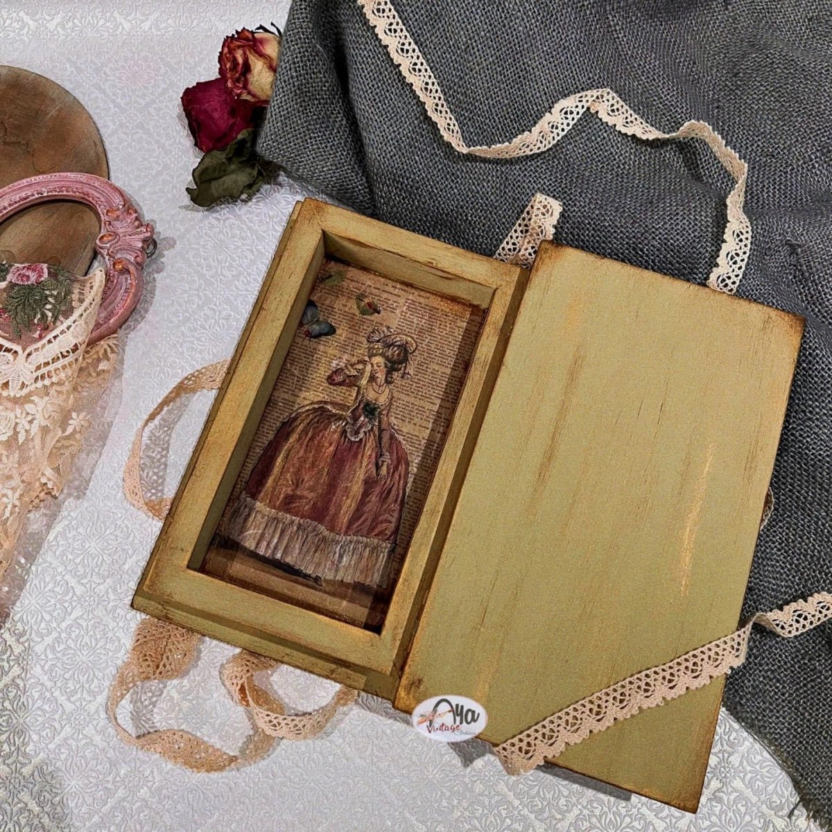 "Handcrafted vintage wooden box made with antique touch. Measures "20x15 CM"