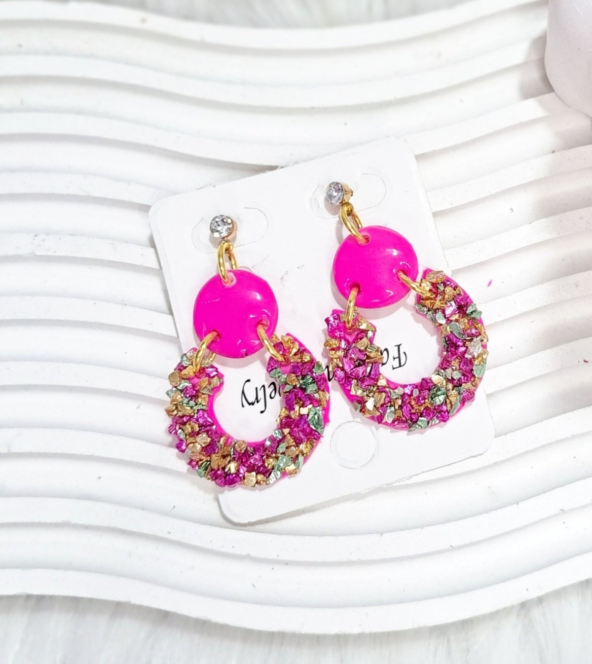 Polymer clay earrings with sugar and resin stones. The earrings are for lovers of cheerful colors. Their size is medium, approximately 3.5 cm, and very light on the ear.