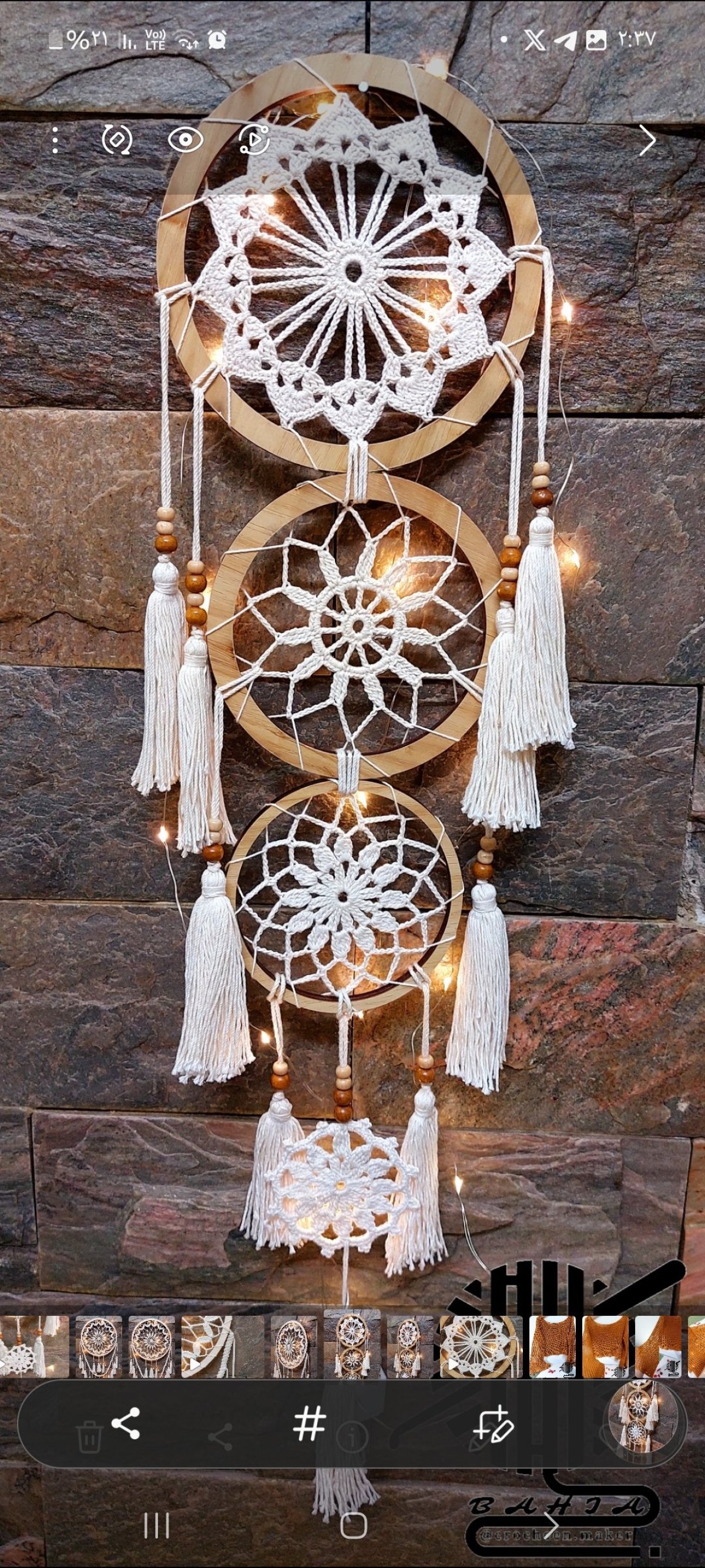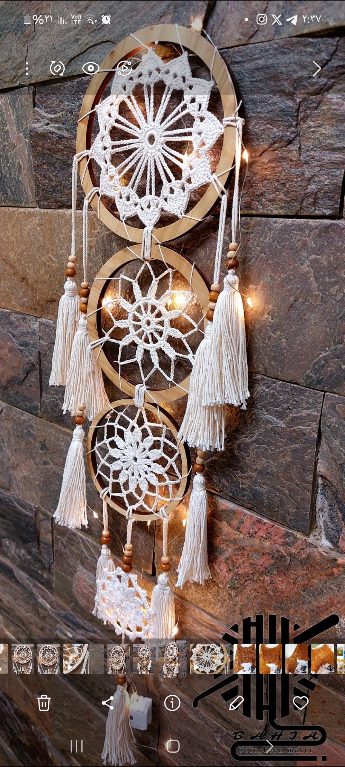 Crochet wall hanging with cotton yarn,wooden border and wooden beads n