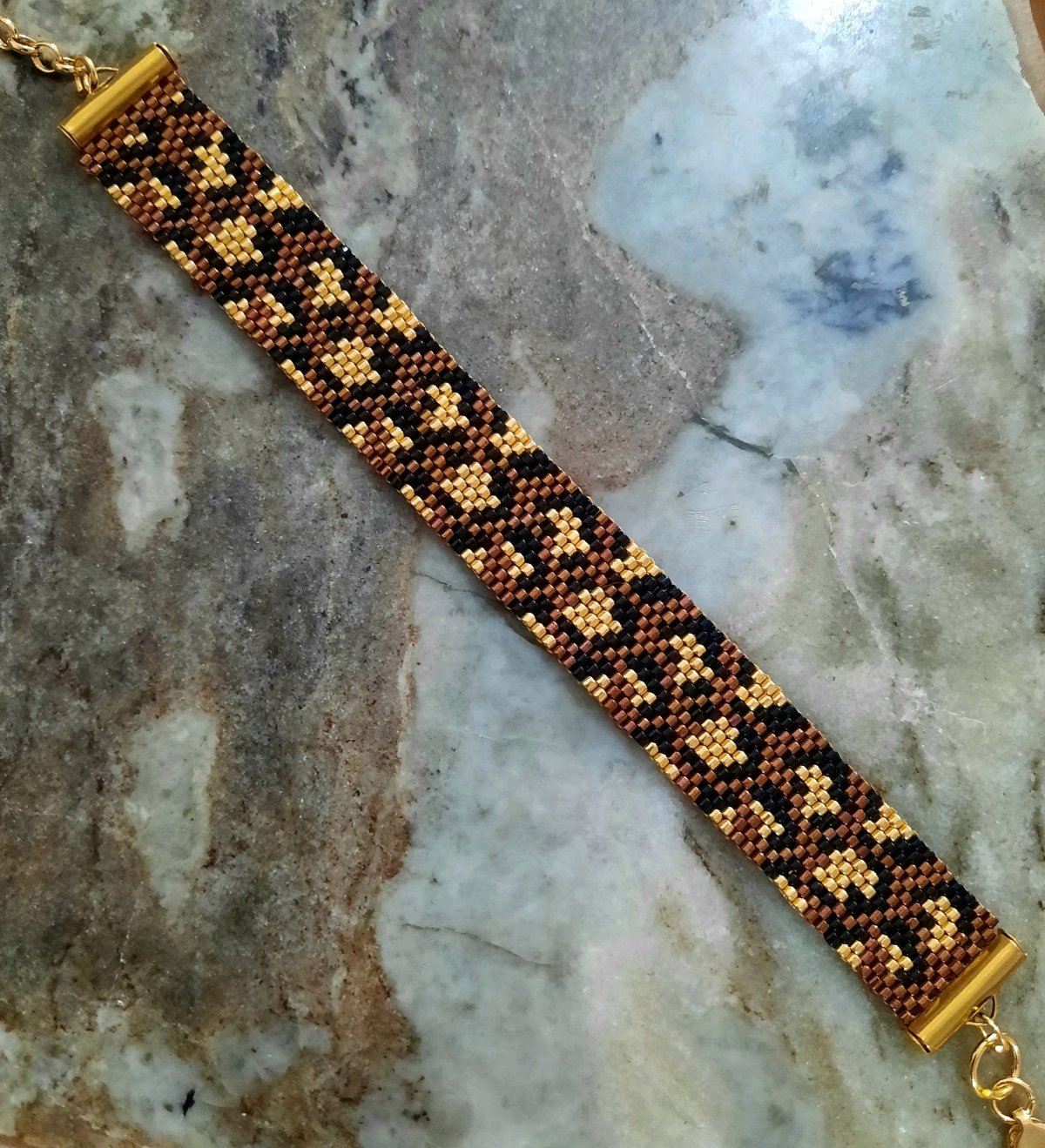 Tiger design set with hexagon shape by Miyuki beads
