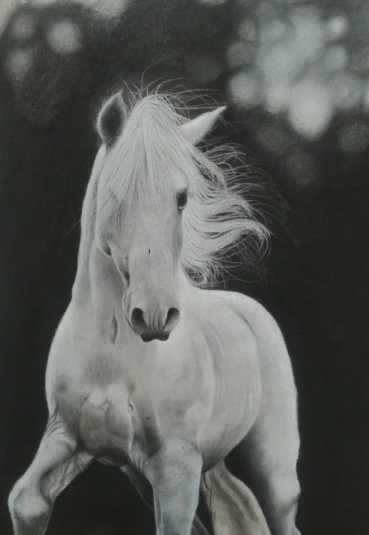 The horse is painted with black and white charcoal on canvas Any size is available The price is on the small one 35*50