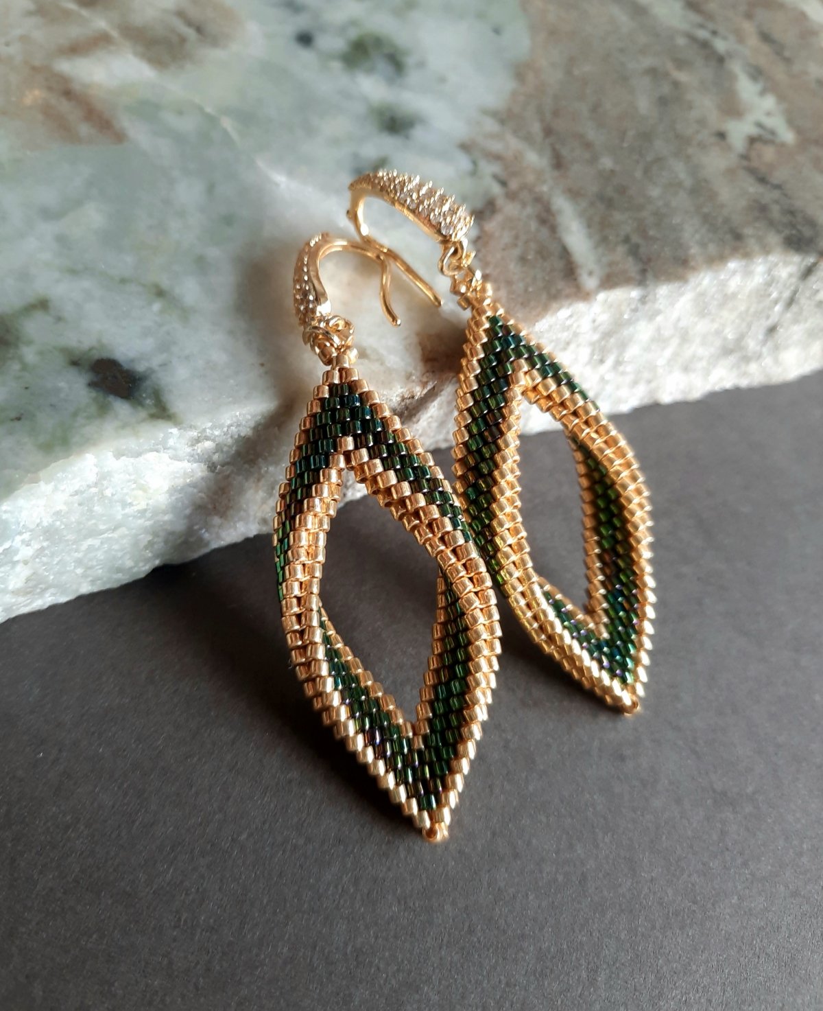 Green wavy leaf set by Miyuki beads