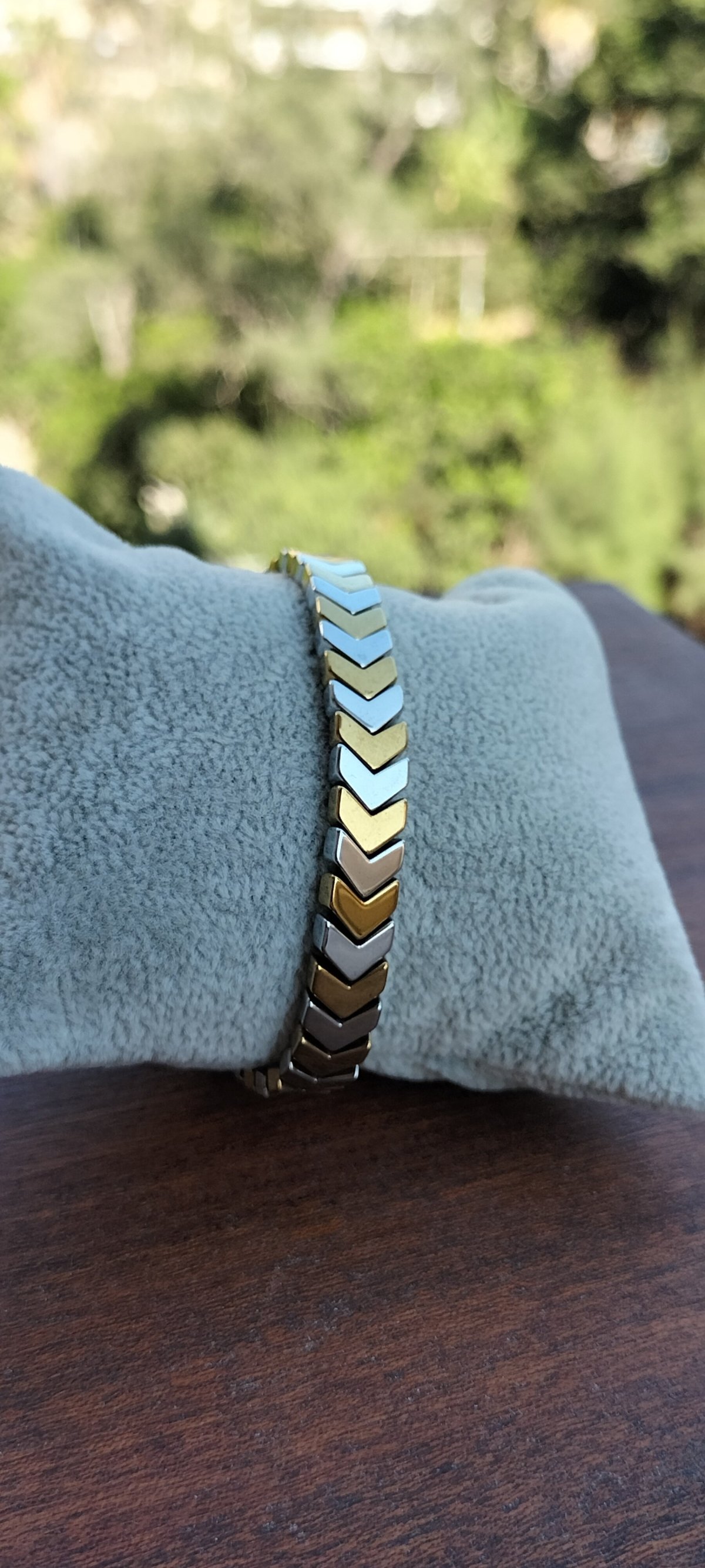 Bracelets, anklets, neck chains and eyeglass chains handmade made of stones and metal-free threads They do not rust or tarnish and their lifespan, God willing, is longer than regular accessories Don't worry if water falls on them🌧️💧 They narrow and widen according to the size of the hand
