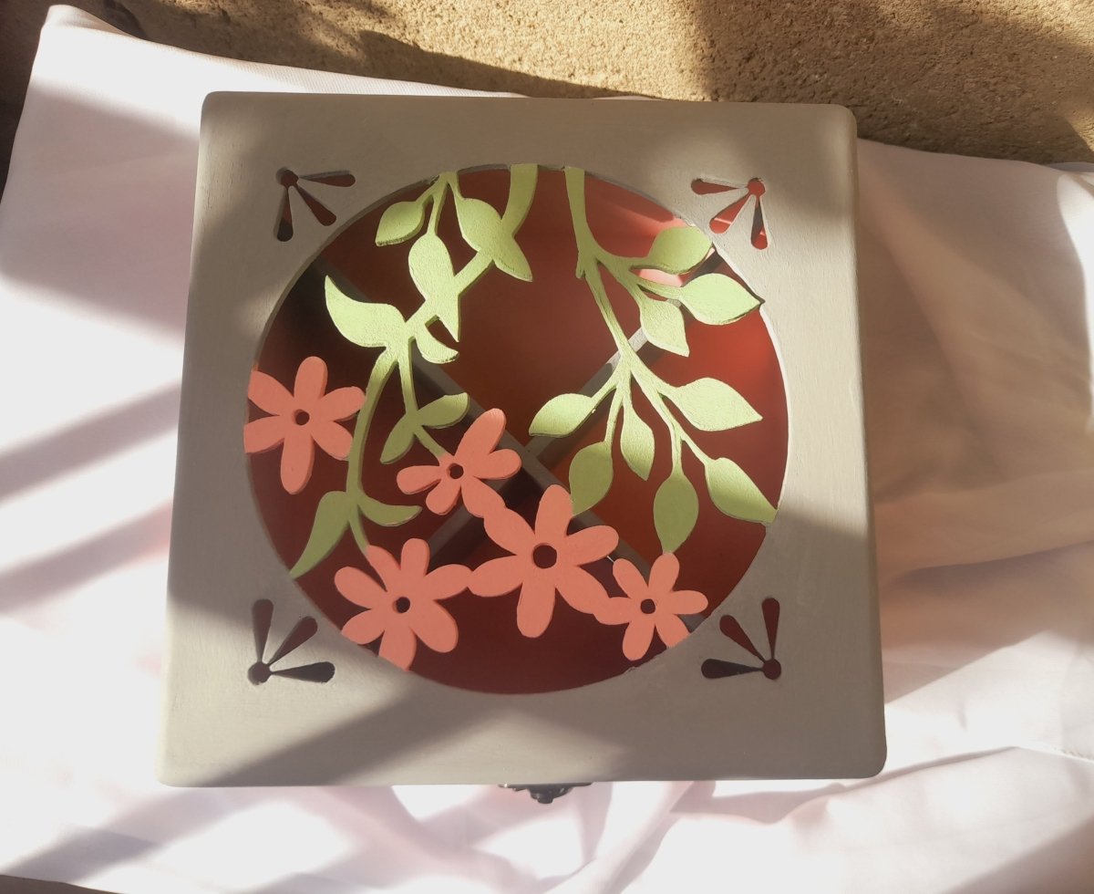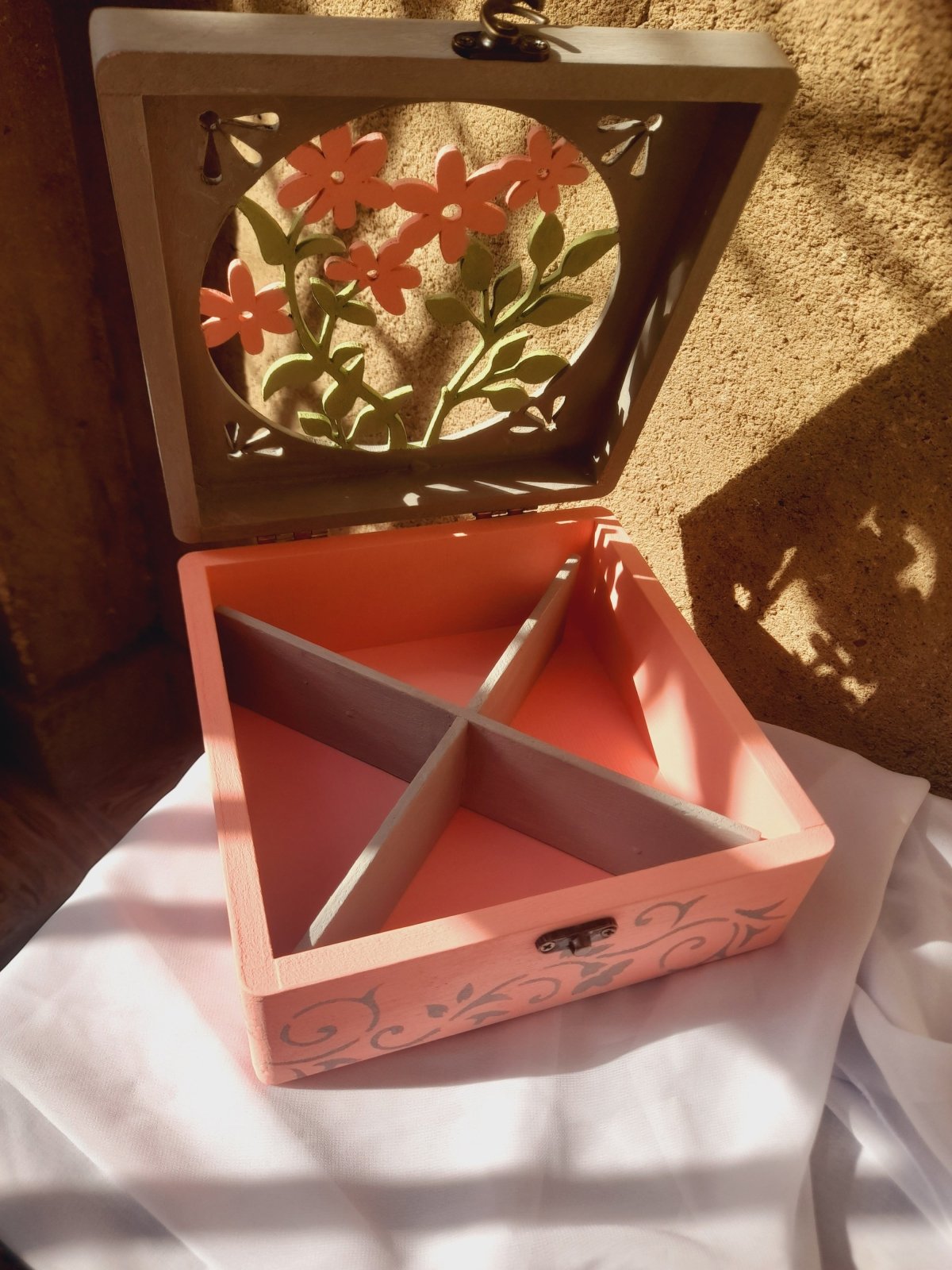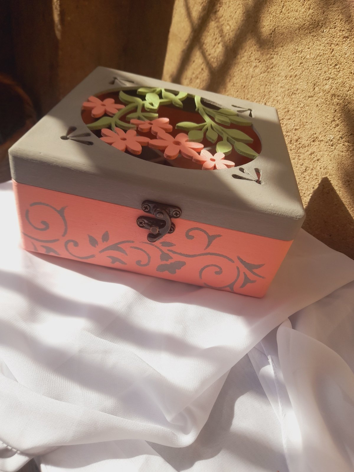 Small accessory box divided and decorated with roses, laser wood engraving, and mirrors can be placed inside the box
