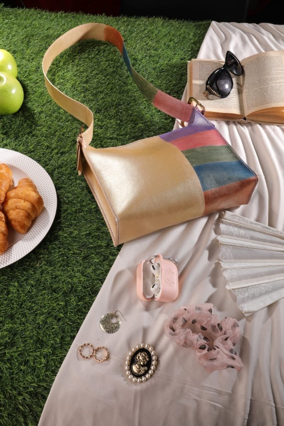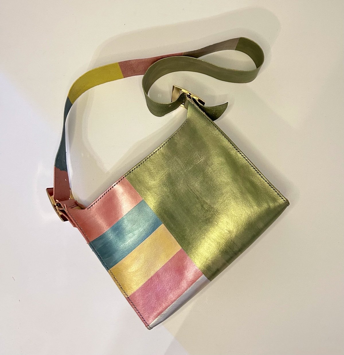 A modern bag in metallic colors, with the same color handle, size 25*20*7, not lined inside, available in all colors, implementation period from 10 days to two weeks.