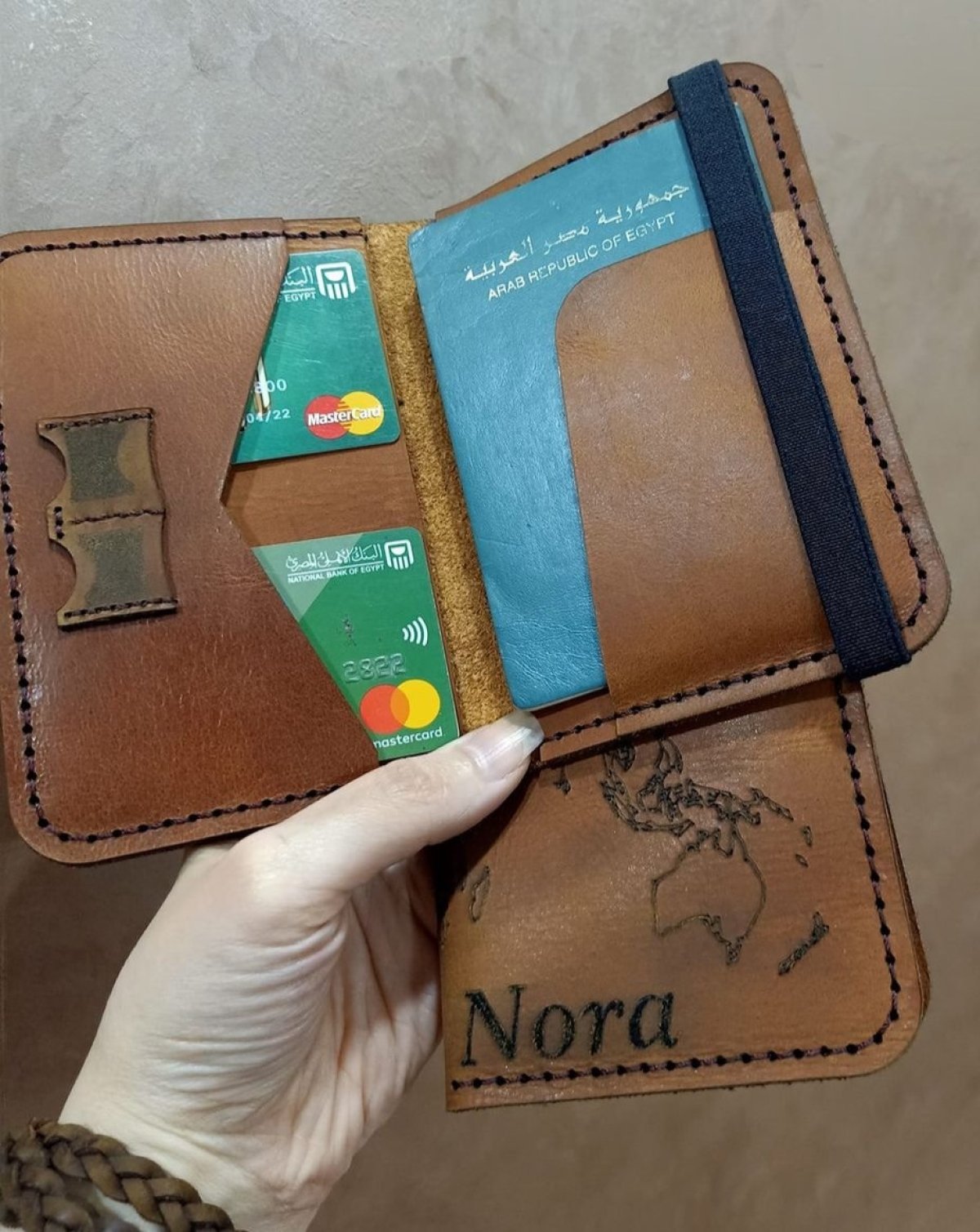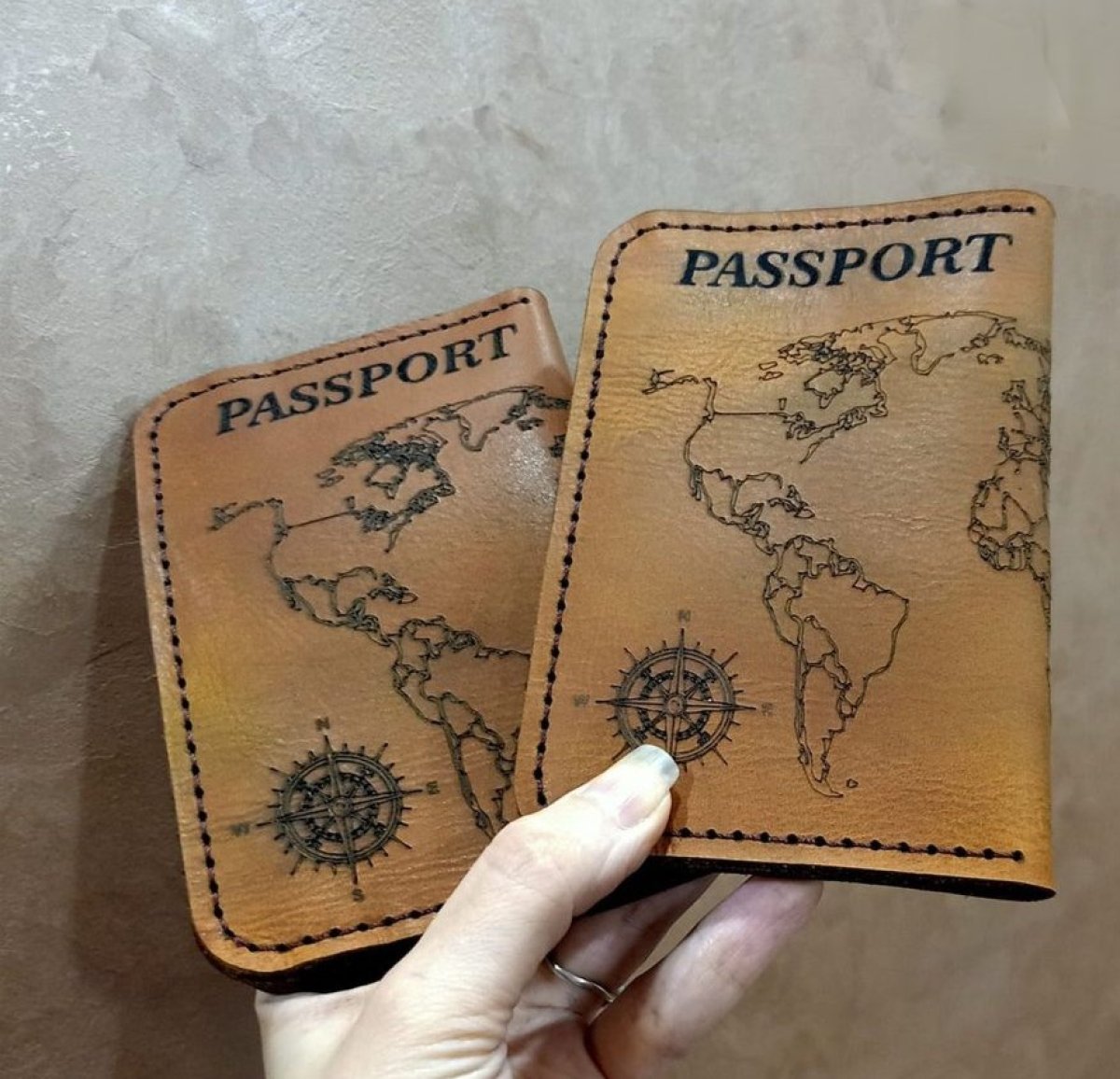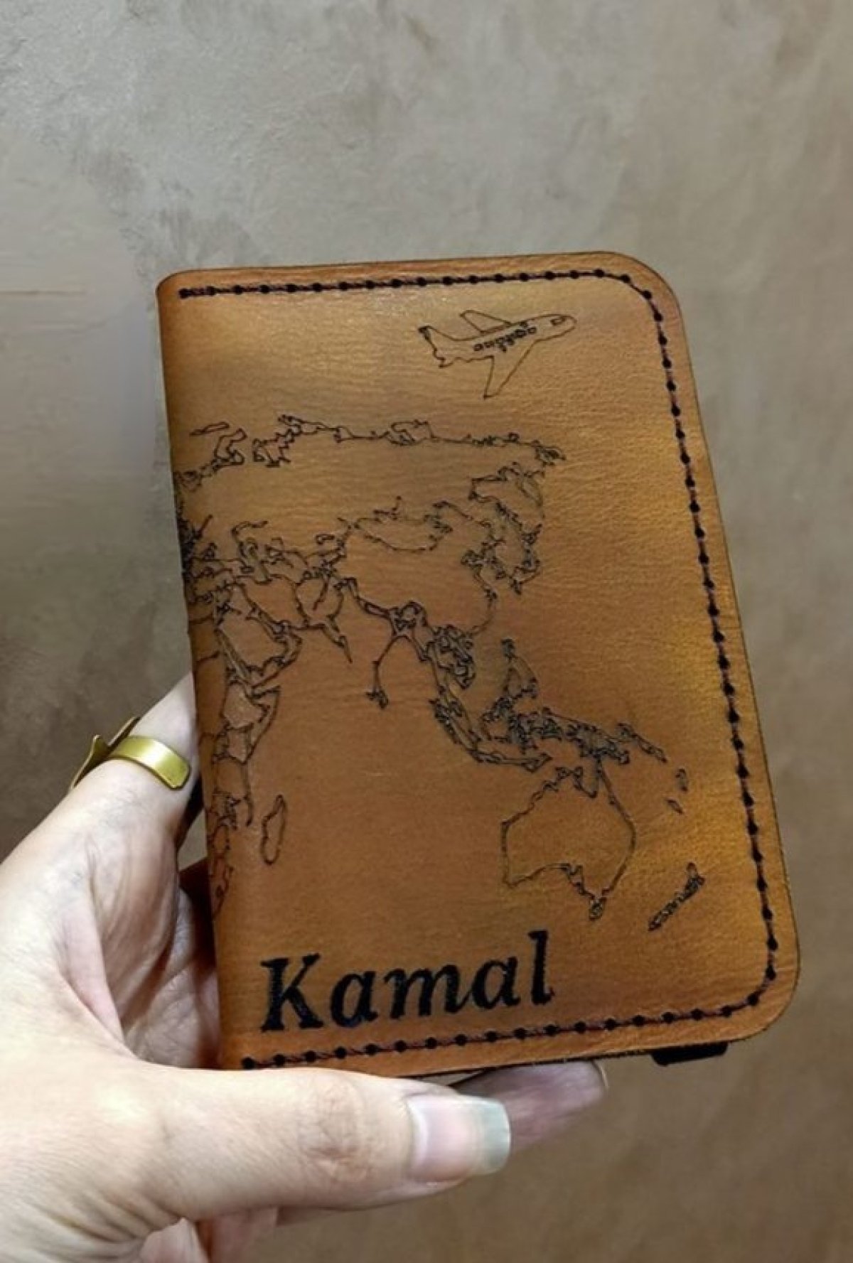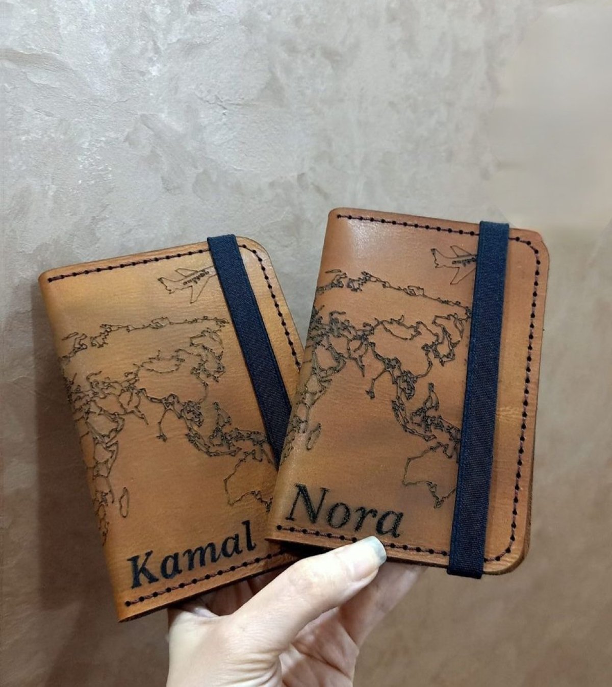Fully cowhide leather passport holder. Available in any color. Available with the name of the customer’s choice