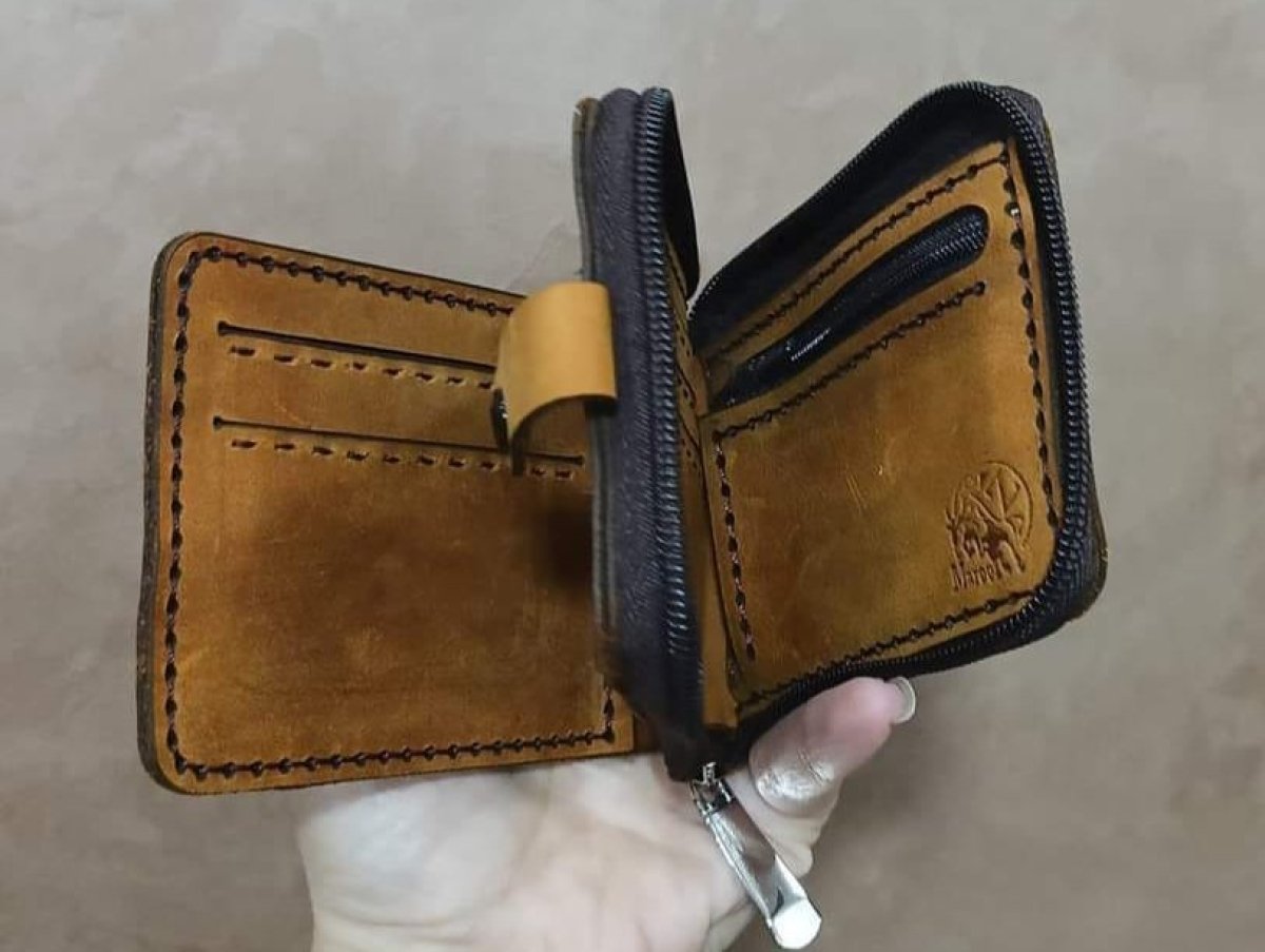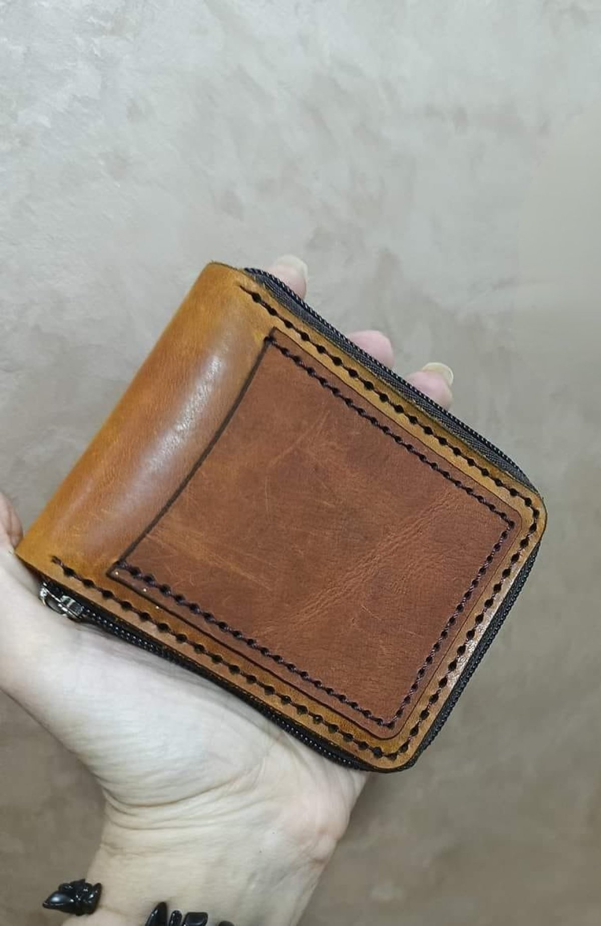 The wallet is completely virgin leather. The wallet has 10 pockets for cards, in addition to a small pocket with a zipper for coins. Of course, we did not forget two pockets on display for banknotes, other than the transparent pocket.