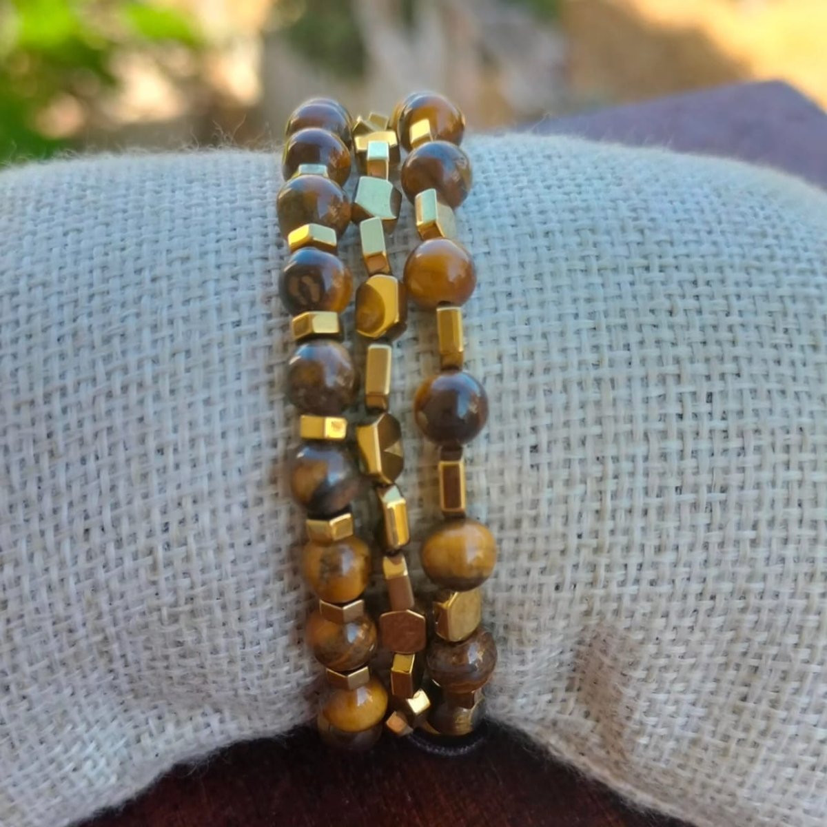 Set from 3 Bracelets made of tiger eye stone & hematite stone... Safe using with water... size control