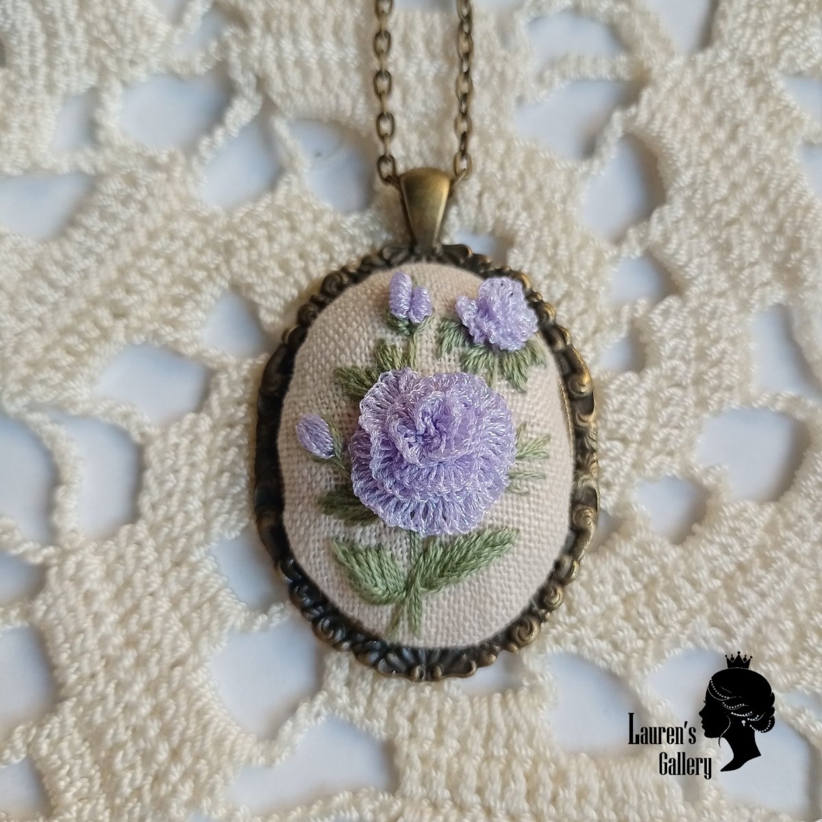 Unique embroidered pendant, using DMC Mouliné Stranded Cotton Embroidery Thread which made in France.