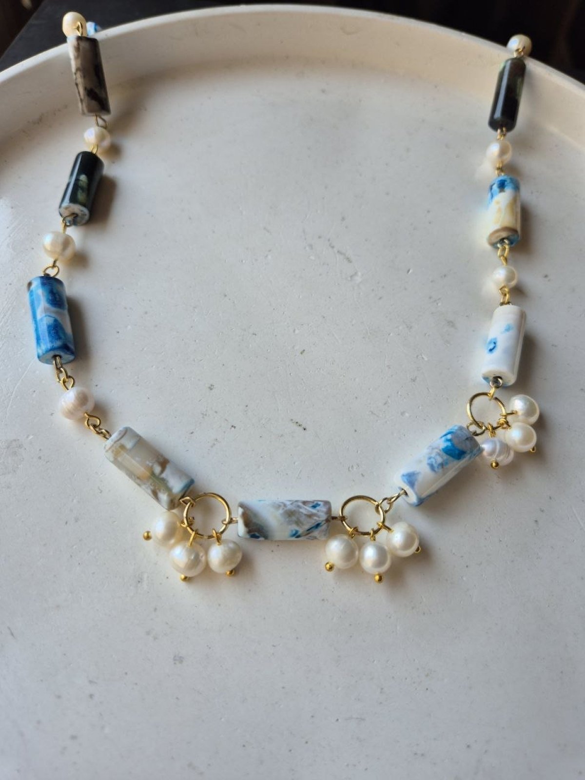 65 Agate stone necklace with natural pearls