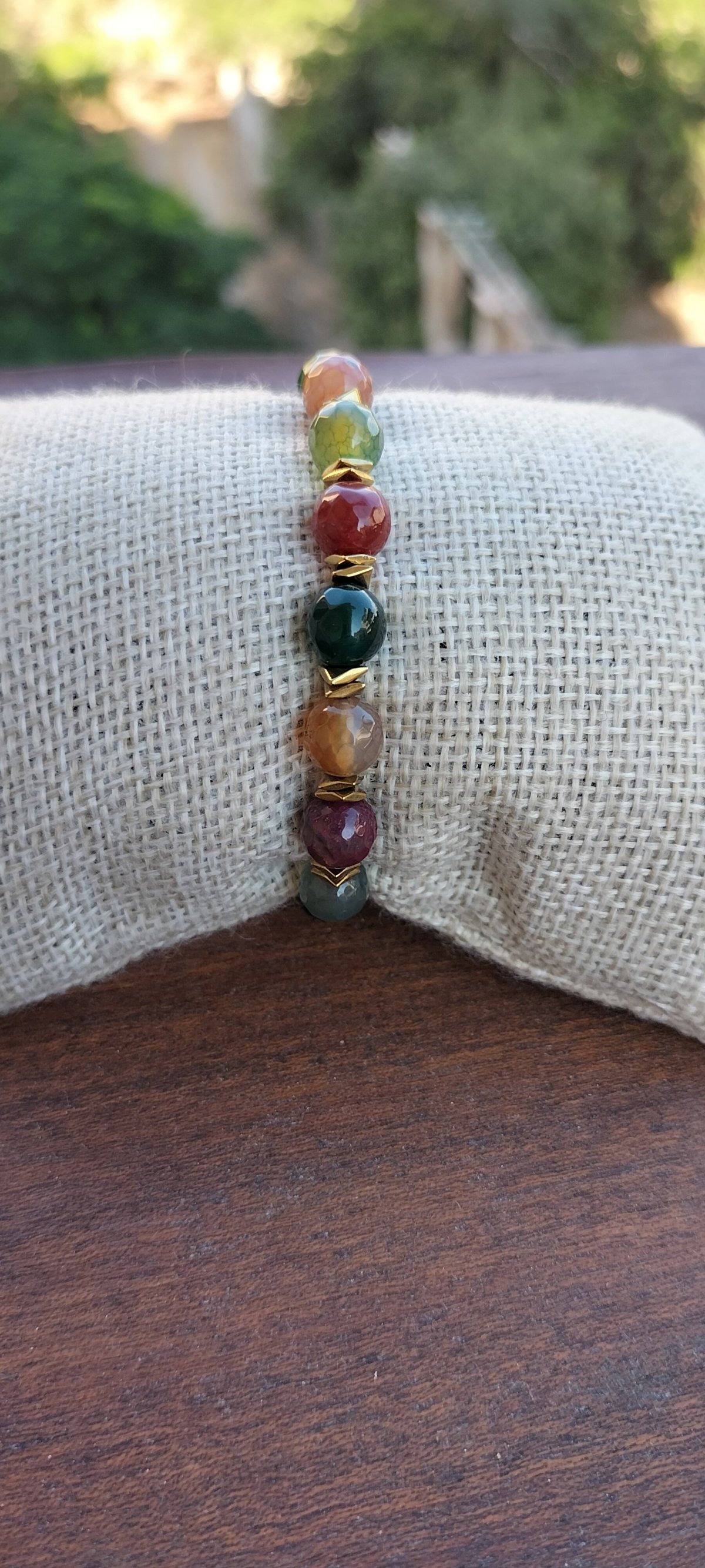 Bracelets, anklets, neck chains and eyeglass chains handmade made of stones and metal-free threads They do not rust or tarnish and their lifespan, God willing, is longer than regular accessories Don't worry if water falls on them🌧️💧 They narrow and widen according to the size of the hand