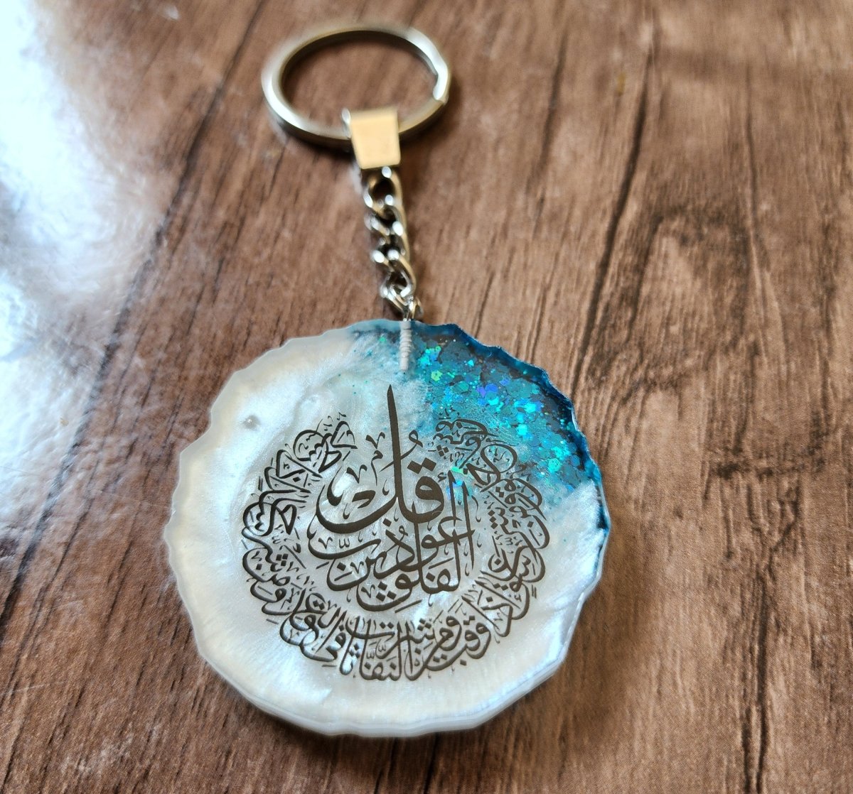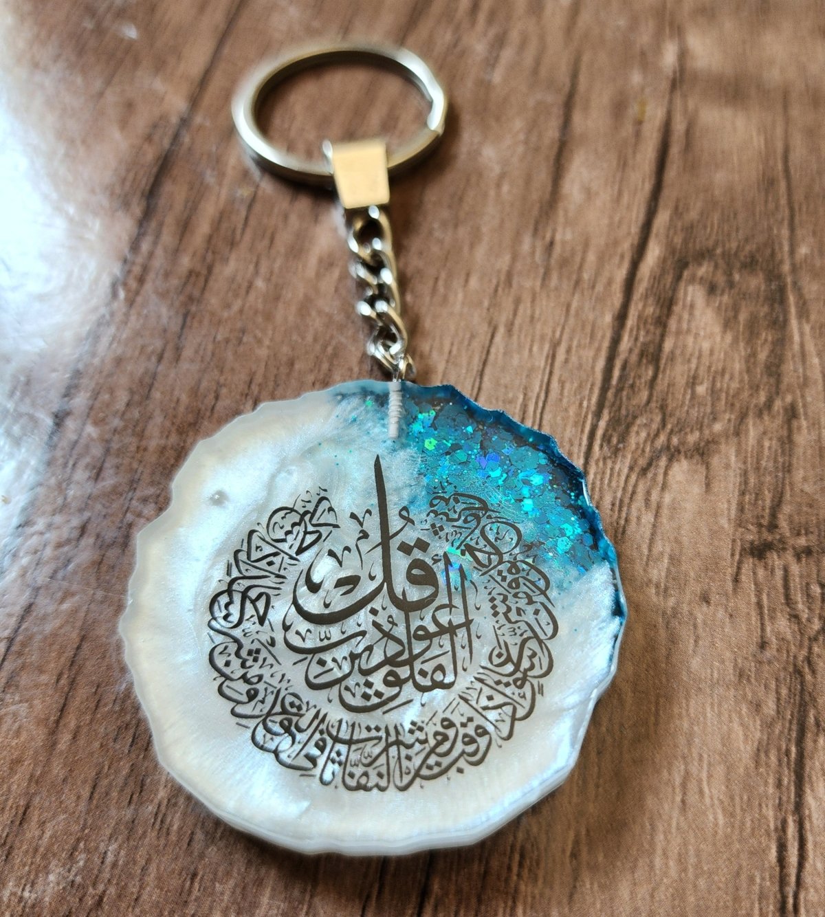 Keychain handmade from epoxy resin and glitter chunky 5cm double face