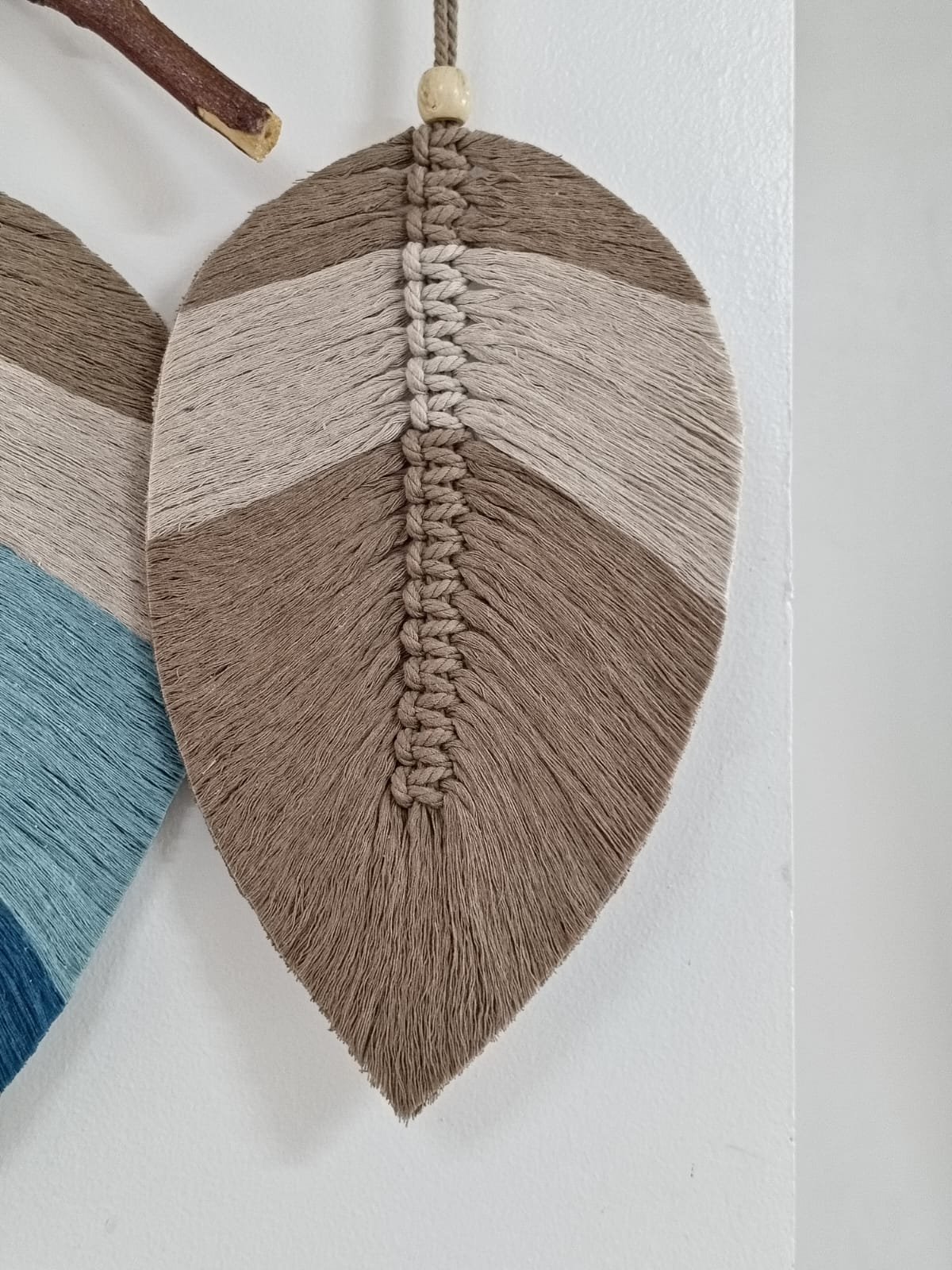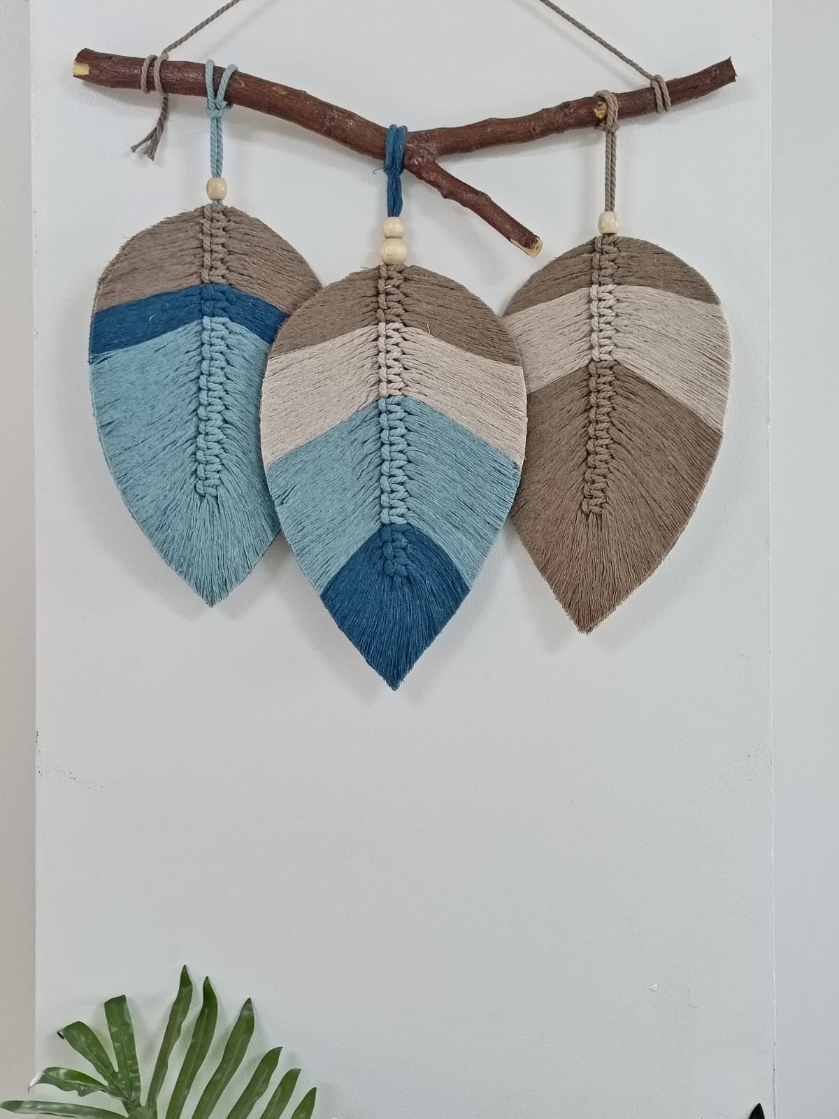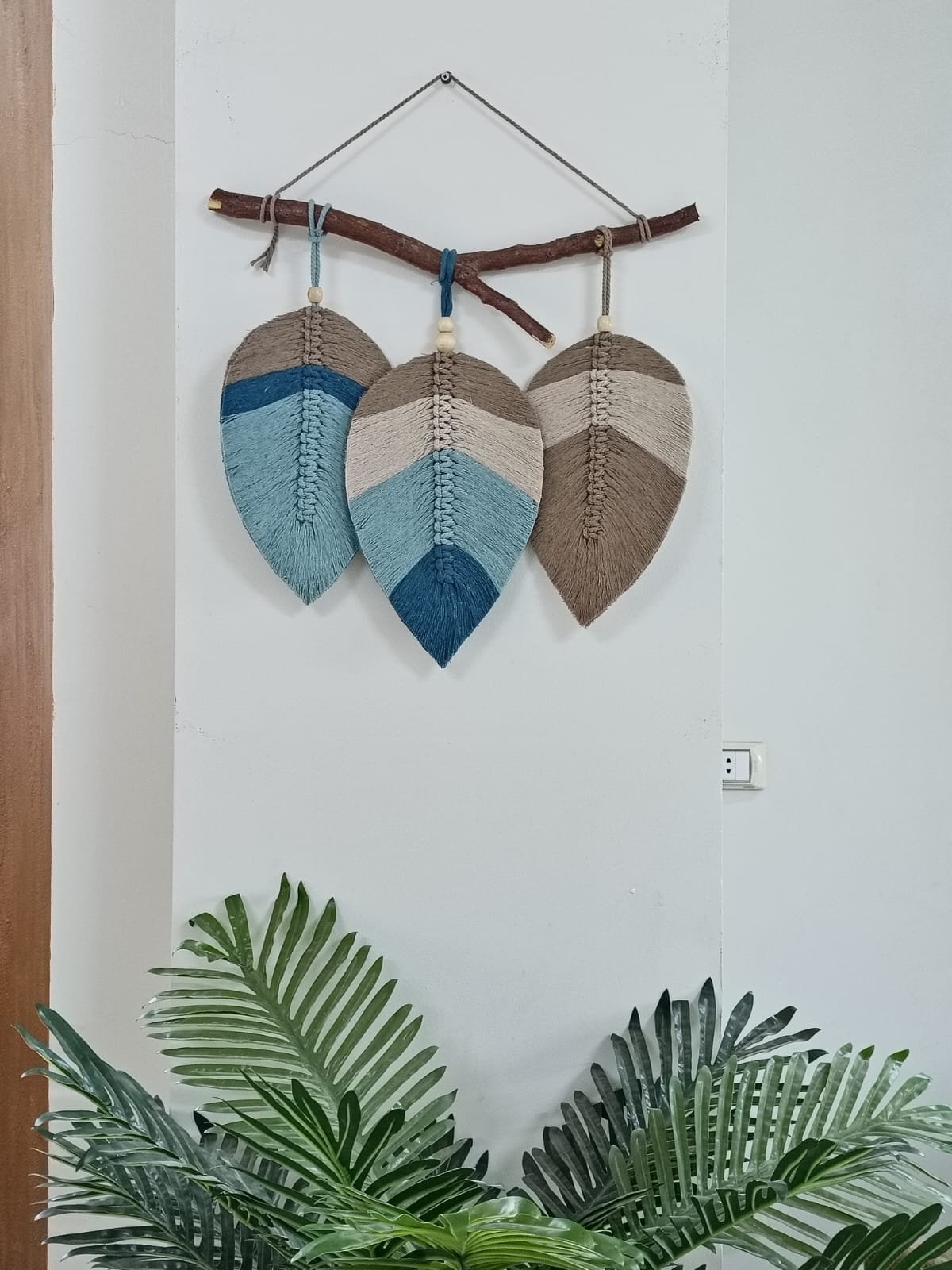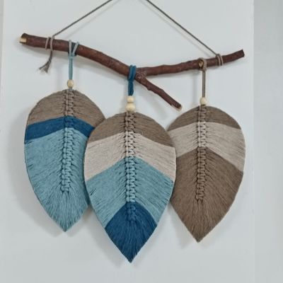 Macrame wall hanging contain 3 large leaves each is 20 cm × 32 cm