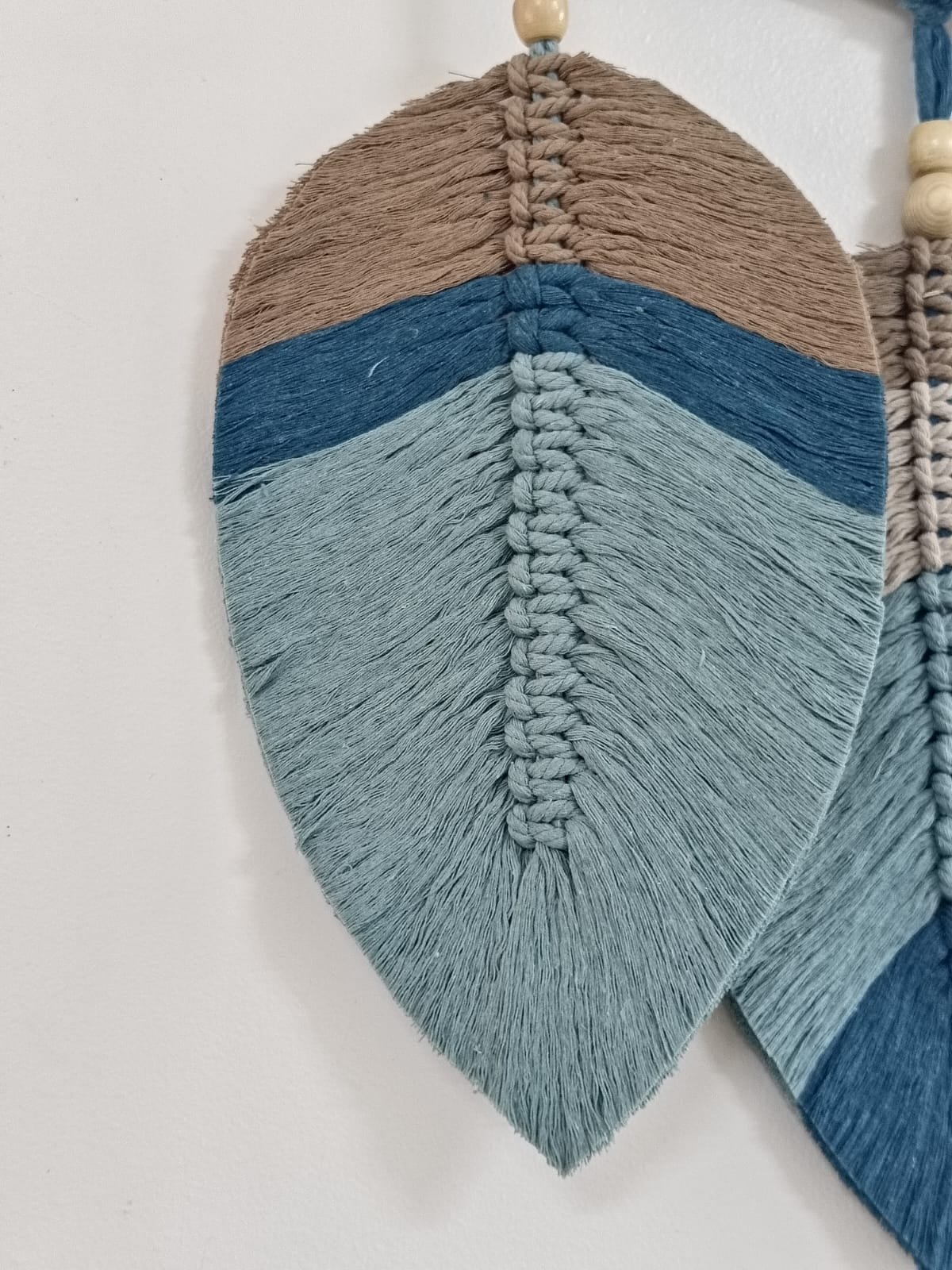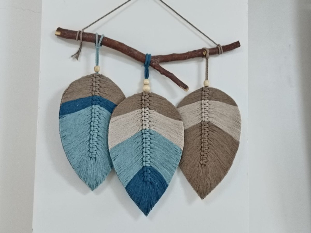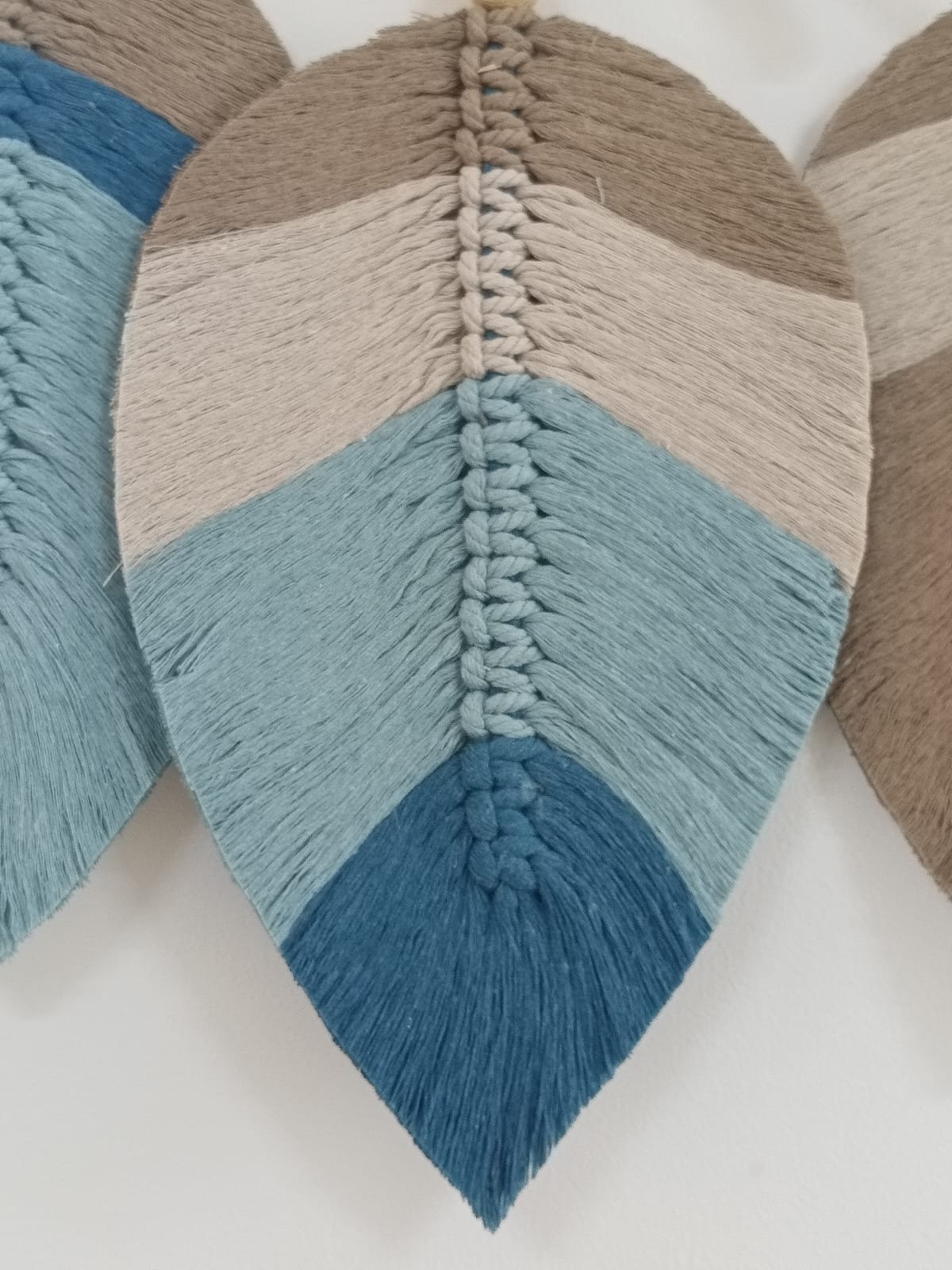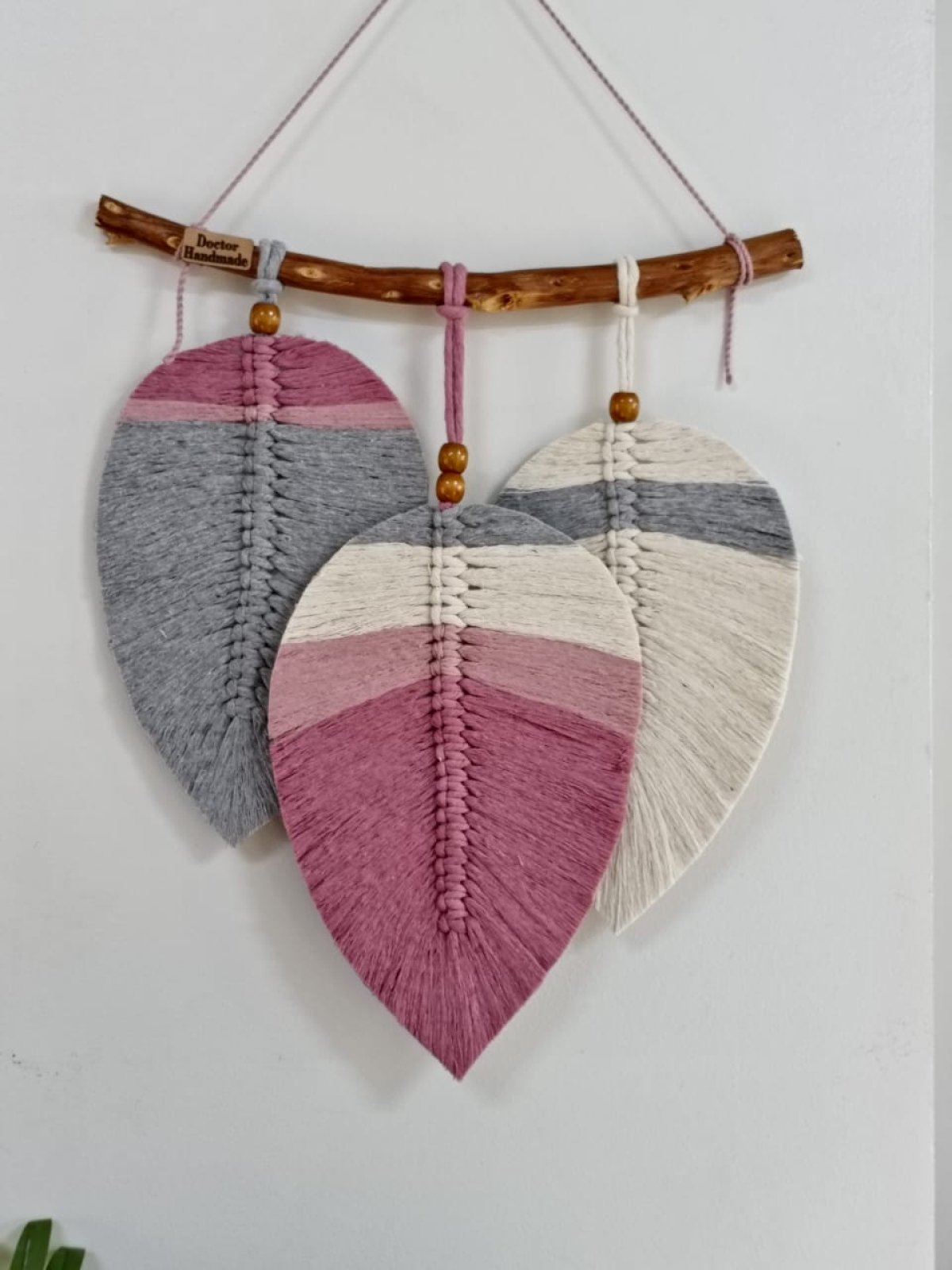 Macrame wall hanging contain 3 large leaves each is 20 cm × 32 cm