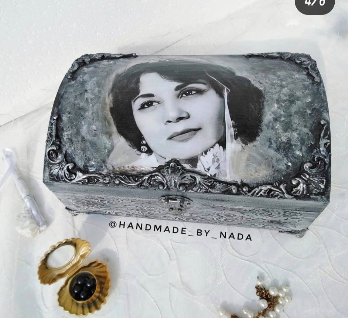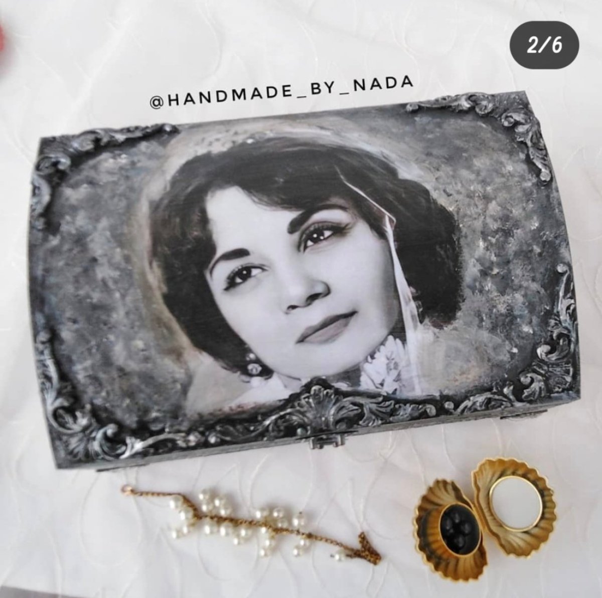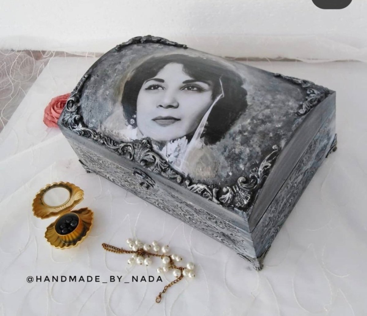 Customized black and white box with your photo and name inside