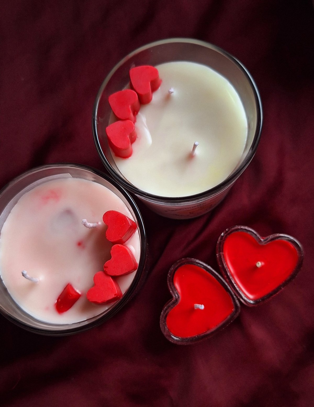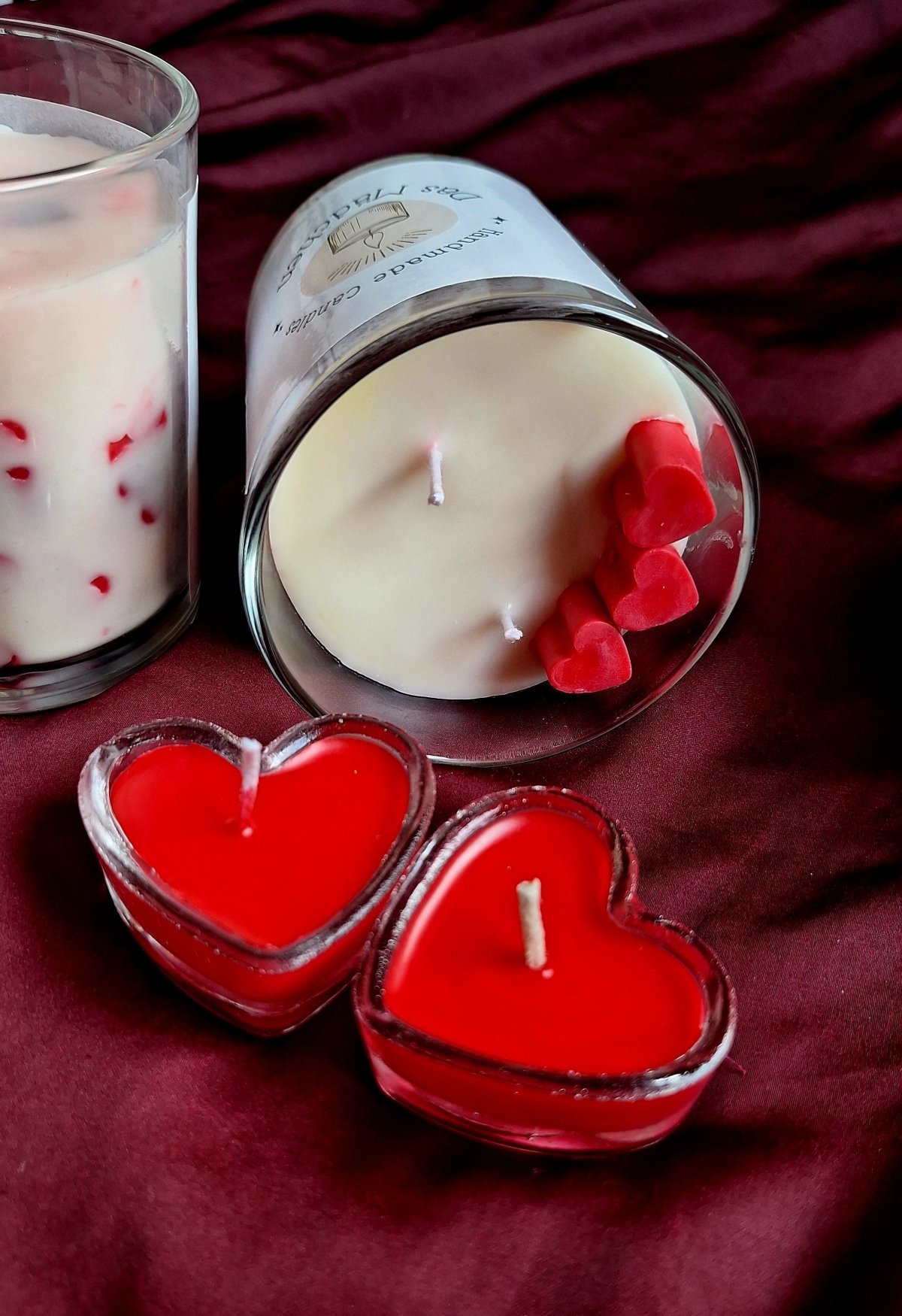 Scented Candles bundle consists of one candle jar 180 gm and four heart shaped tea light candles