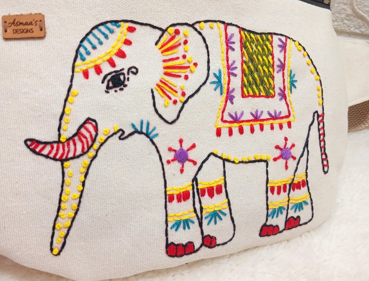 heavy ctton fabric, 750 grams treated with anti-shrinkage, lined with cotton fabric and contains an external zipper, 20 cm on the back, hand embroidered with high-quality threads that are not susceptible to fading or losing color.
