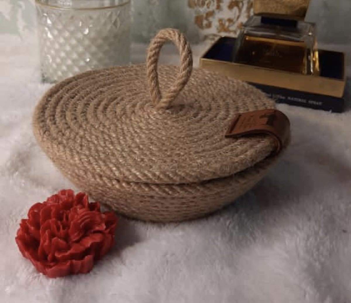 Jute organizer with lid for your valued accessories and jewelry 😍