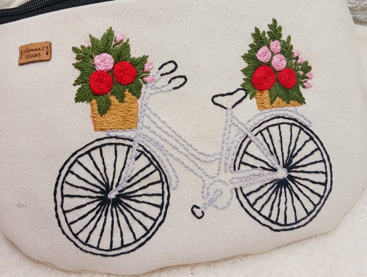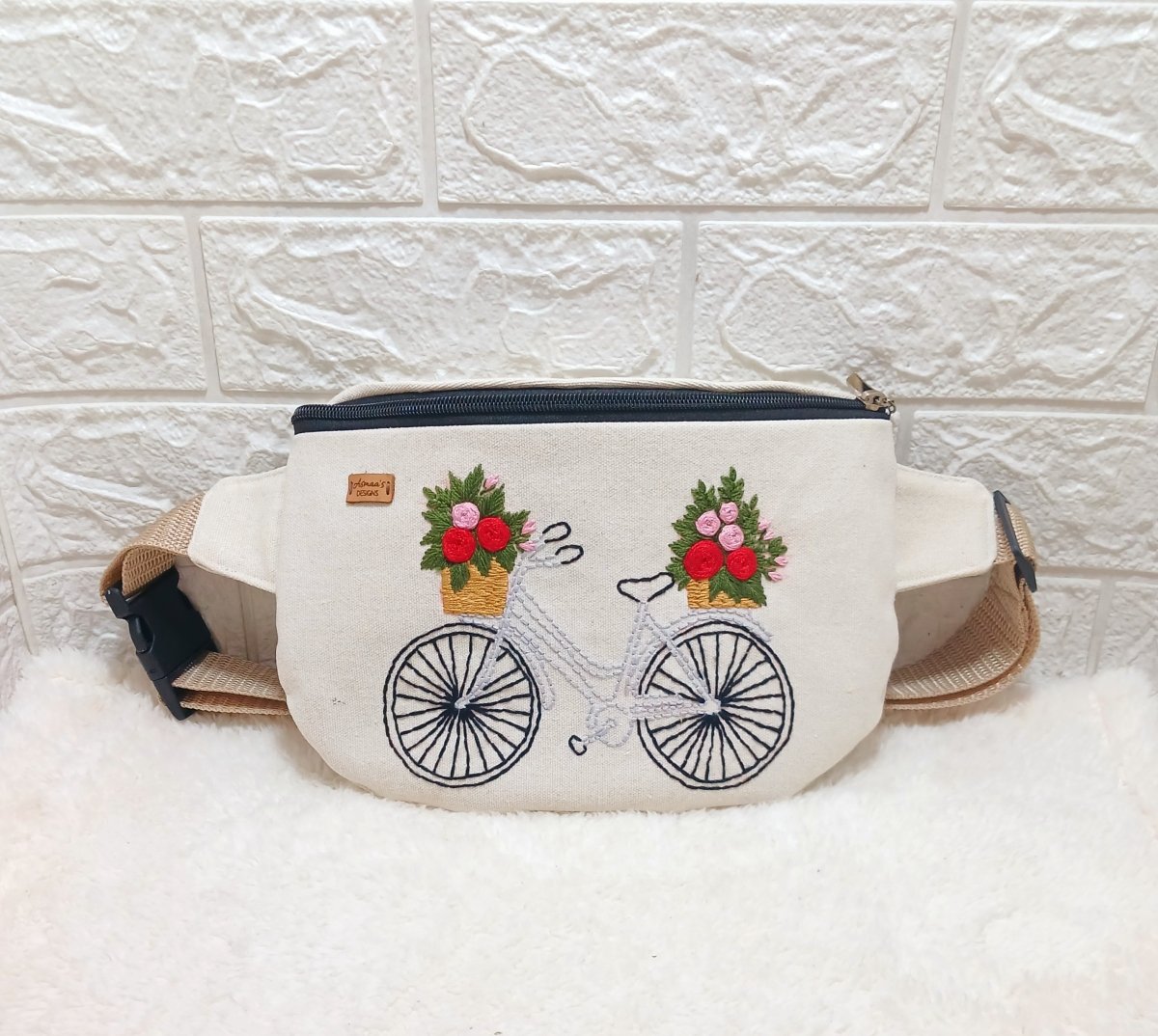 heavy ctton fabric, 750 grams treated with anti-shrinkage, lined with cotton fabric and contains an external zipper, 20 cm on the back, hand embroidered with high-quality threads that are not susceptible to fading or losing color.