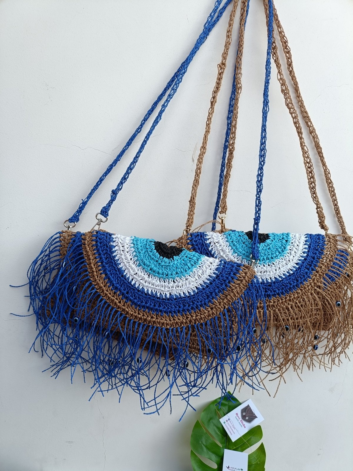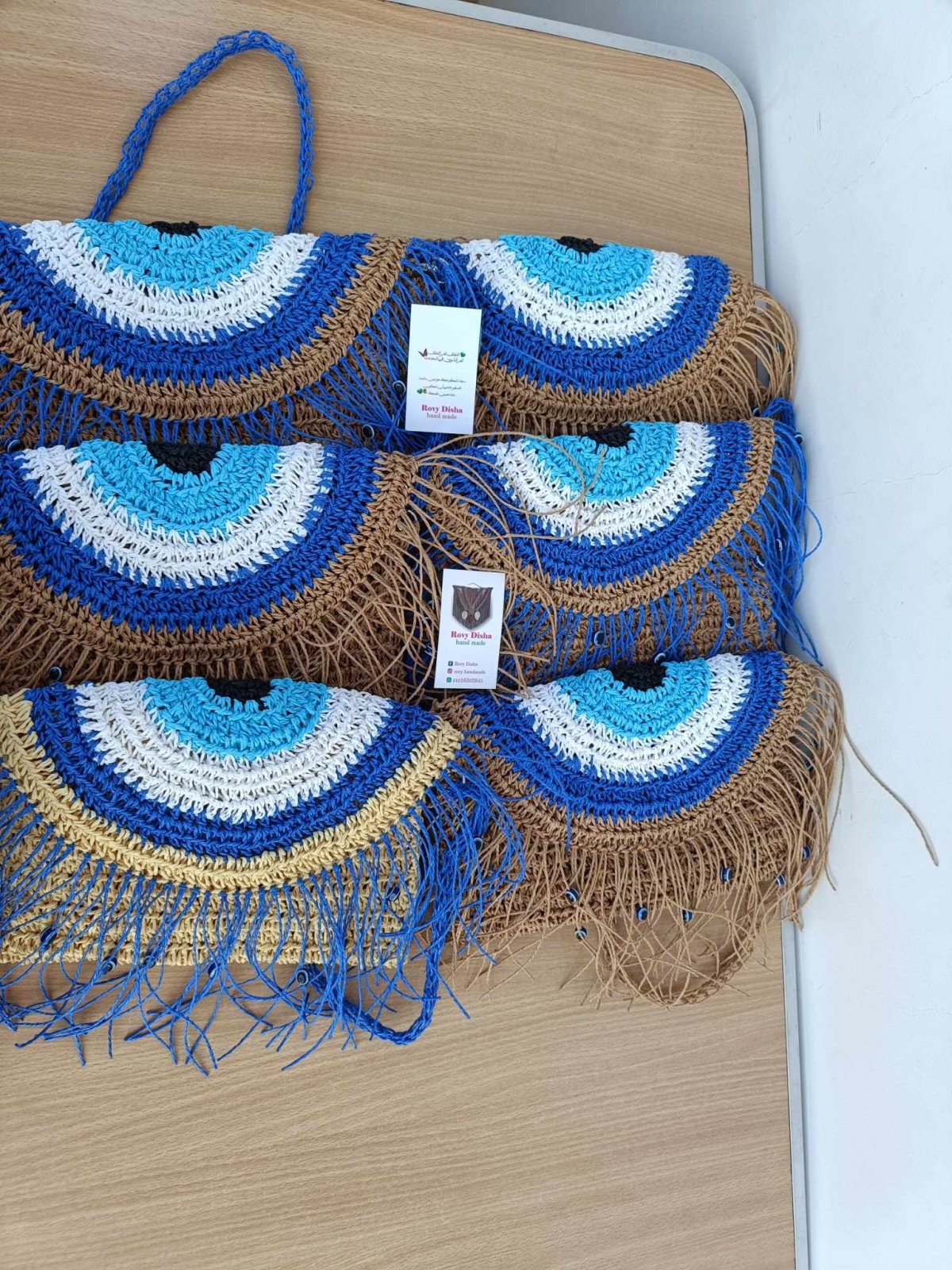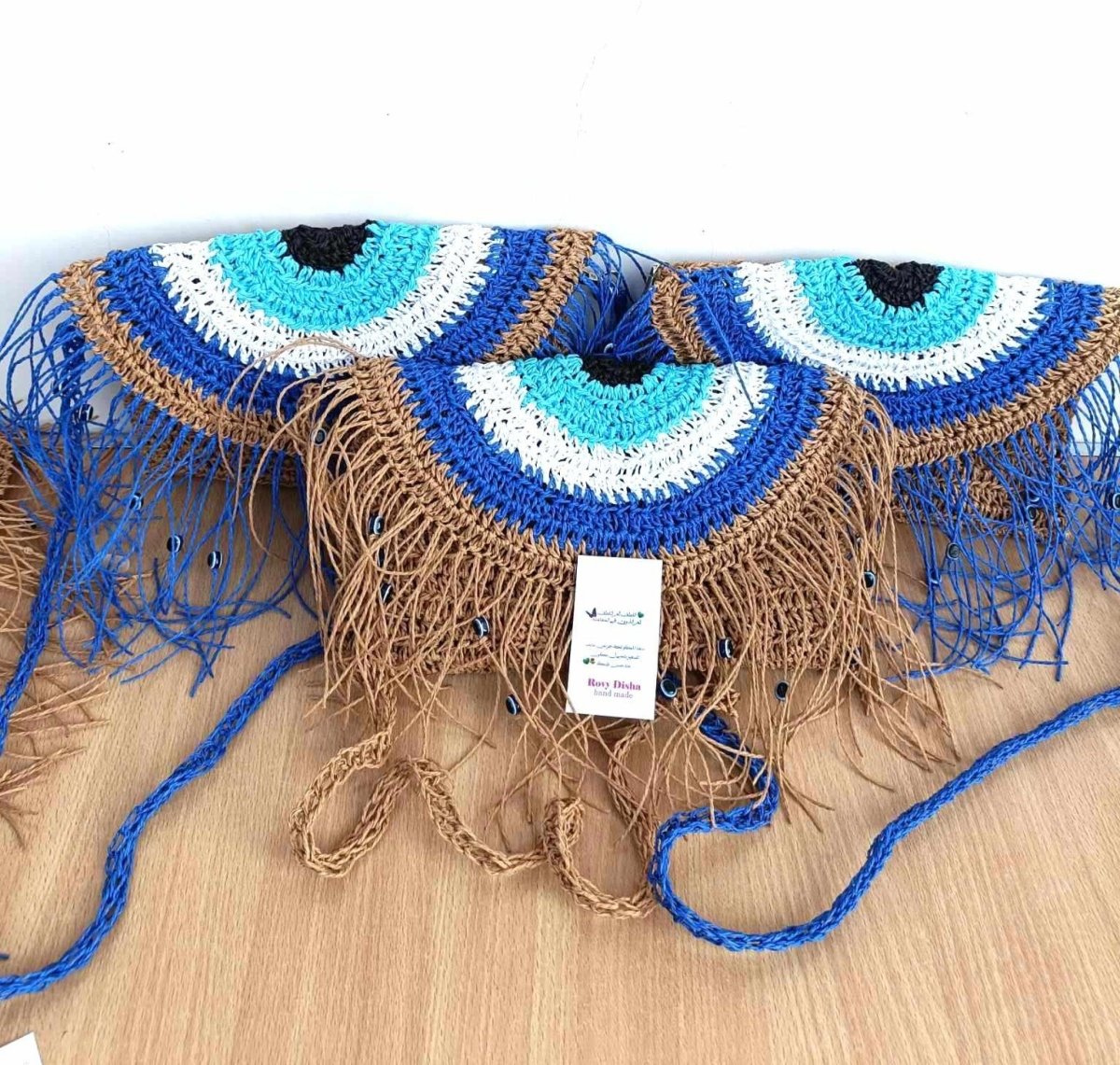 The trendy bag with imported raffia thread has a crossbody handle made of the same material and high-quality accessories and has an inner lining with a zipper made of the finest materials.