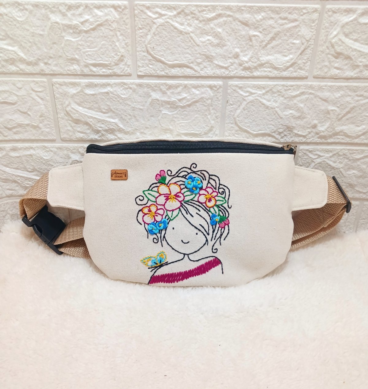 heavy ctton fabric, 750 grams treated with anti-shrinkage, lined with cotton fabric and contains an external zipper, 20 cm on the back, hand embroidered with high-quality threads that are not susceptible to fading or losing color.
