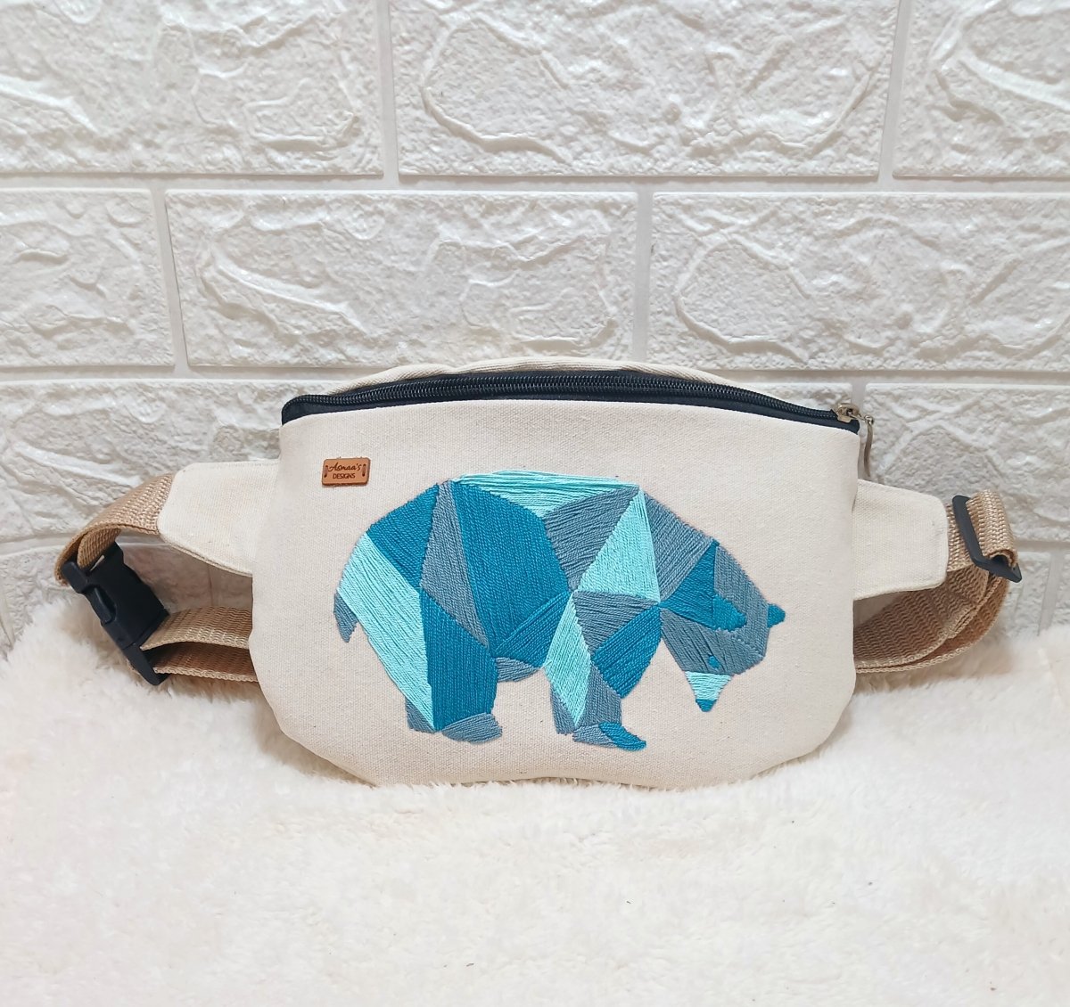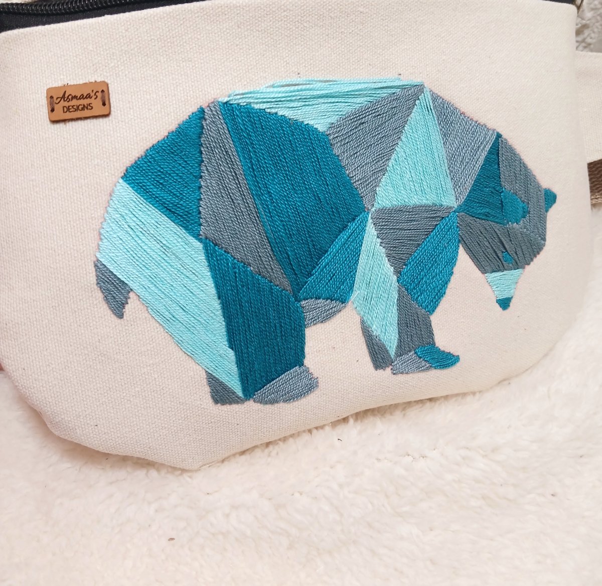 heavy ctton fabric, 750 grams treated with anti-shrinkage, lined with cotton fabric and contains an external zipper, 20 cm on the back, hand embroidered with high-quality threads that are not susceptible to fading or losing color.