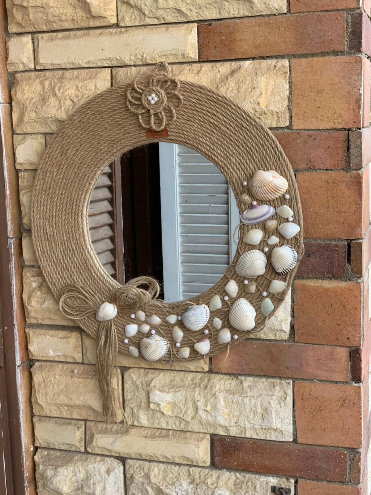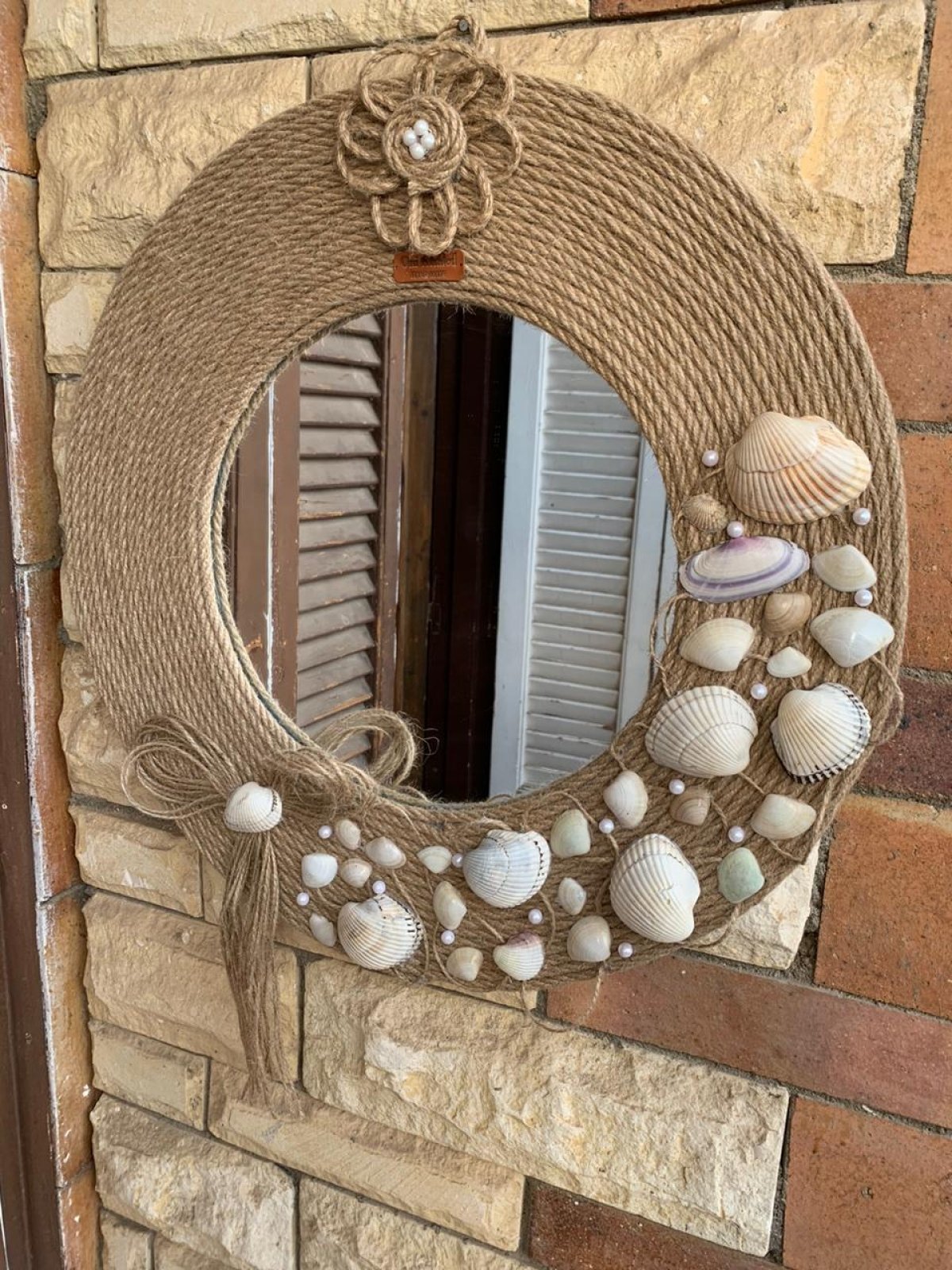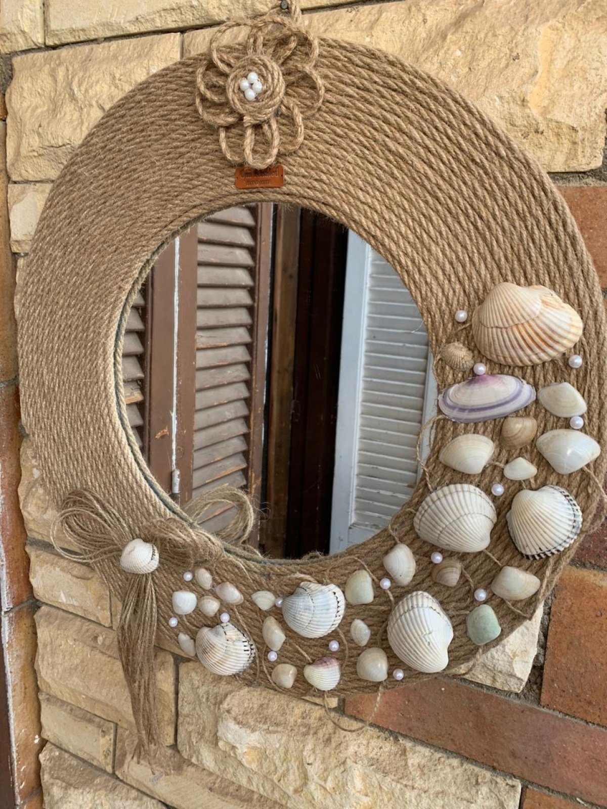 One of the most elegant and elegant mirrors.. from the finest burlap threads and the finest types of mirrors.. mirrors with wooden inserts attached, the same diameter as the mirrors.. inlaid with seashells.. a new and distinctive shape for the mirrors .. Available in any way