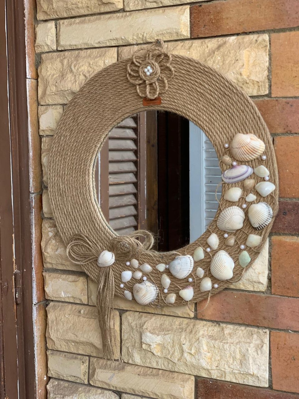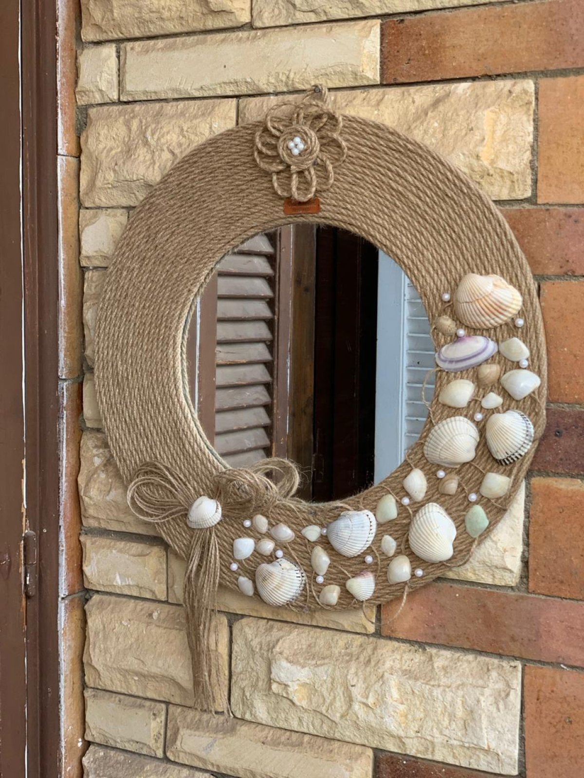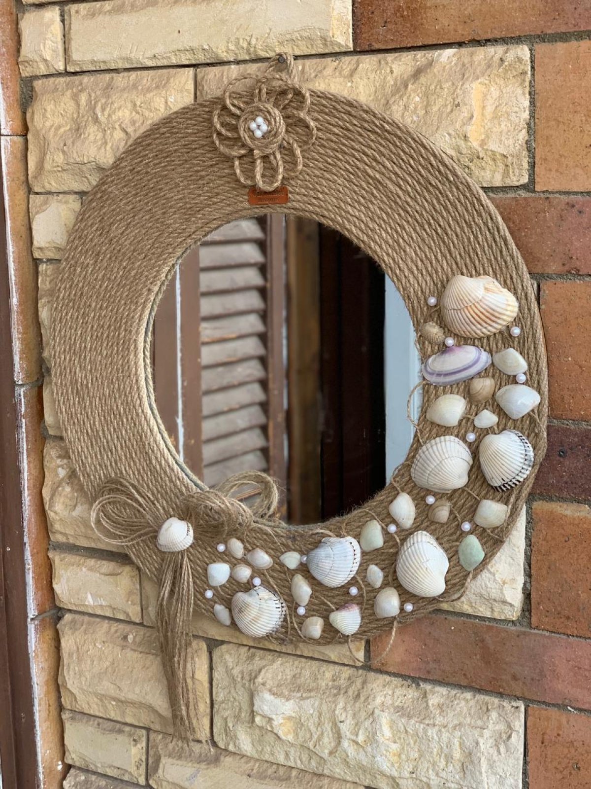 One of the most elegant and elegant mirrors.. from the finest burlap threads and the finest types of mirrors.. mirrors with wooden inserts attached, the same diameter as the mirrors.. inlaid with seashells.. a new and distinctive shape for the mirrors .. Available in any way