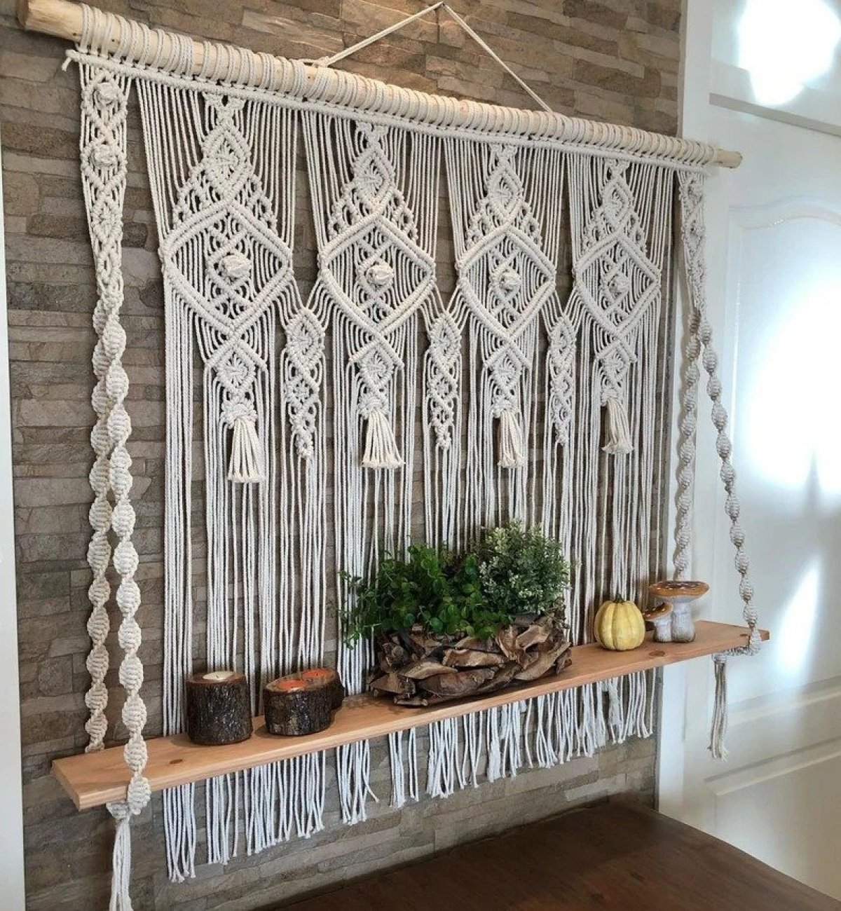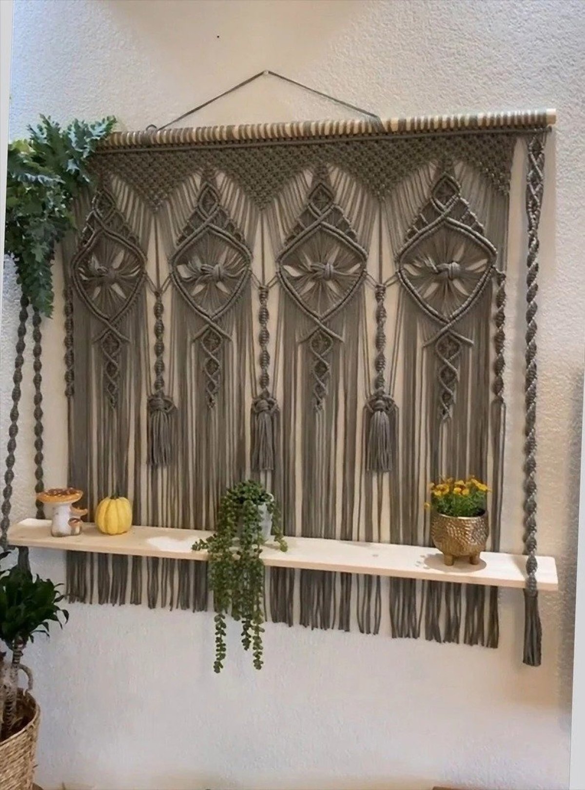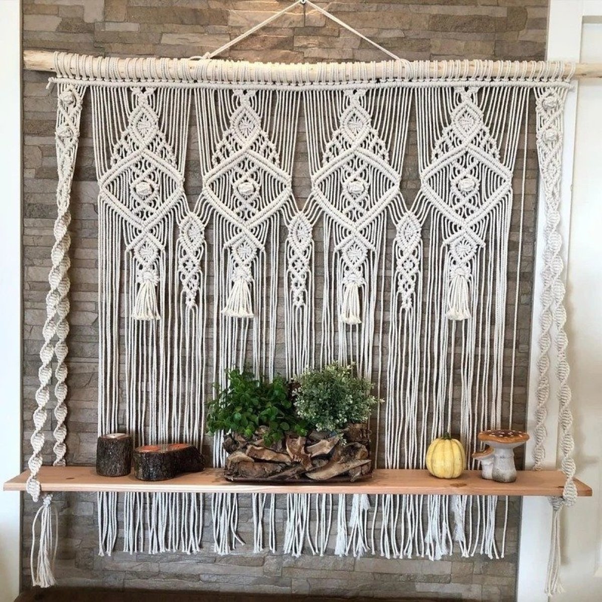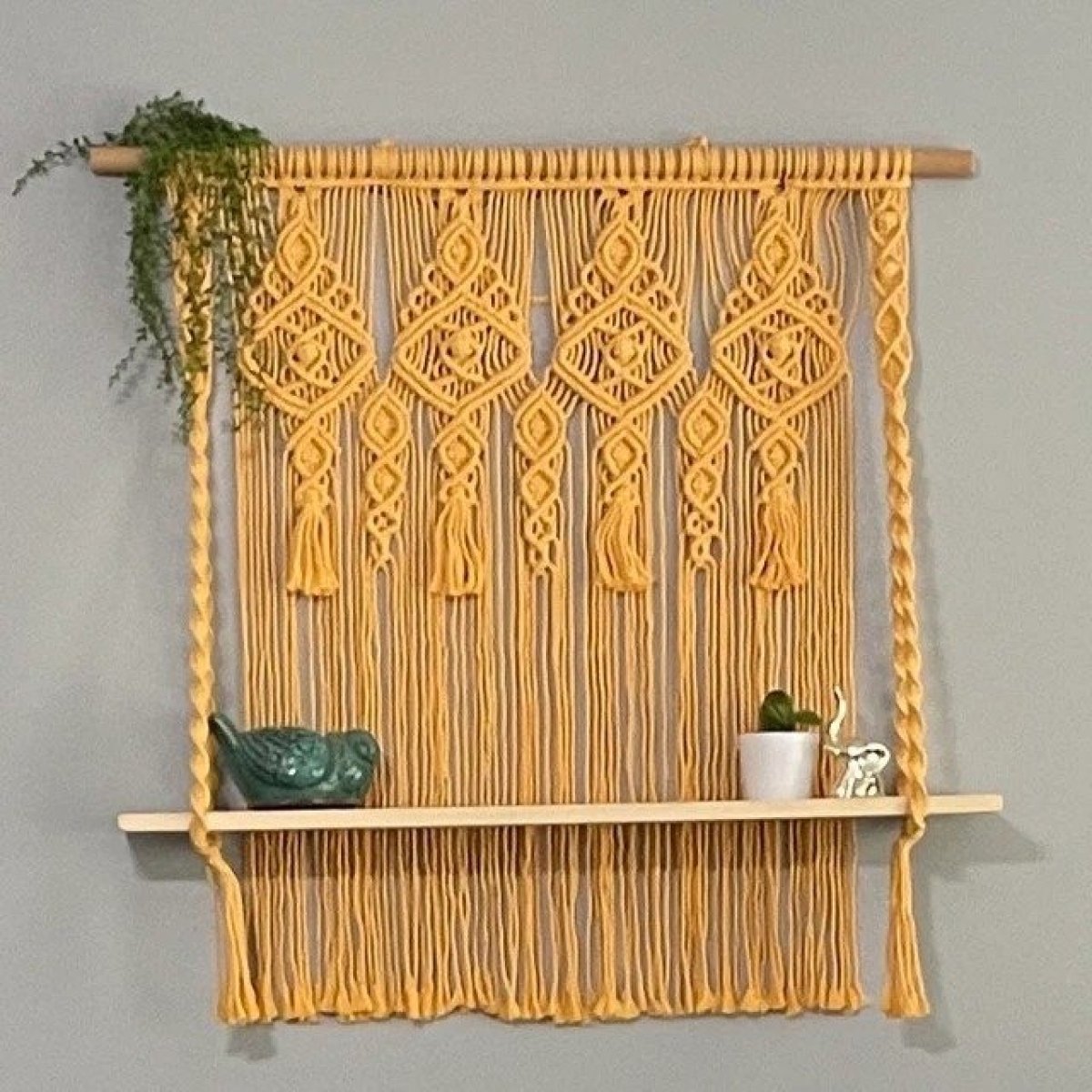 Large Macrame Shelf, Wall Decor Hanging Shelf Useful as a gift for Mother's Day Different colors according to your request 100% cotton threads Width: 60 cm Height: 60 cm Depth: 14 cm