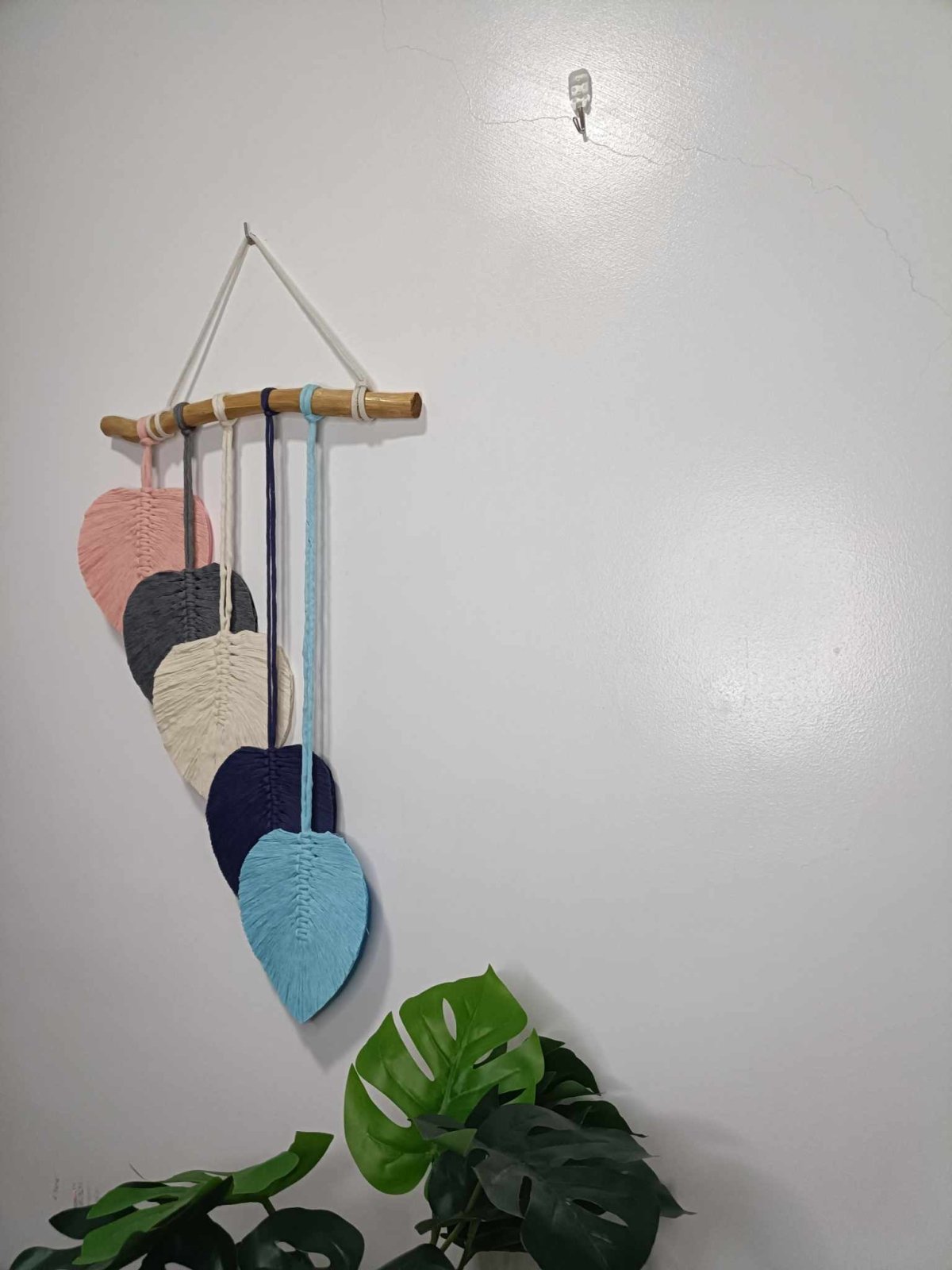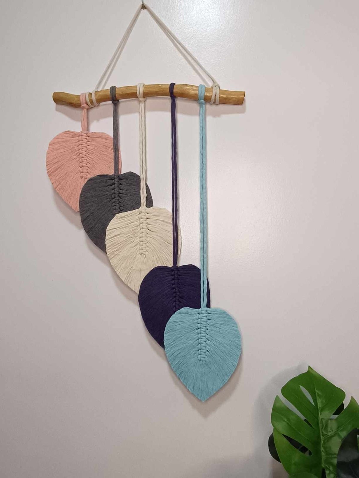 A tree leaf mural, size 30 cm, width 80 cm, contains 5 leaves in multiple colors and is available to be executed in colors and sizes that suit your home decor to increase the beauty of your kingdom.
