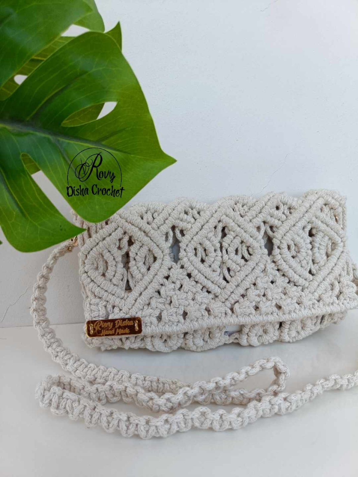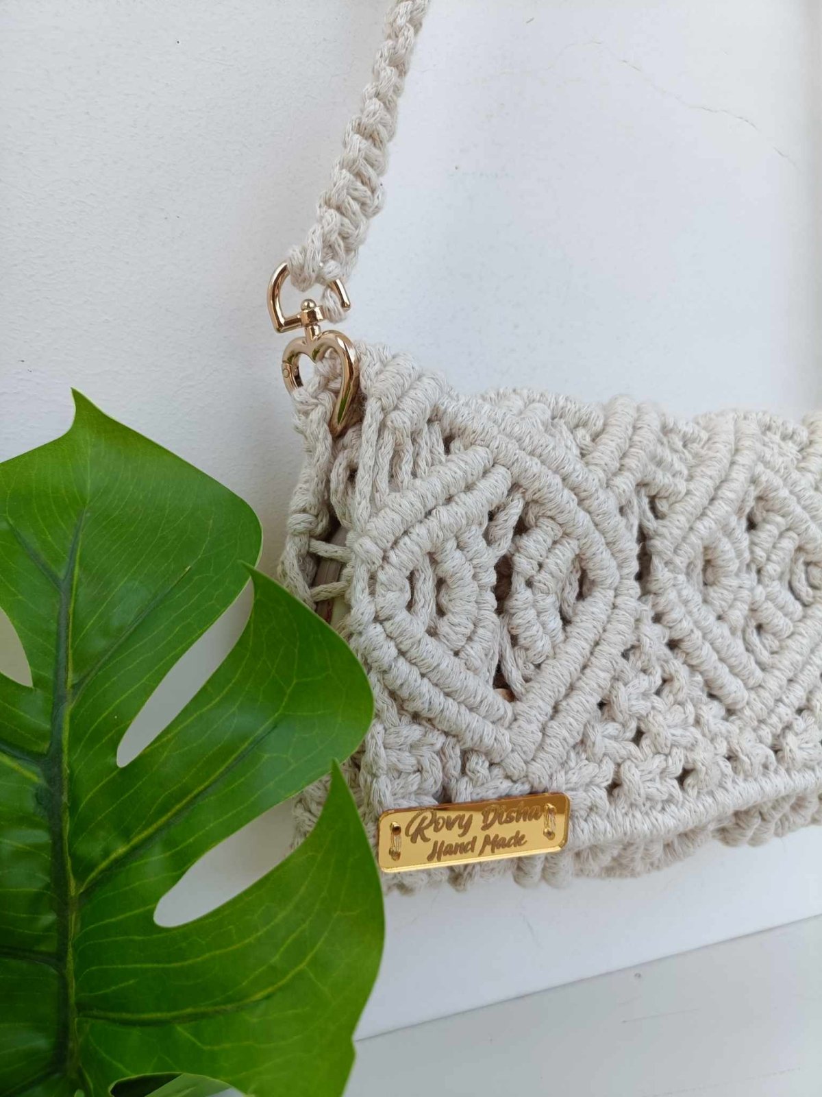 Our Zara bag is nothing but delicate and beautiful. It was made with love with Egyptian fingertips, with imported threads, and a knot in the art of macrame. Our production is an elegant, unique piece, size 22*17, lined on the inside, and has a crossbody handle and high-quality accessories other than a heart to change color.