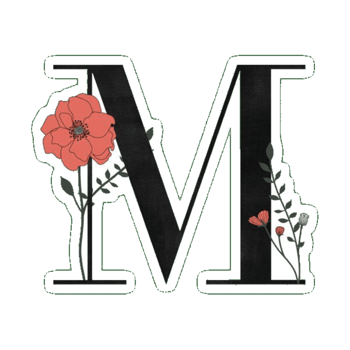 floral letter M sticker