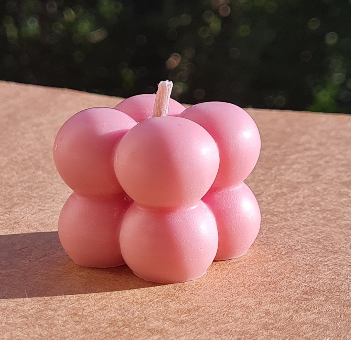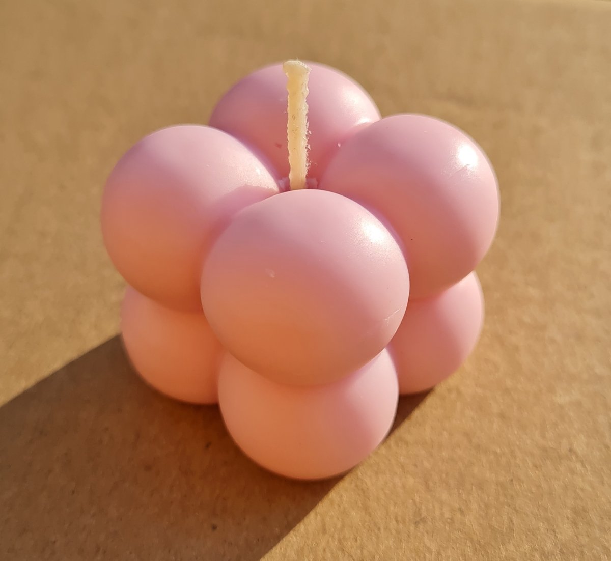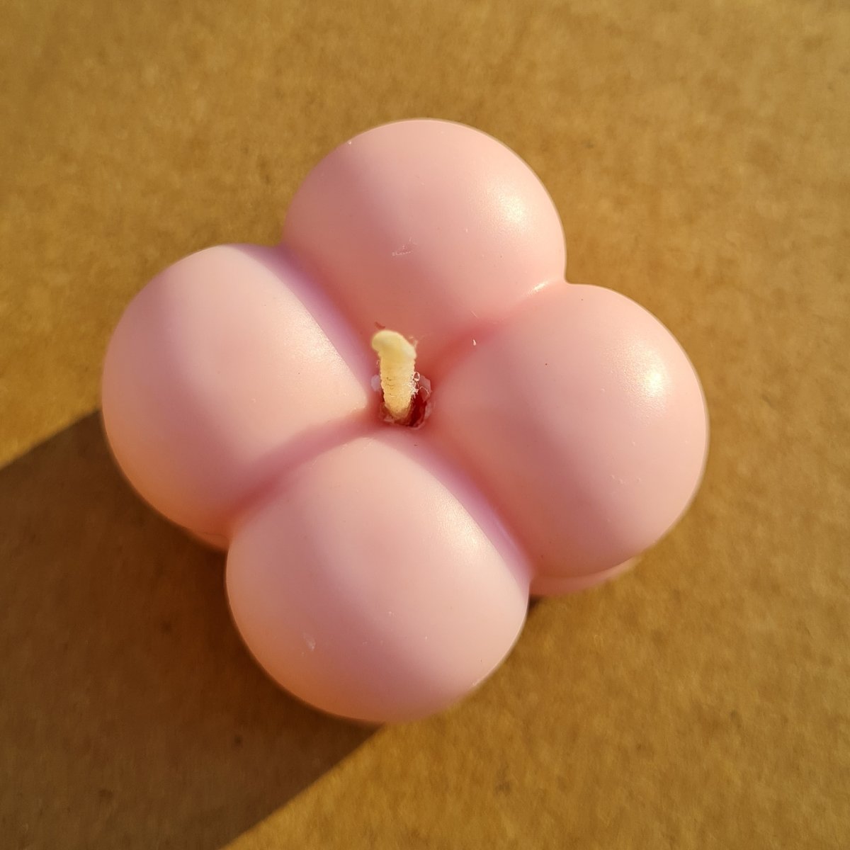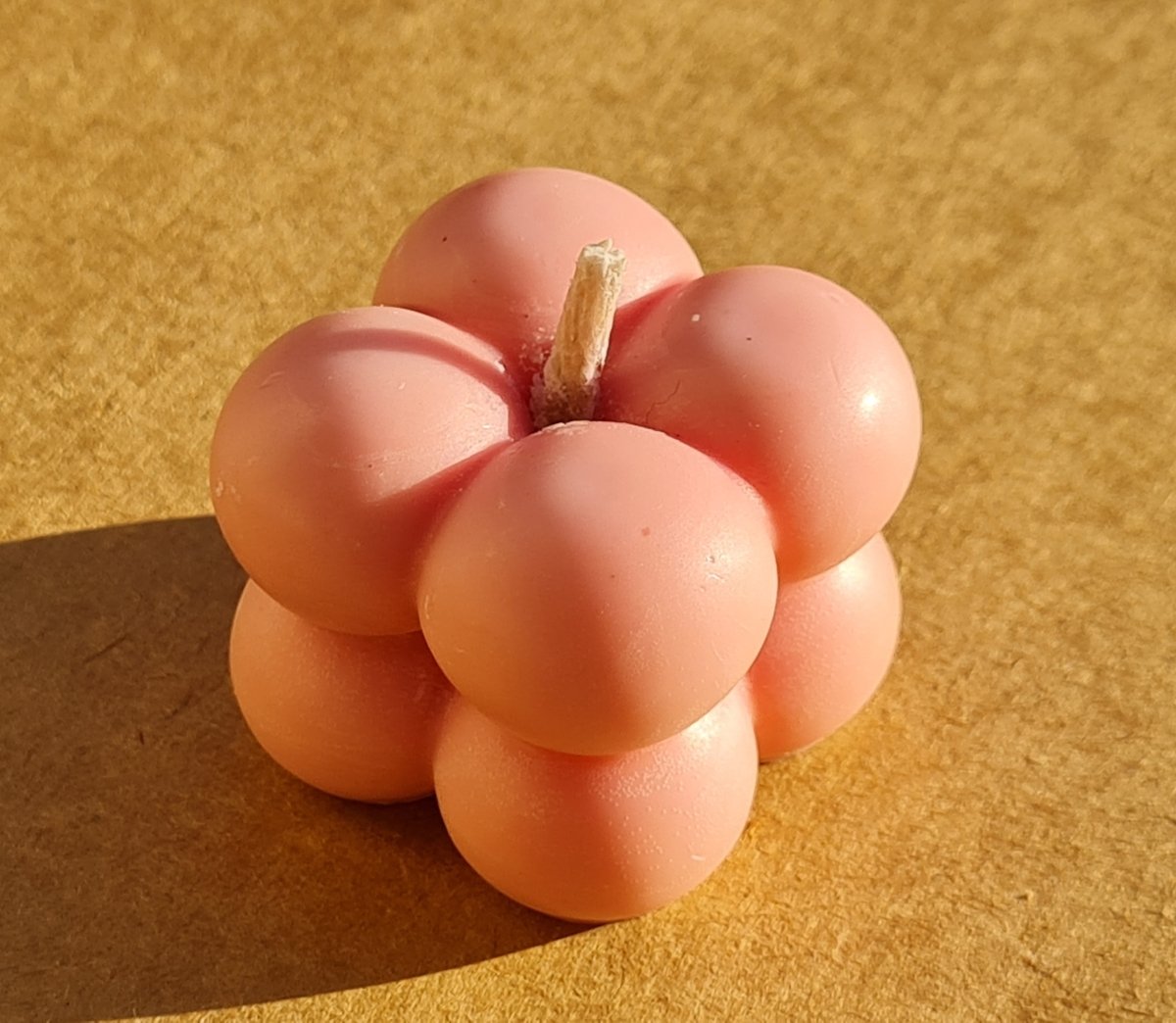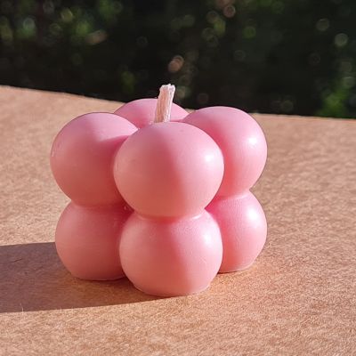 A small healthy candle made from natural beeswax and scented with a mix of gum and candy scents