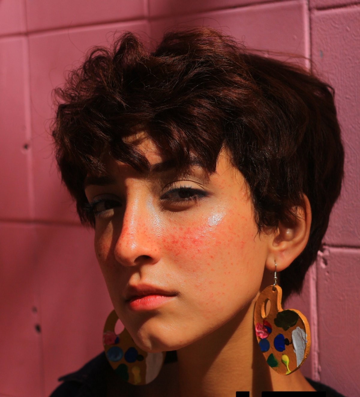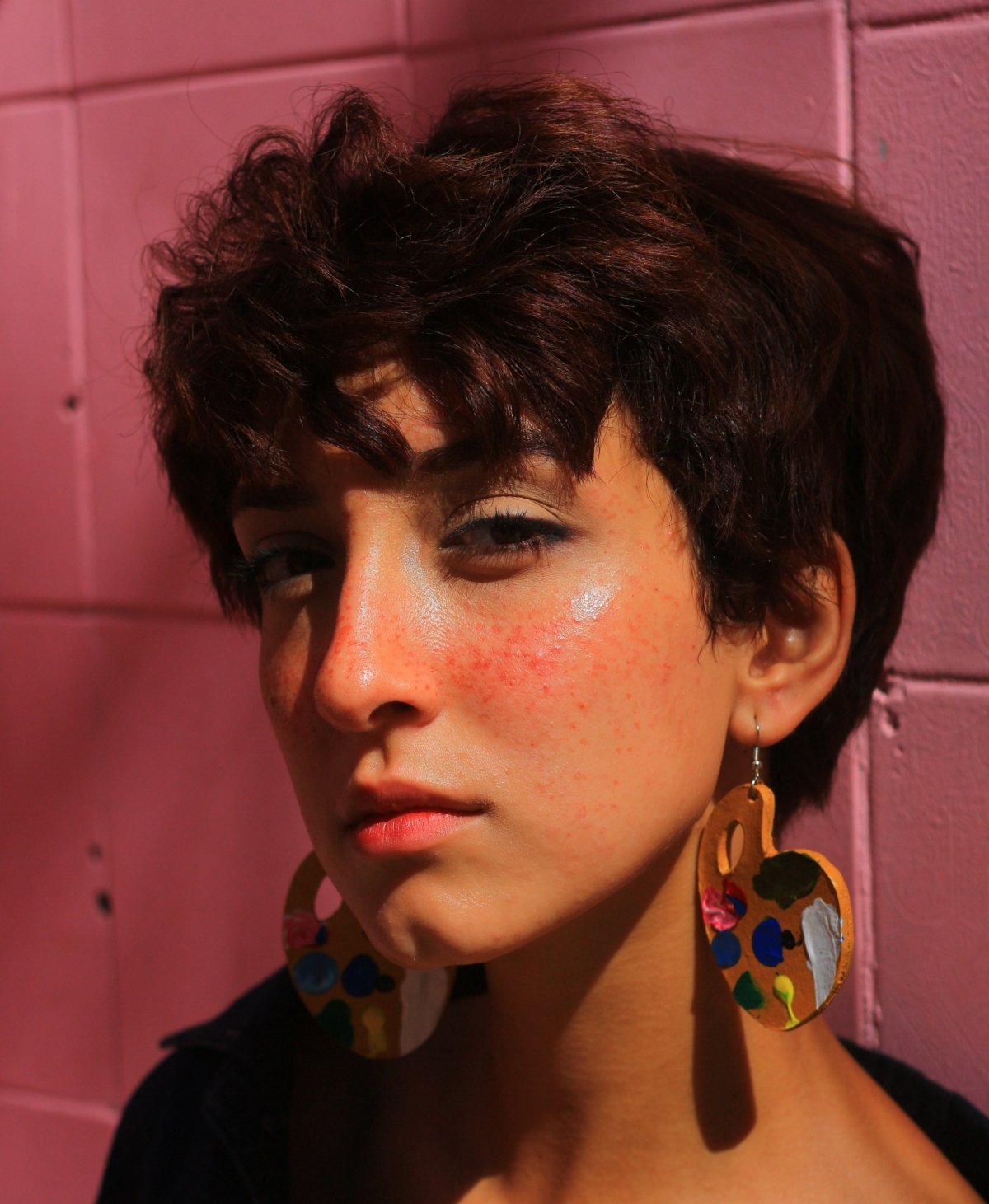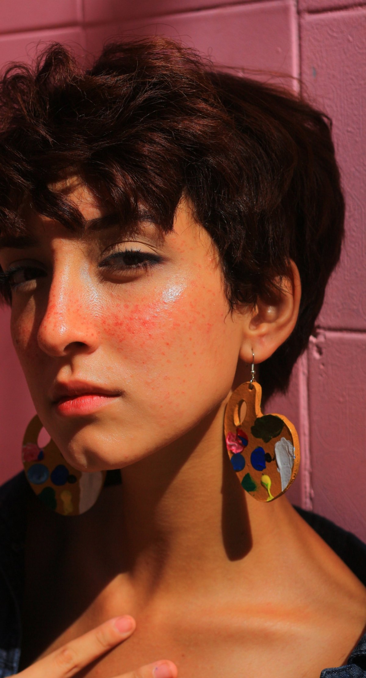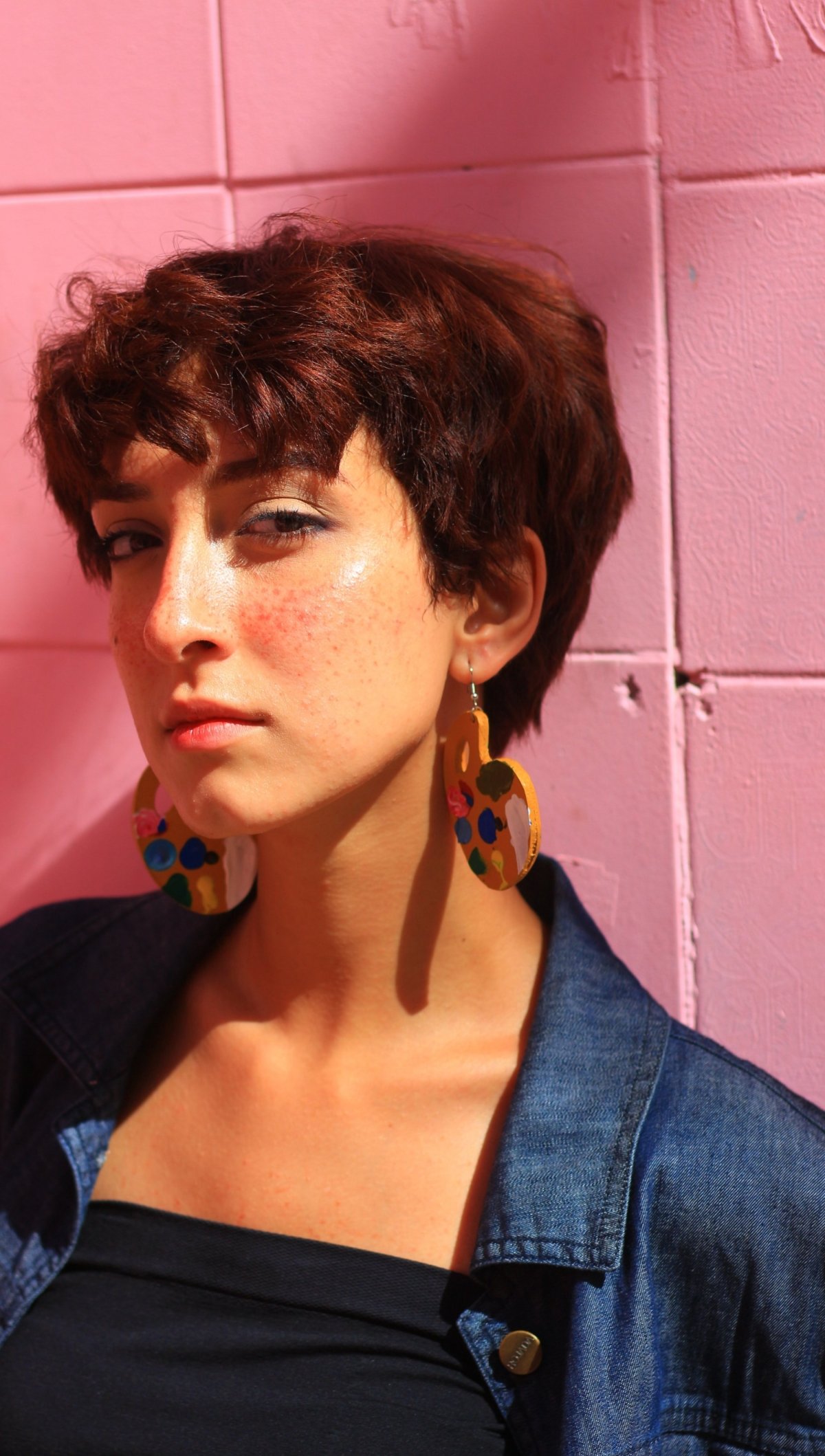 Art Nubian earring, natural leather, solid acrylic colors, length about 6 cm