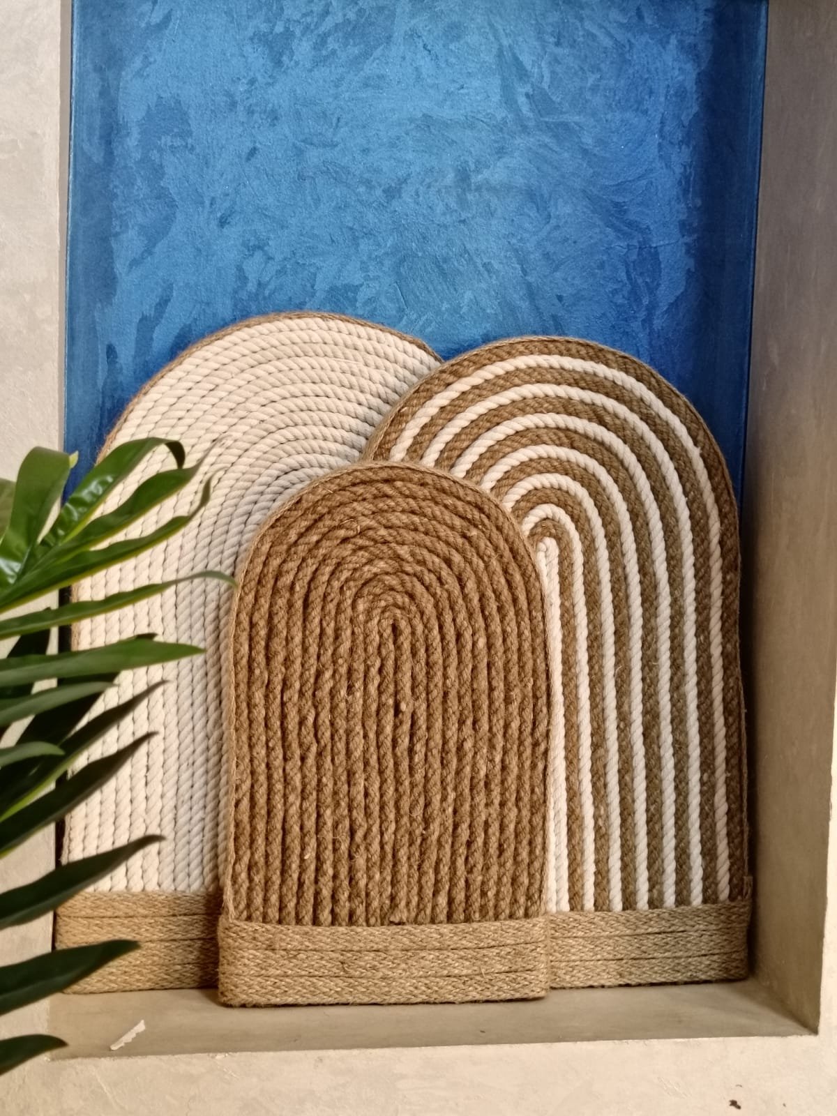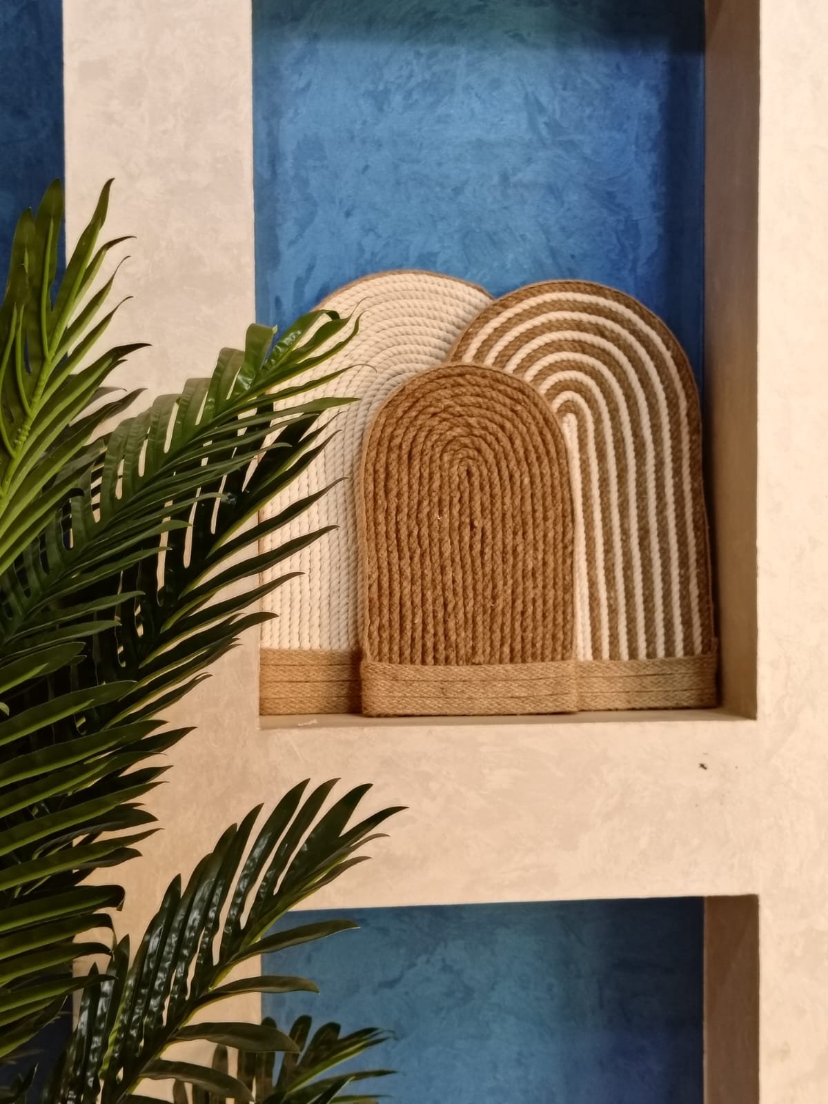 Boho costers set is very trendy decor used on shelf or coffee corners