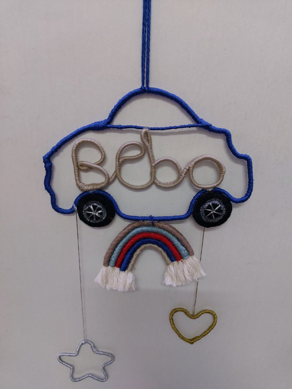 Wall hanging with specific shape and name made of cotton threads and macrame