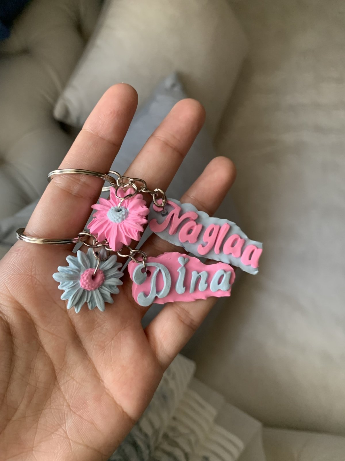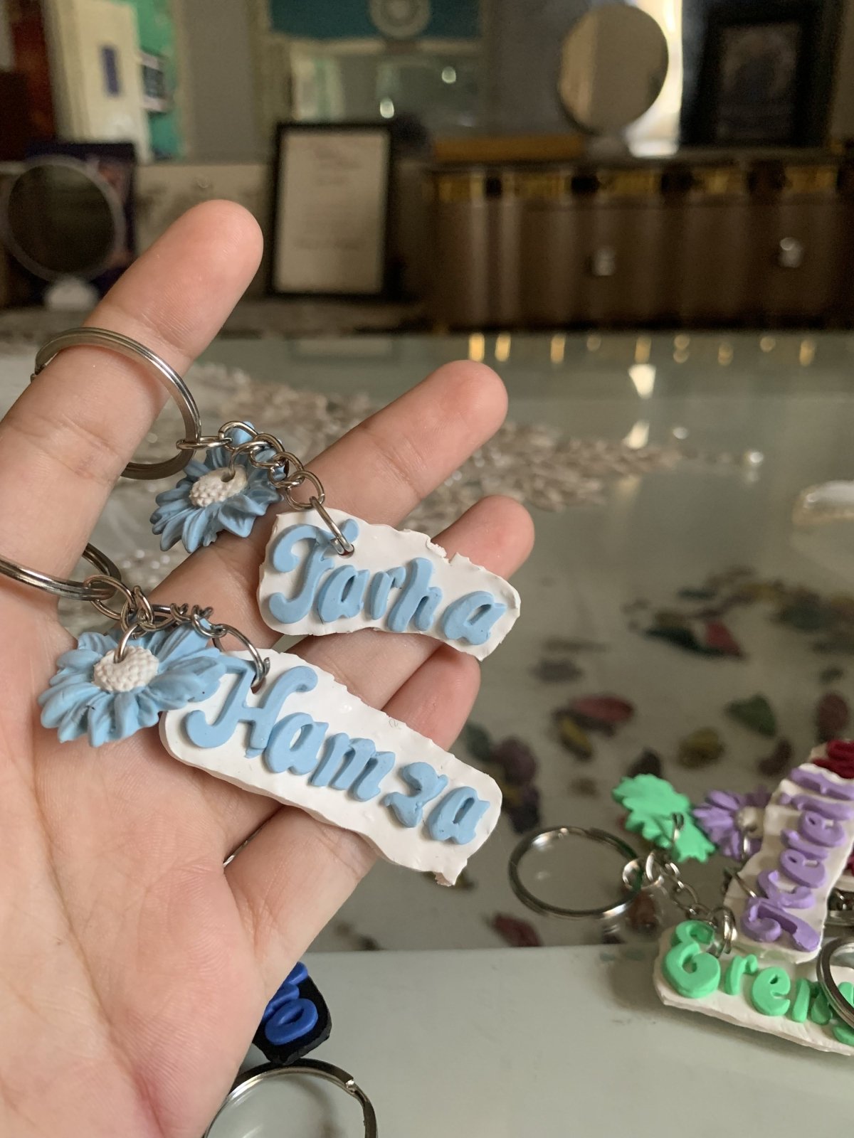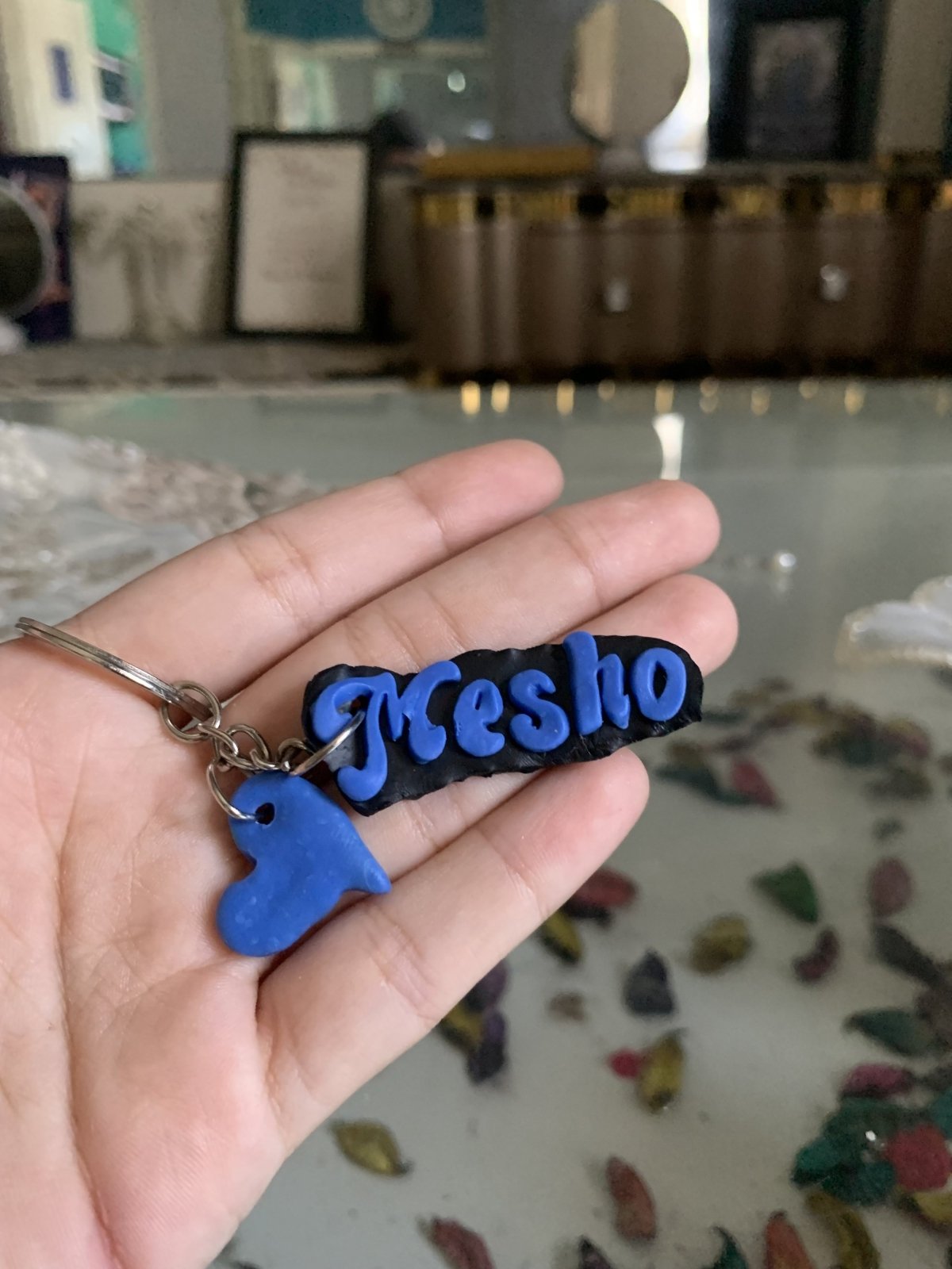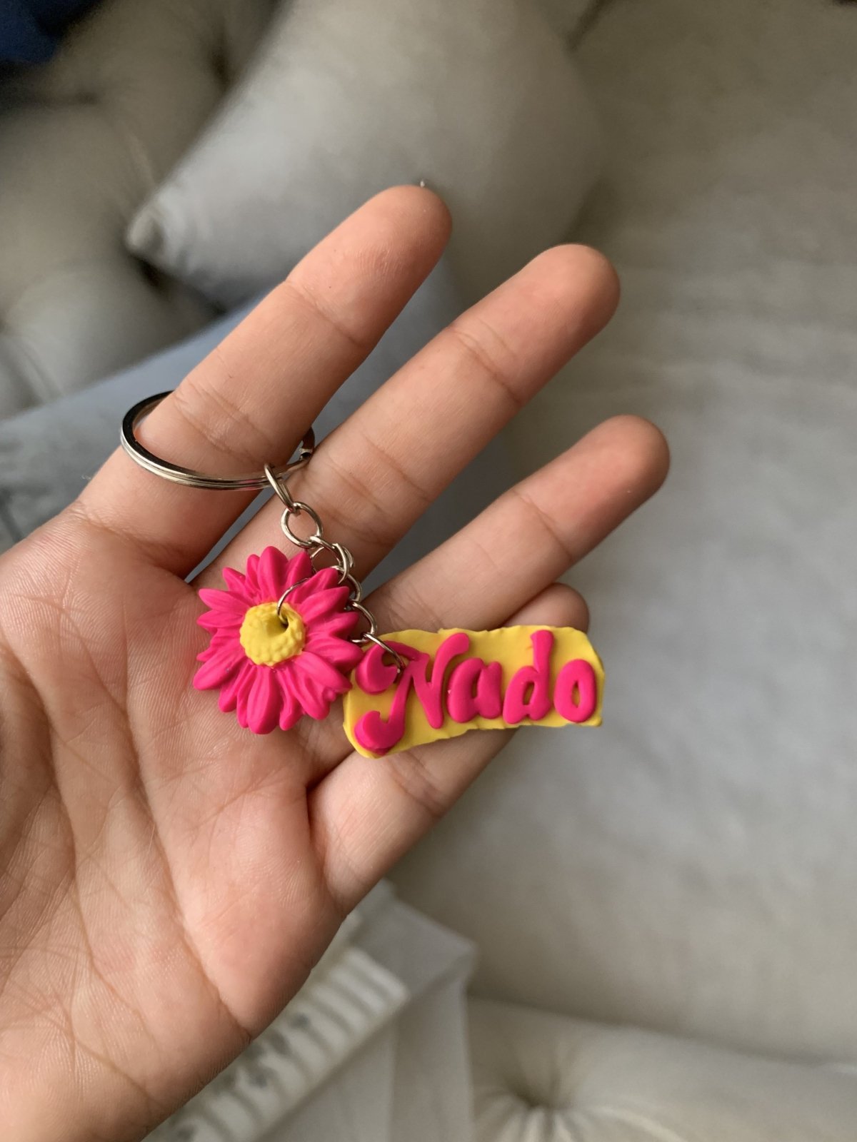 Keychain made of polymer clay with the name, random shape according to the name, its length depends on the length of the name, and the color and name can be changed