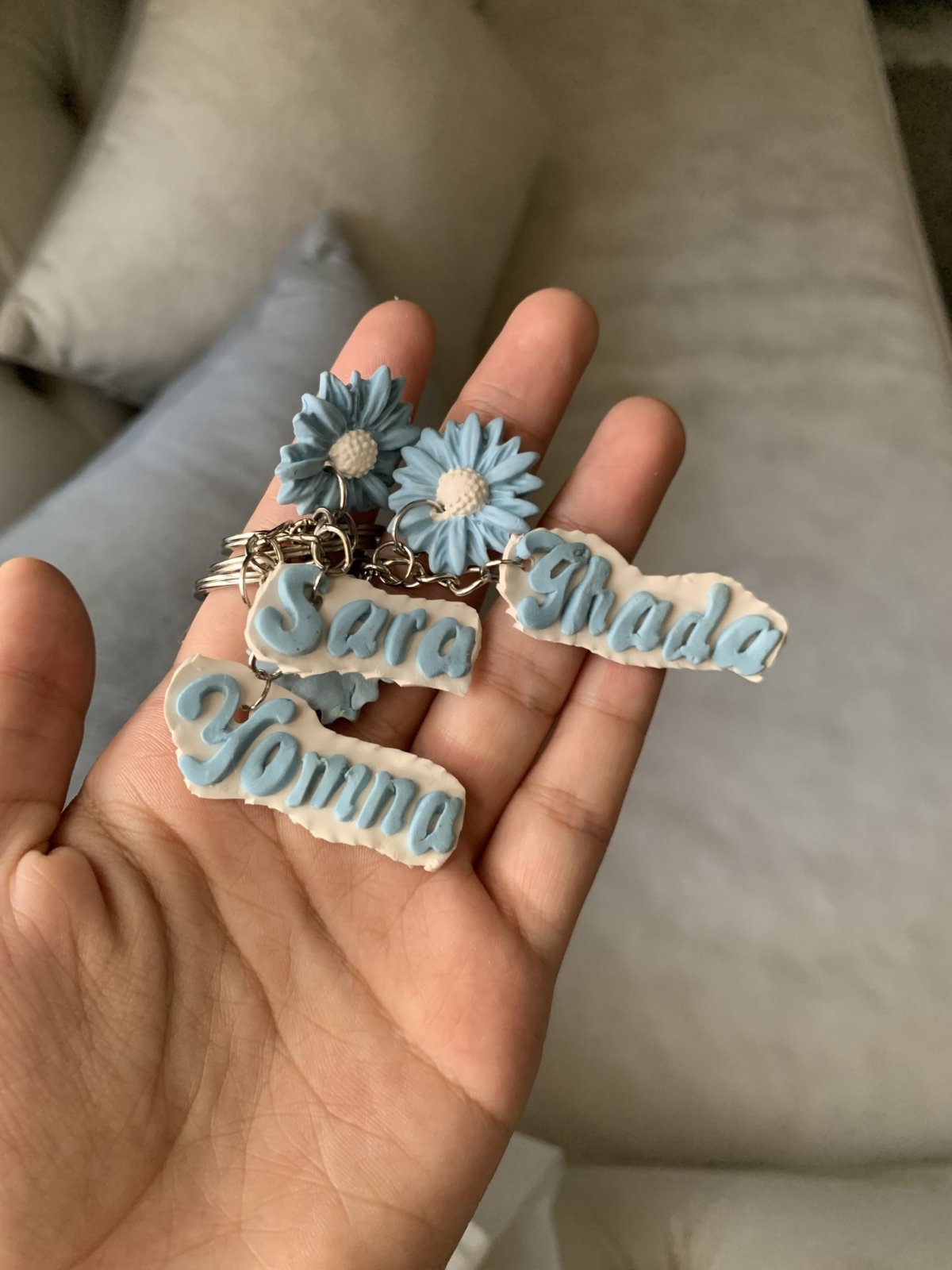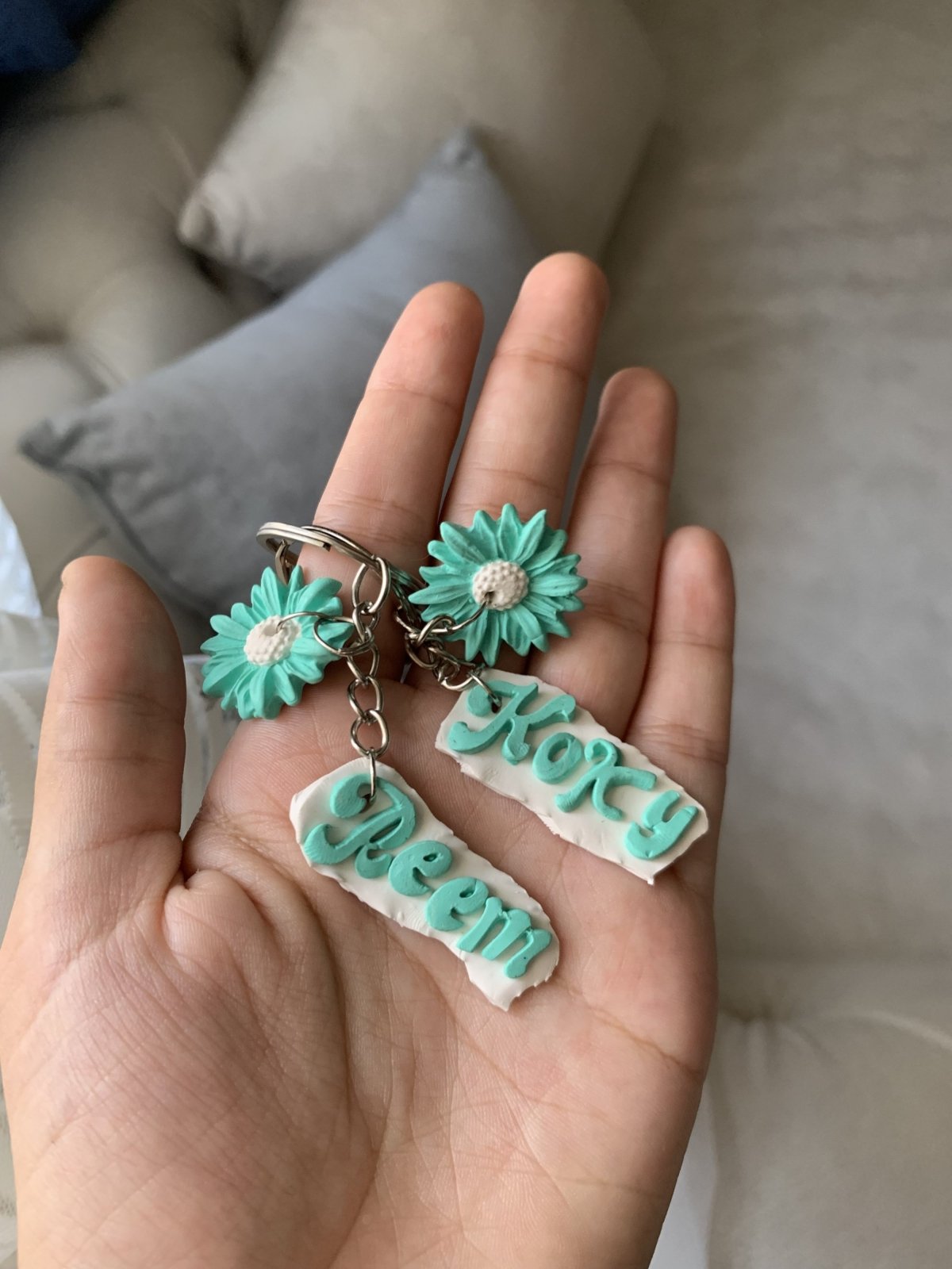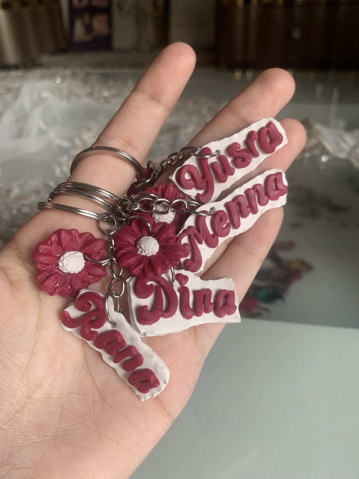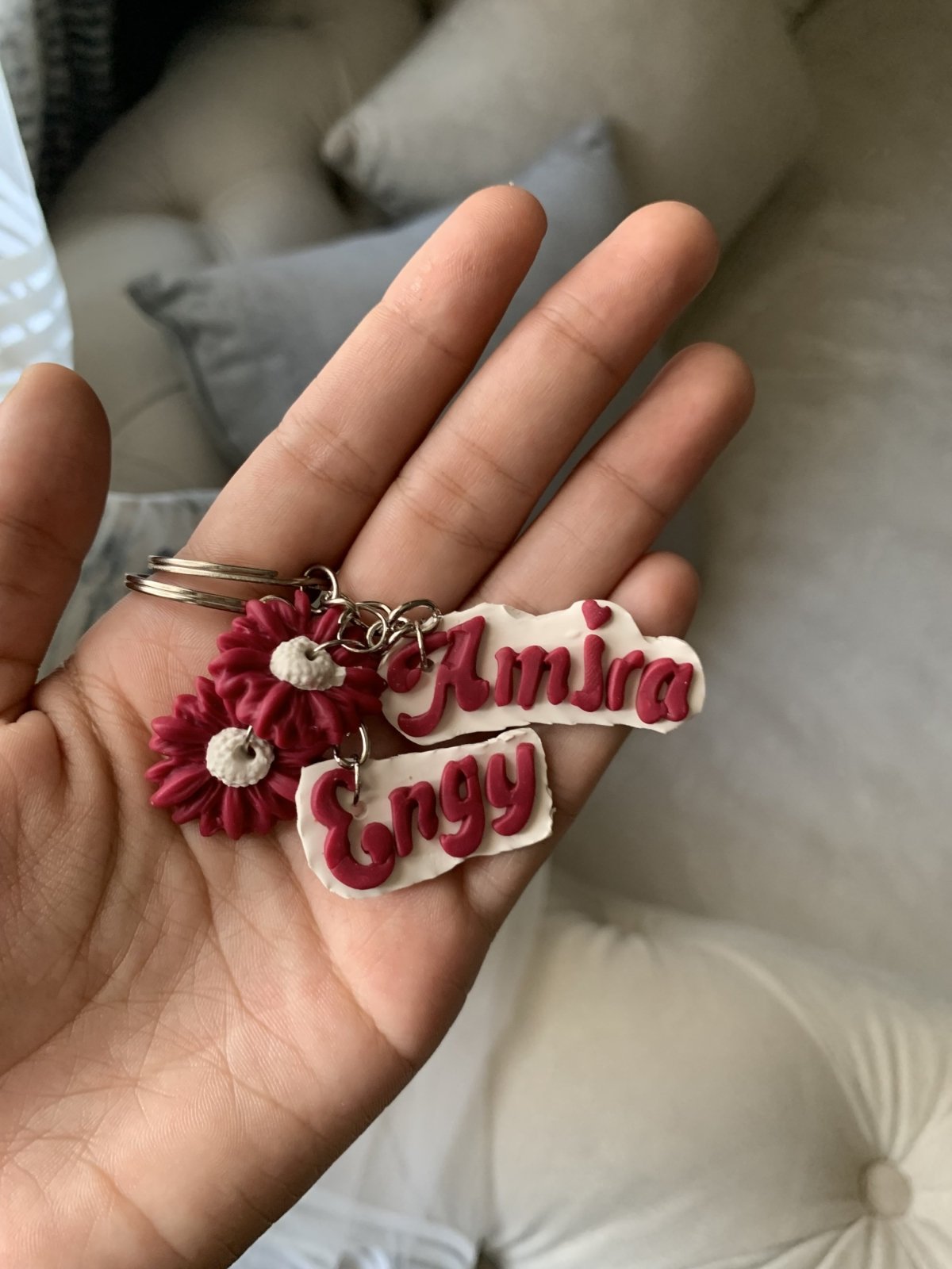 Keychain made of polymer clay with the name, random shape according to the name, its length depends on the length of the name, and the color and name can be changed