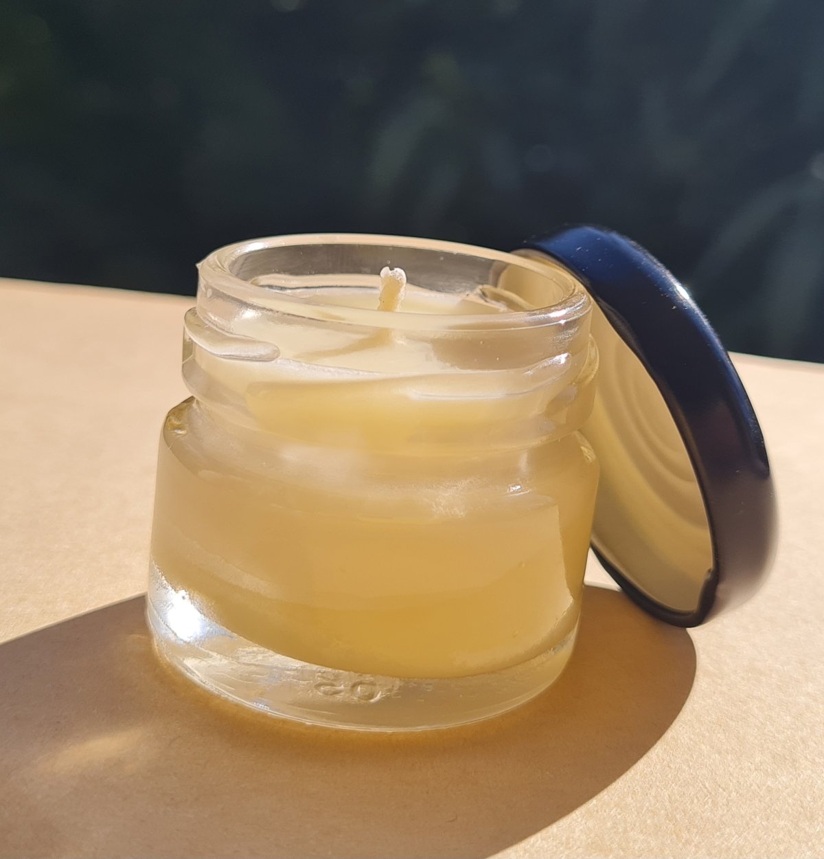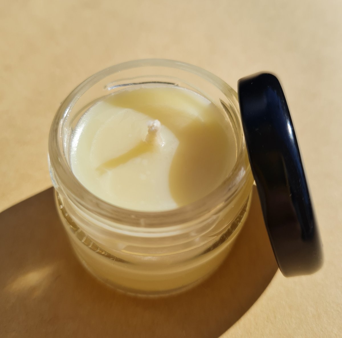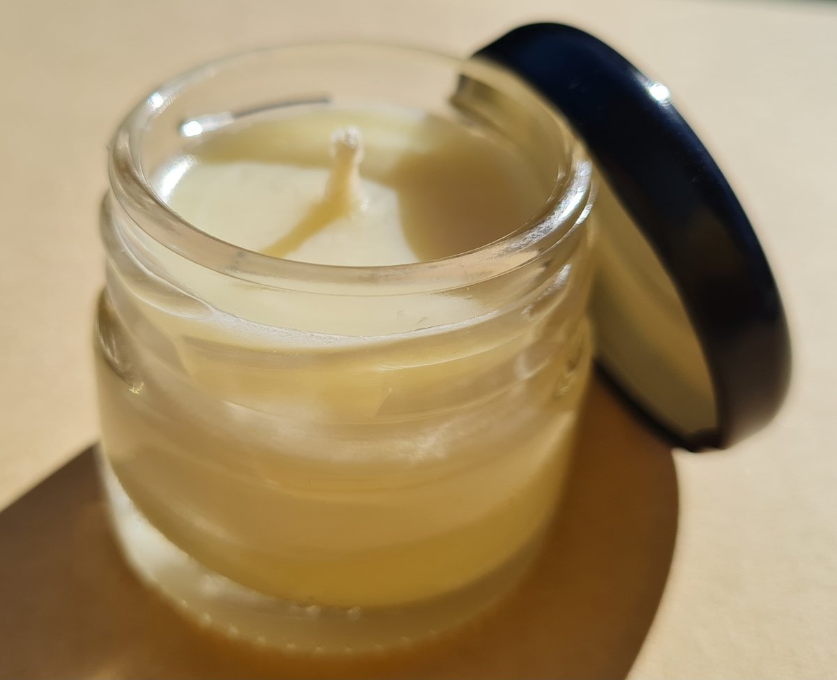 Burn the candle until enough wax is melted, then blow it out and use the melted mix to massage your body and moisturize your skin.