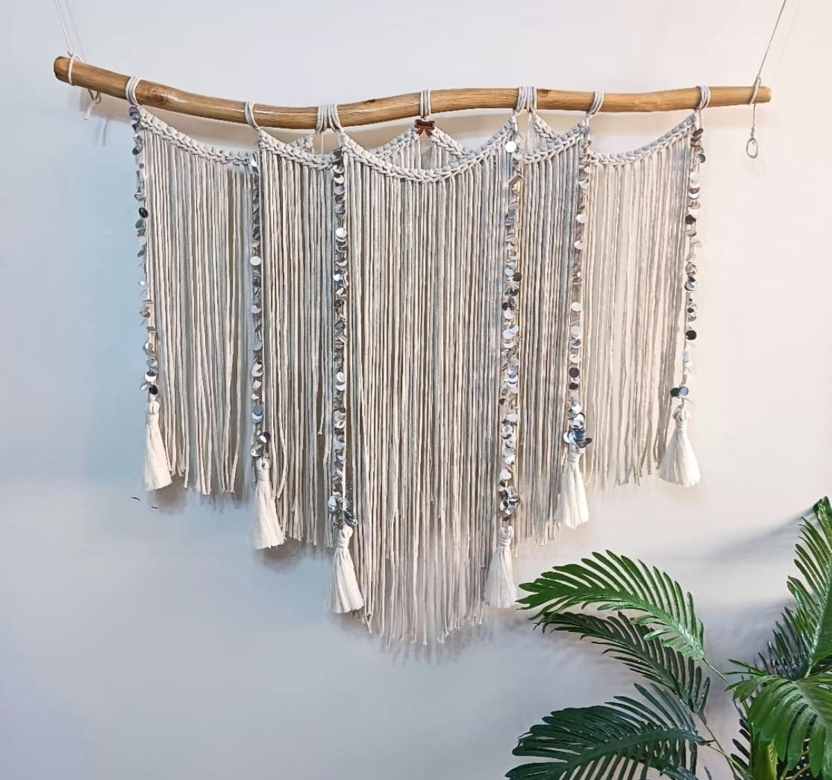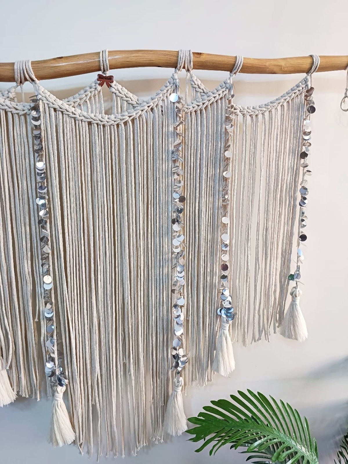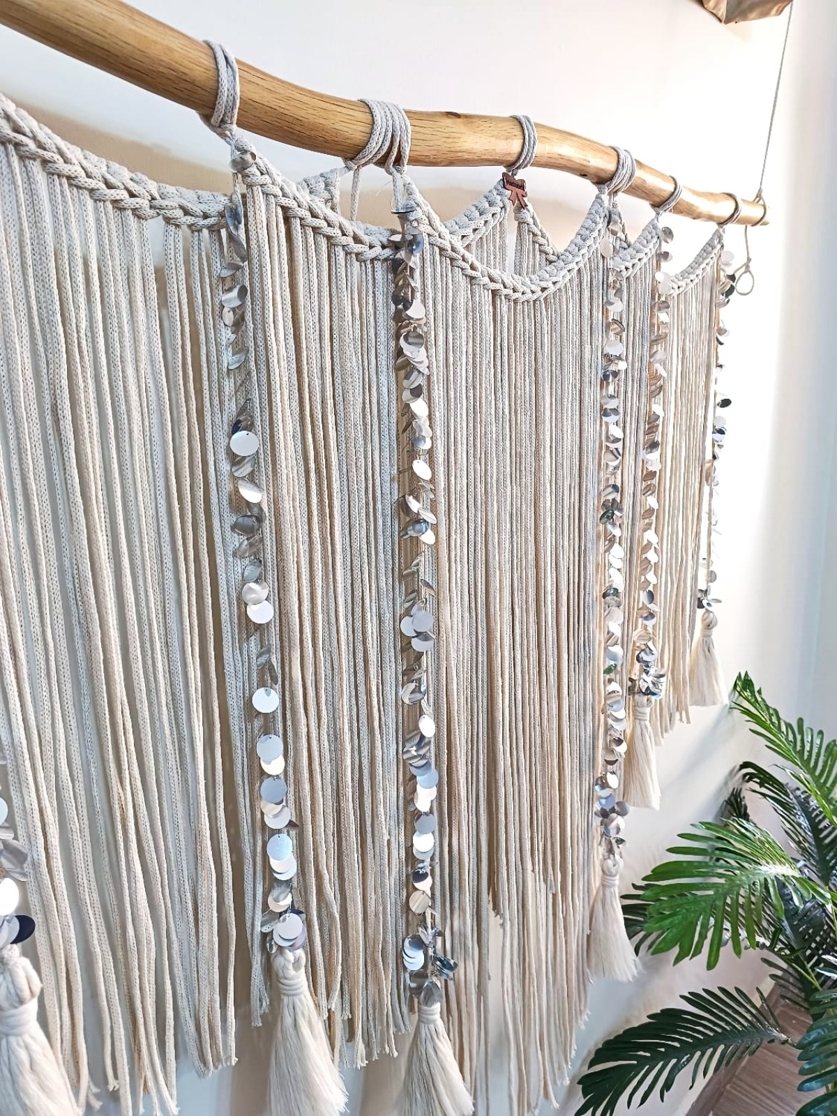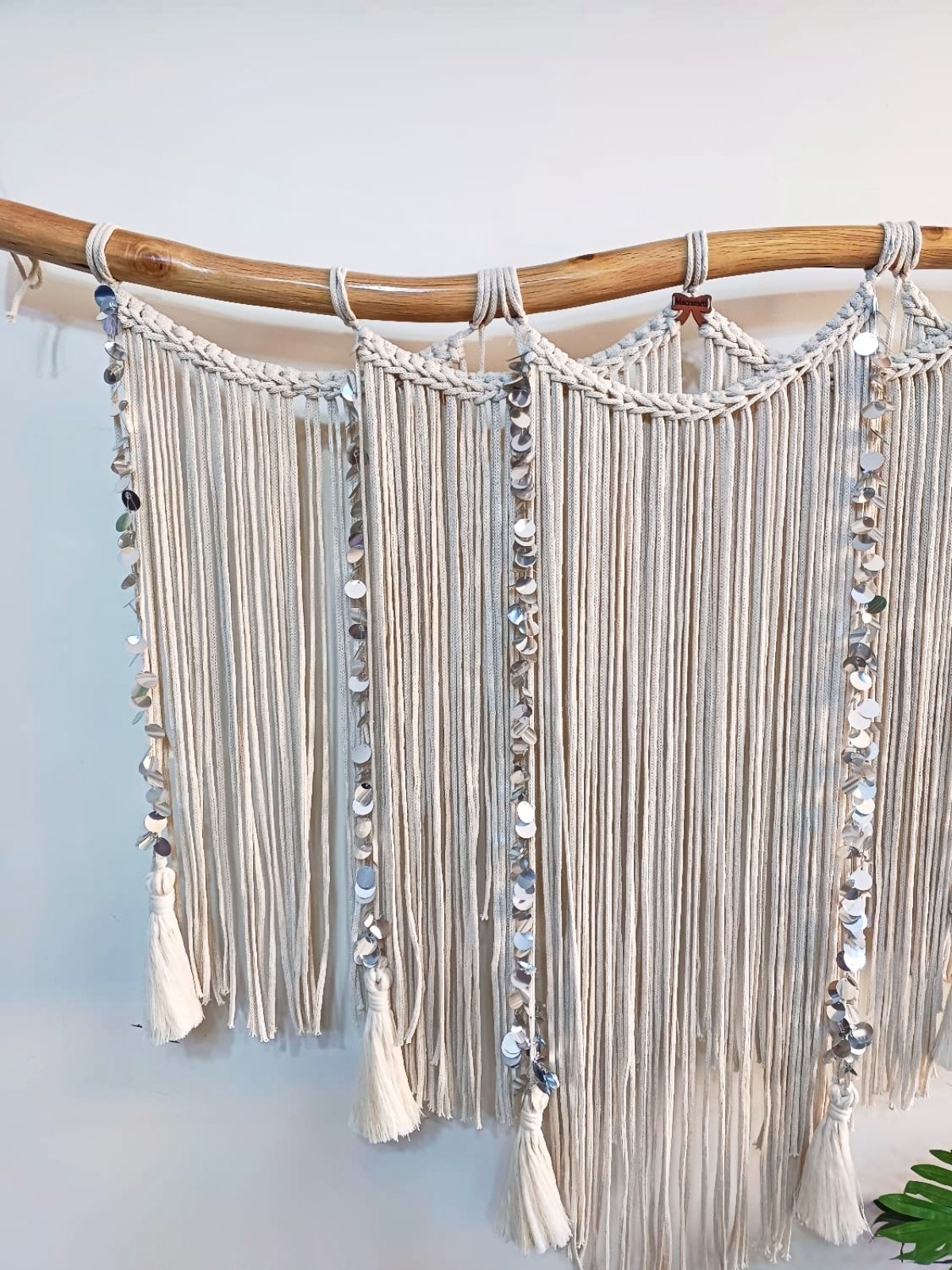 Macramé is a sophisticated style and modern decor for every home... At Macramé, we offer murals and curtains with high-quality cotton macrame threads in all sizes and hangings with wooden shelves.