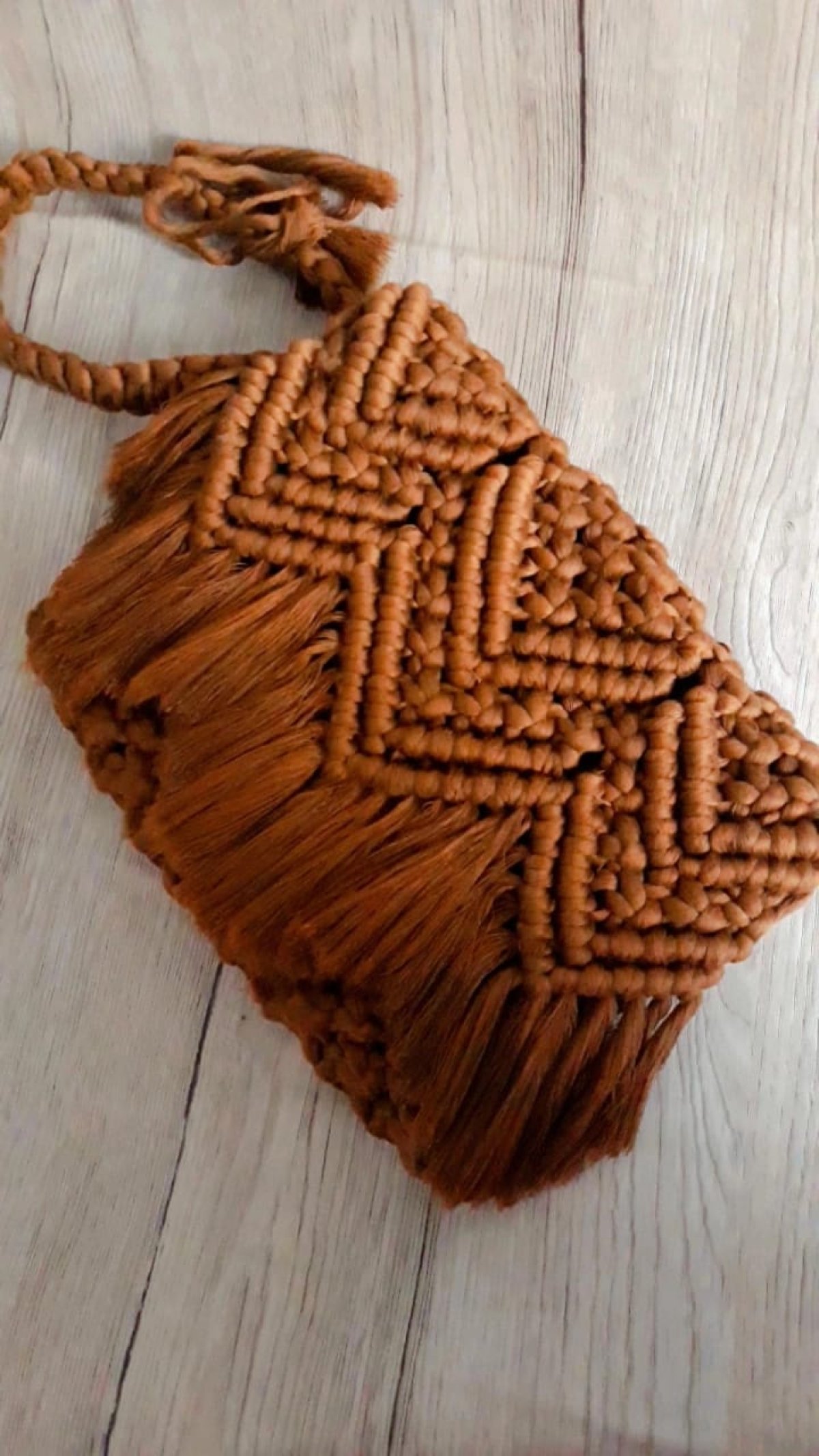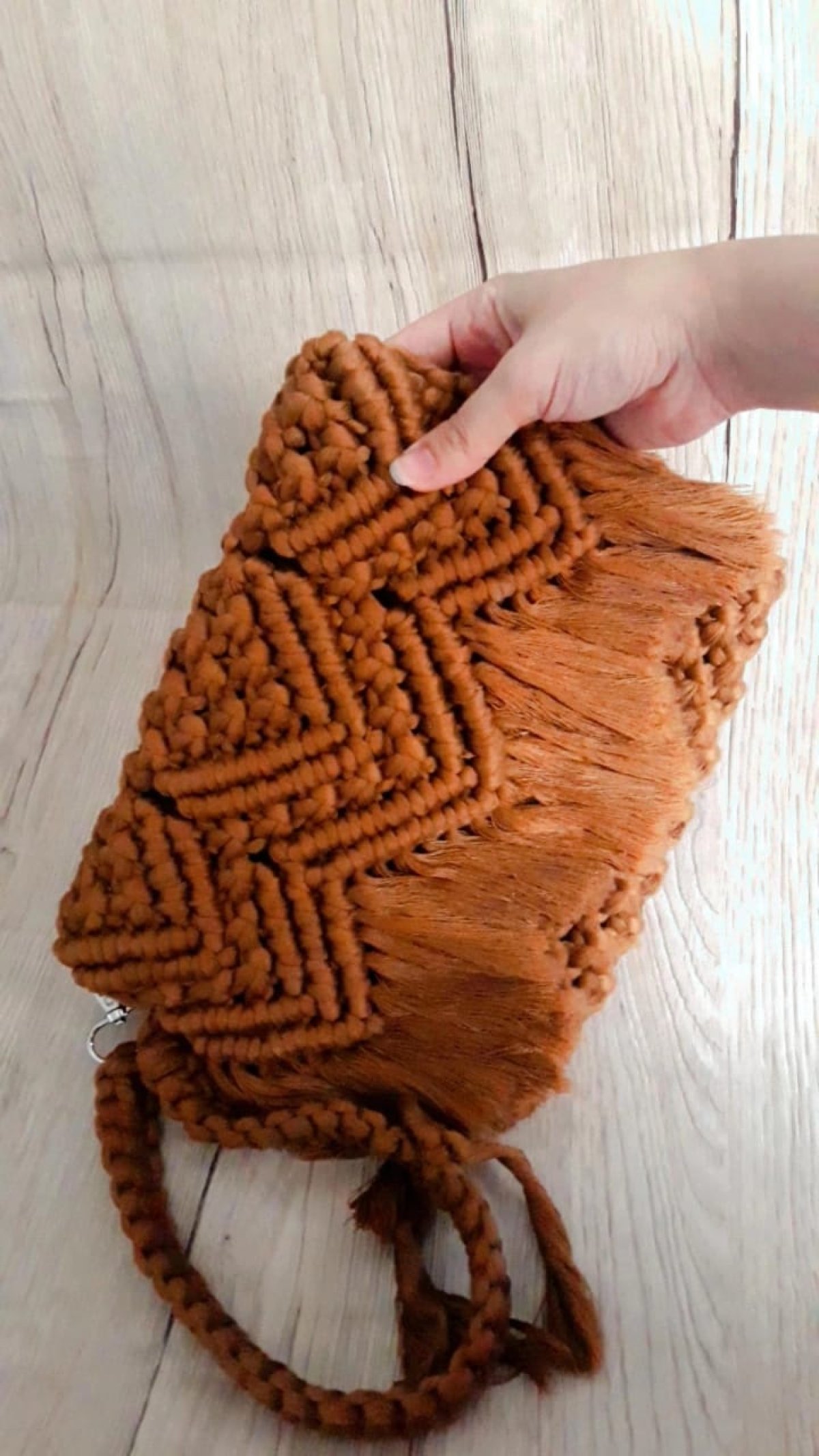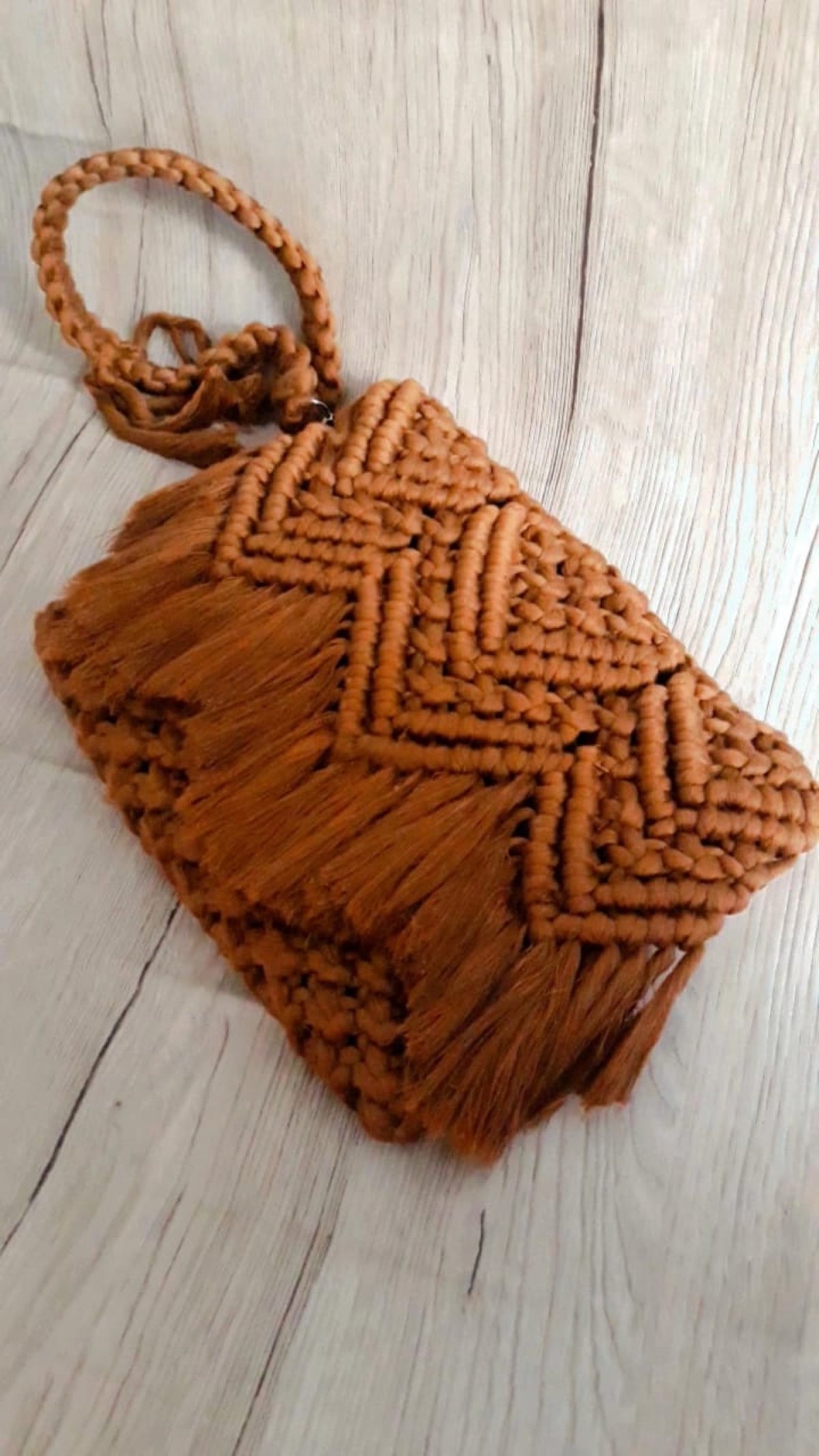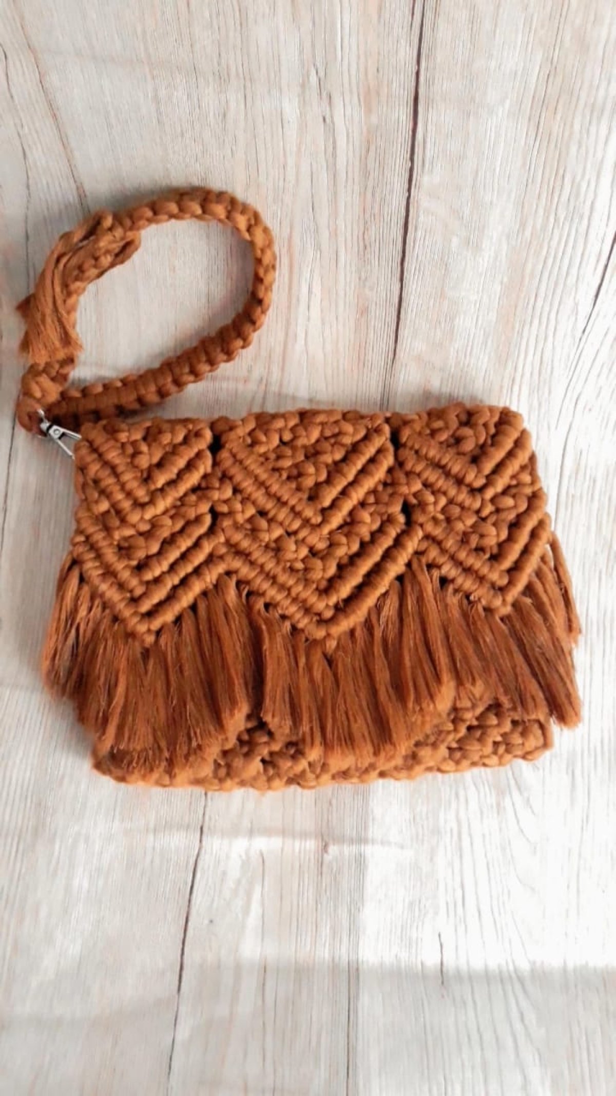 2*1 macrame bag and clutch We are adding a new line to our macrame work Havana bag made of loose cotton threads with a cover and a magnetic closure Available in different colors for the same design It is equipped with a long cross-body handle and it is possible to add a clutch handle The size is medium, 22 x 15, and has a deep interior for all basic needs