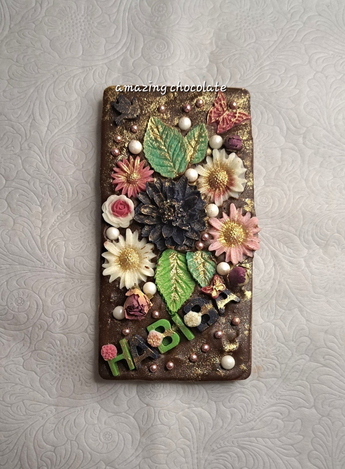 a large chocolate bar with name and design of your choice the best and famous fillings distinctive shapes and the best taste
