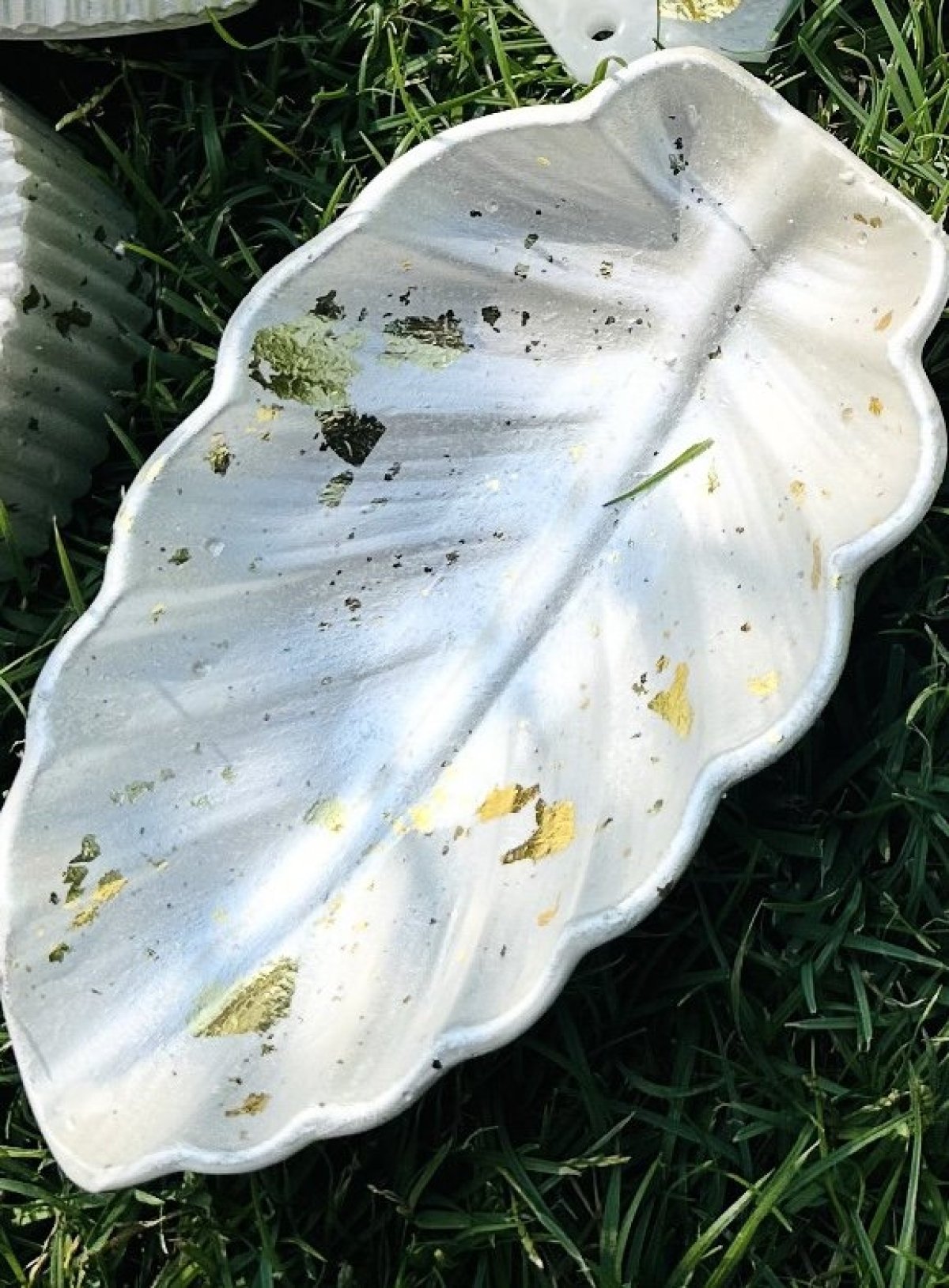 A piece of concrete in the shape of a feather gives a beautiful and decorative shape. The color can be changed according to the decor of the place. Accessories or candles can be placed in it.